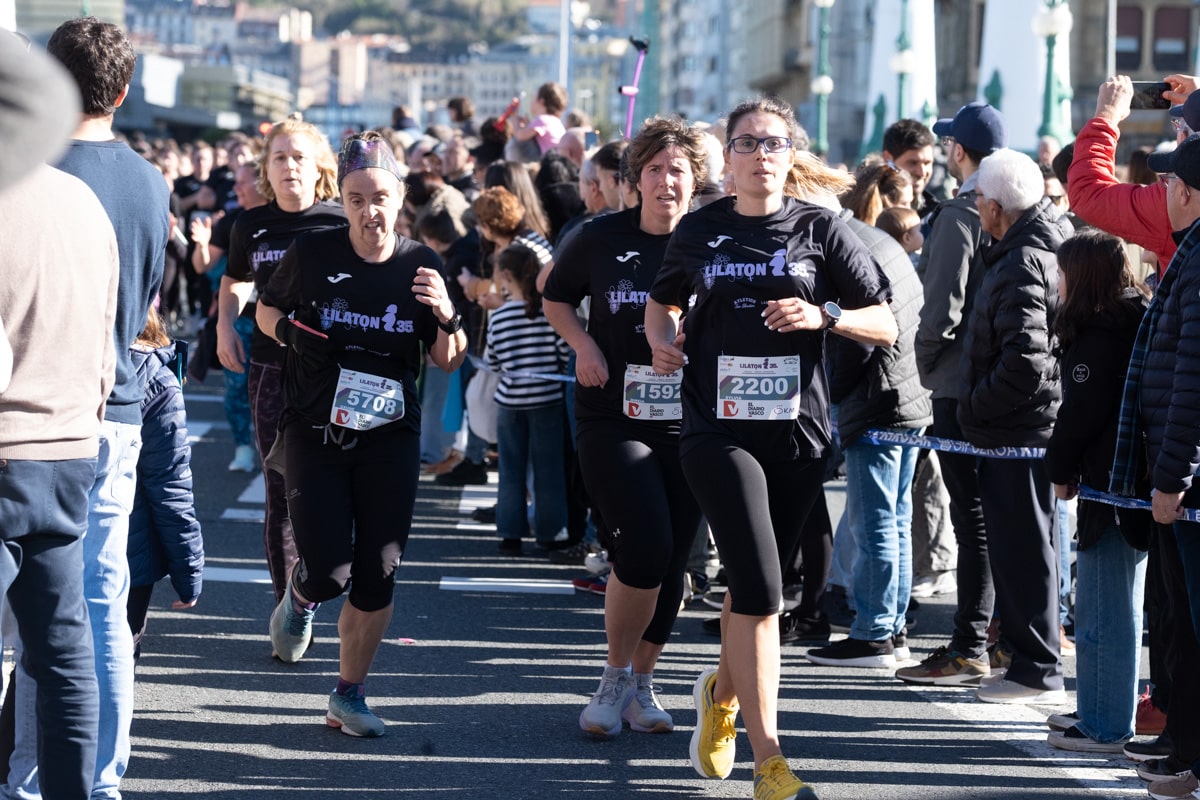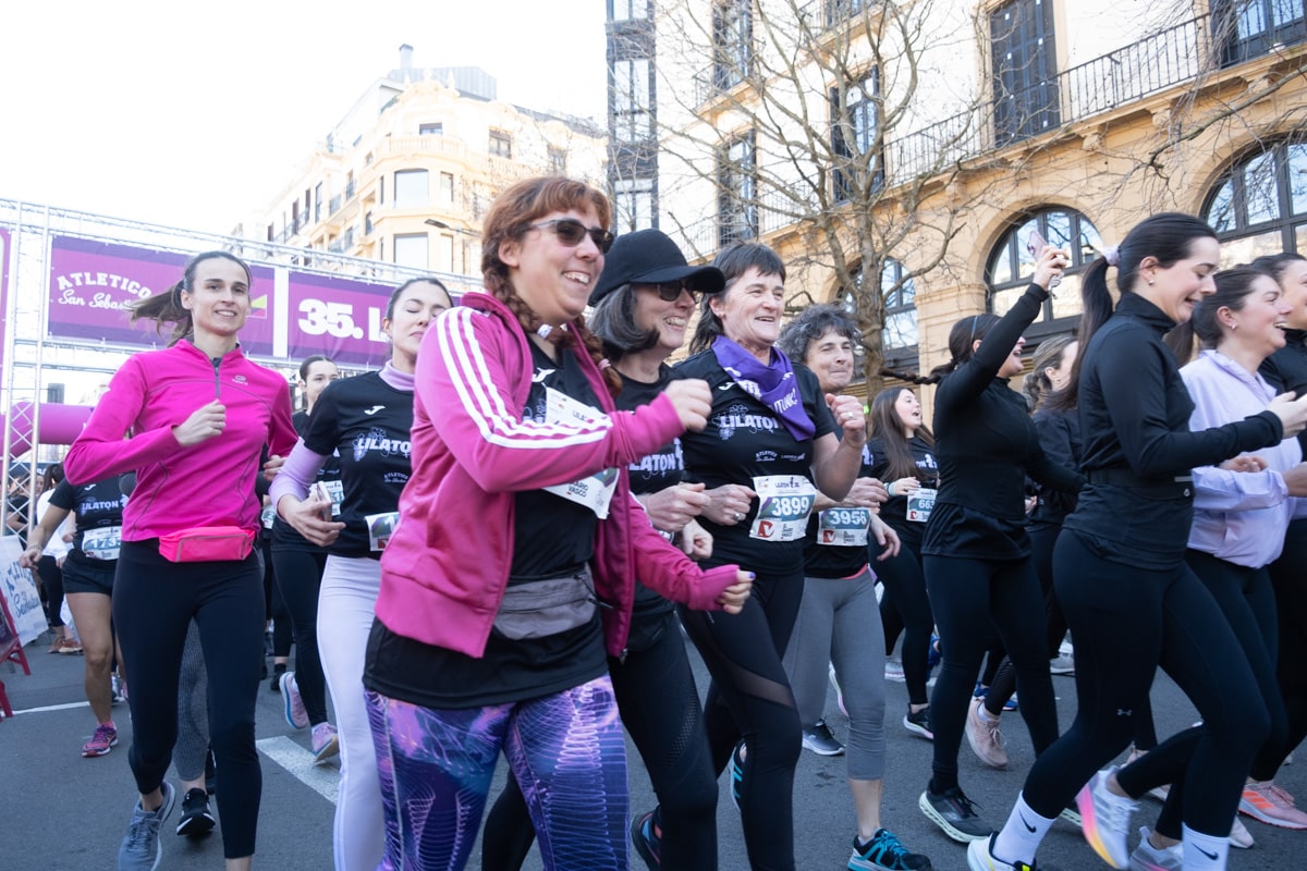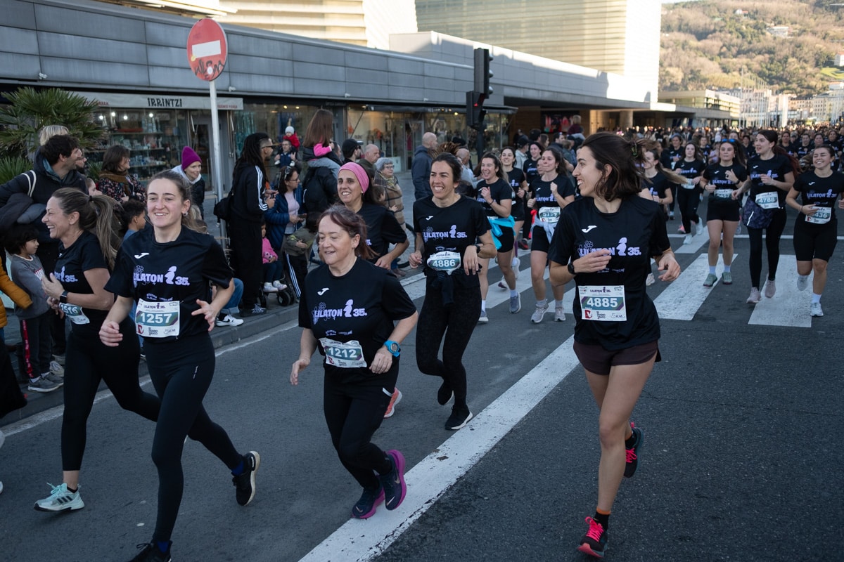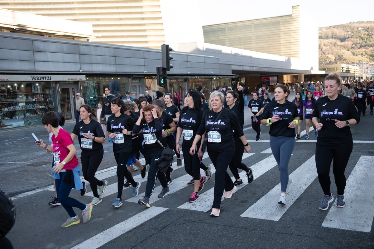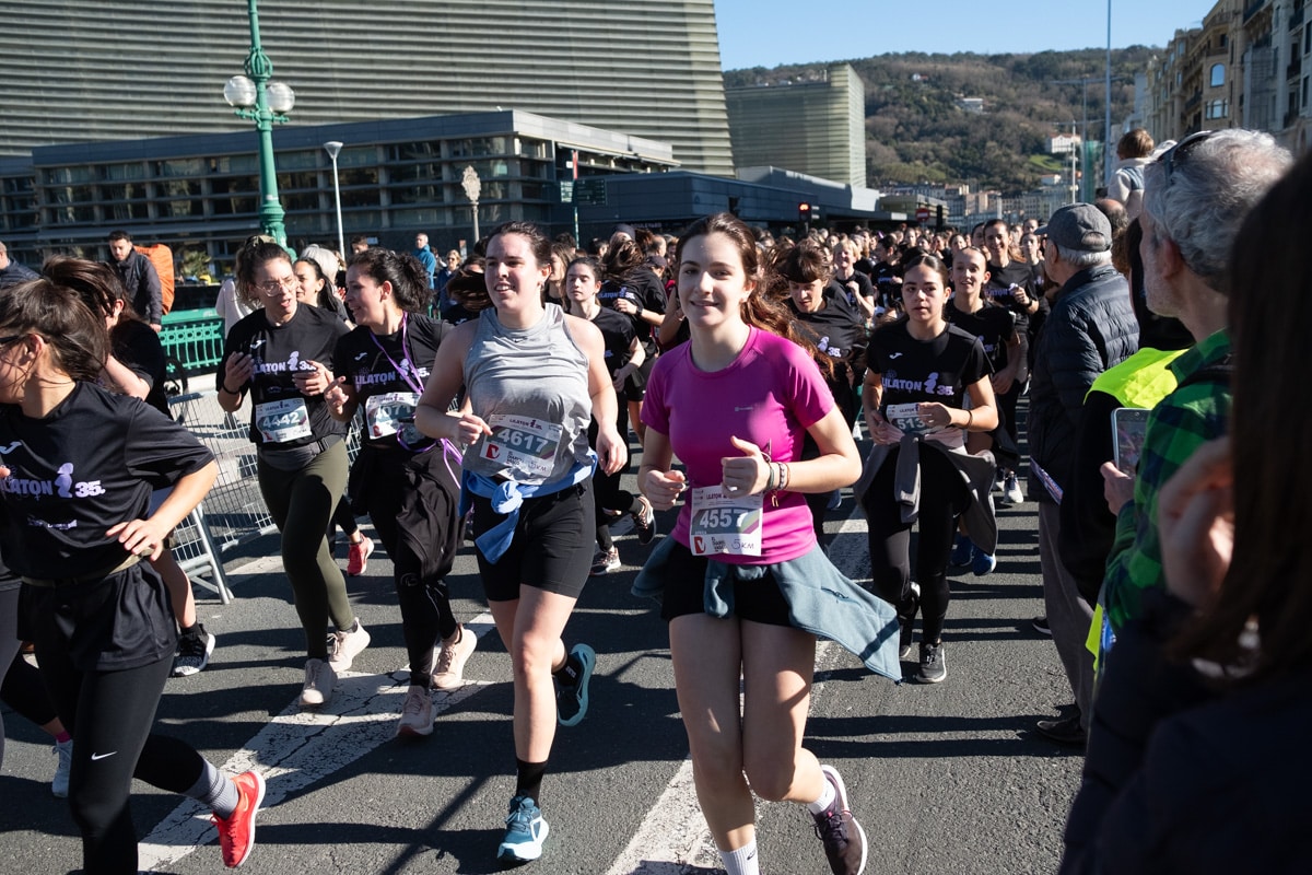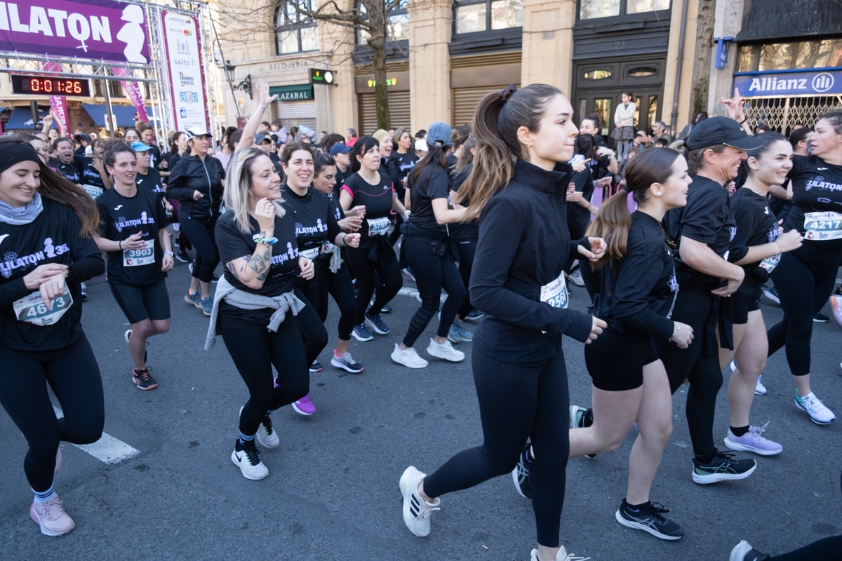 Ambientazo en una edición más, y van 35, de la Lilatón, la carrera femenina y feminista de 5 kilómetros del Club Deportivo Atlético de San Sebastian. Carrera solidaria, también, ya que un euro de cada inscripción será donado a la Asociación Contra el Cáncer de Gipuzkoa. La cita, en la que se habían inscrito 6.200 mujeres, ha comenzado con una sesión de zumba y terminará con el Lilapote.