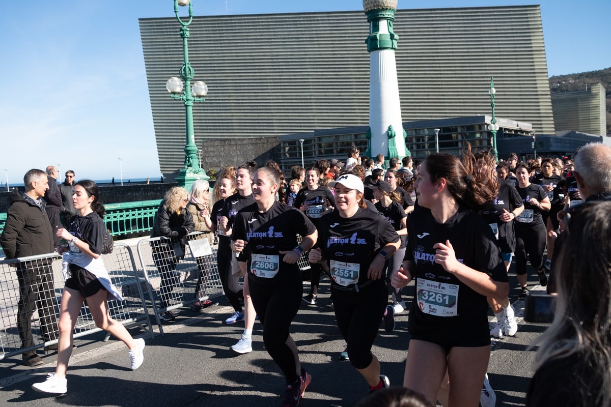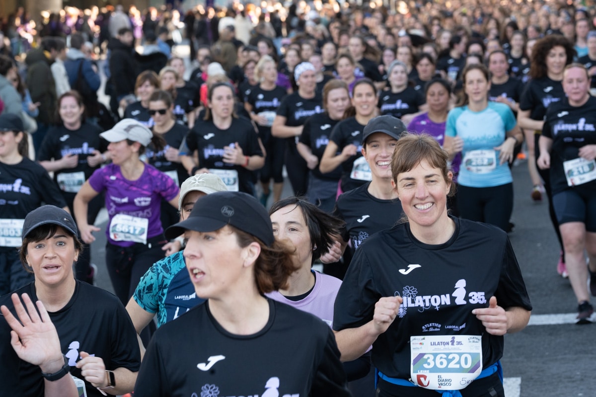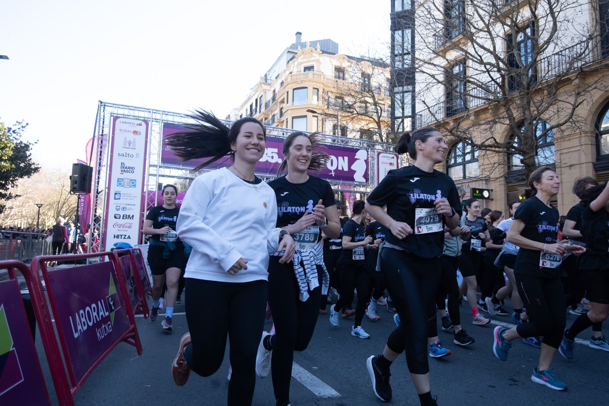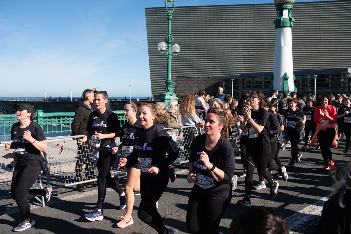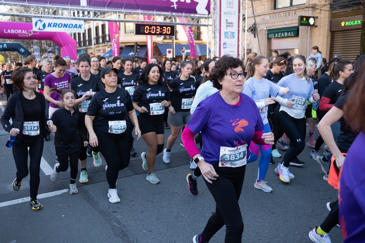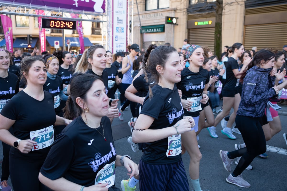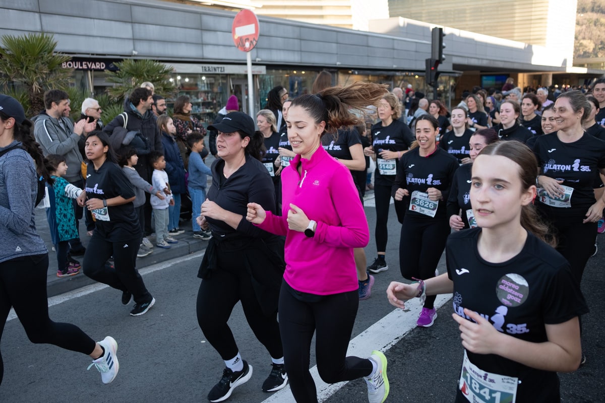 Ambientazo en una edición más, y van 35, de la Lilatón, la carrera femenina y feminista de 5 kilómetros del Club Deportivo Atlético de San Sebastian. Carrera solidaria, también, ya que un euro de cada inscripción será donado a la Asociación Contra el Cáncer de Gipuzkoa. La cita, en la que se habían inscrito 6.200 mujeres, ha comenzado con una sesión de zumba y terminará con el Lilapote.