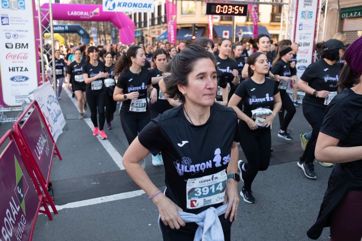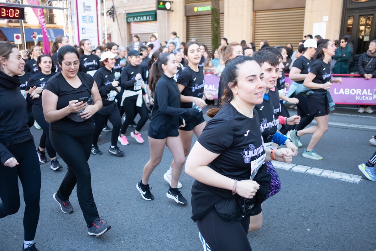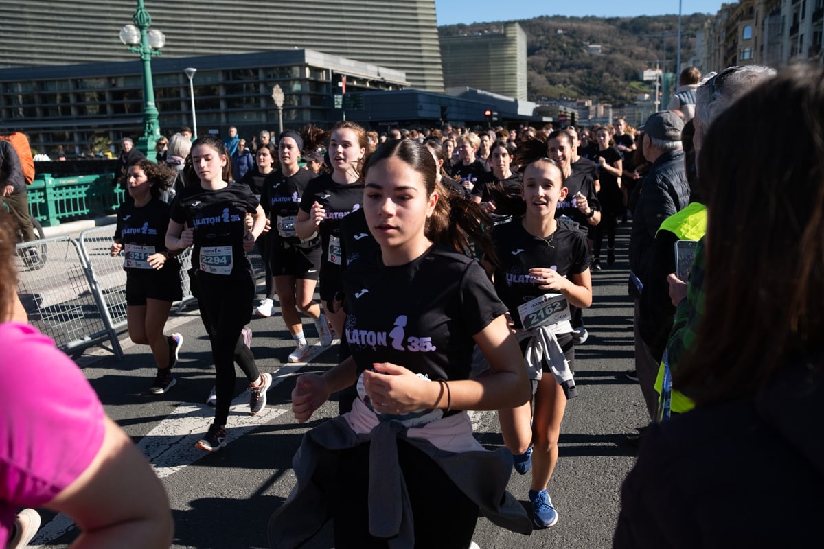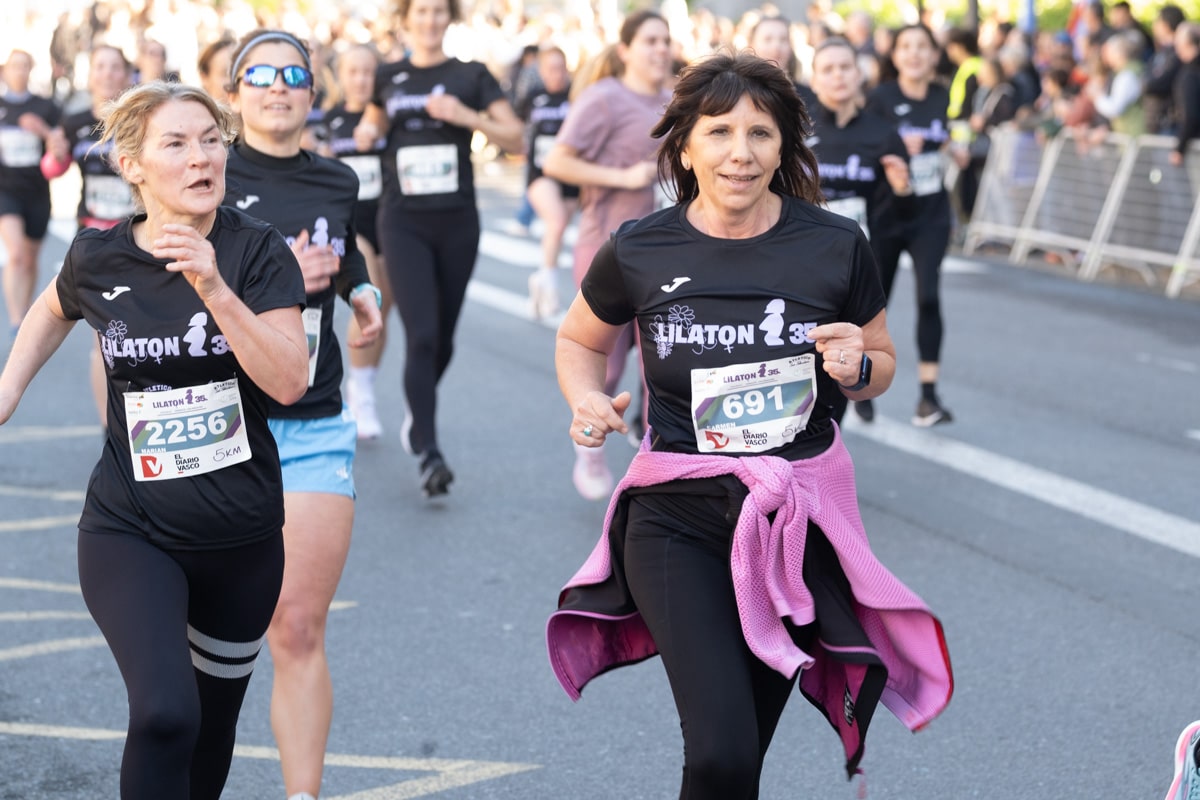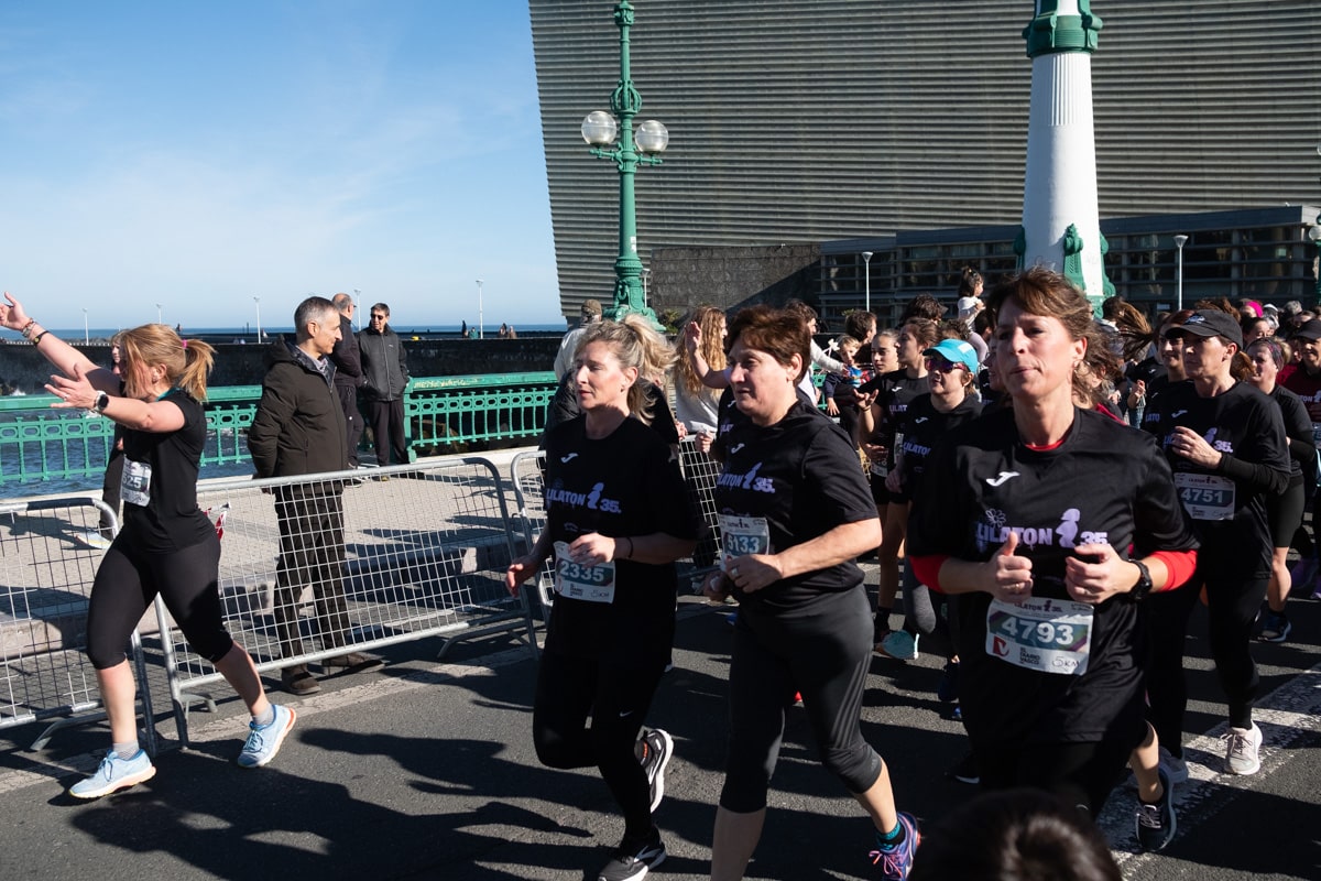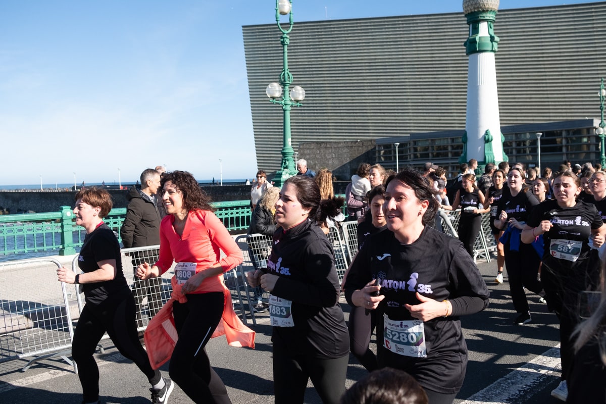 Ambientazo en una edición más, y van 35, de la Lilatón, la carrera femenina y feminista de 5 kilómetros del Club Deportivo Atlético de San Sebastian. Carrera solidaria, también, ya que un euro de cada inscripción será donado a la Asociación Contra el Cáncer de Gipuzkoa. La cita, en la que se habían inscrito 6.200 mujeres, ha comenzado con una sesión de zumba y terminará con el Lilapote.