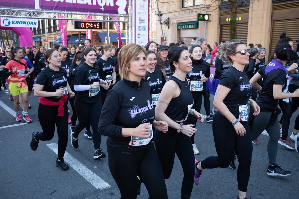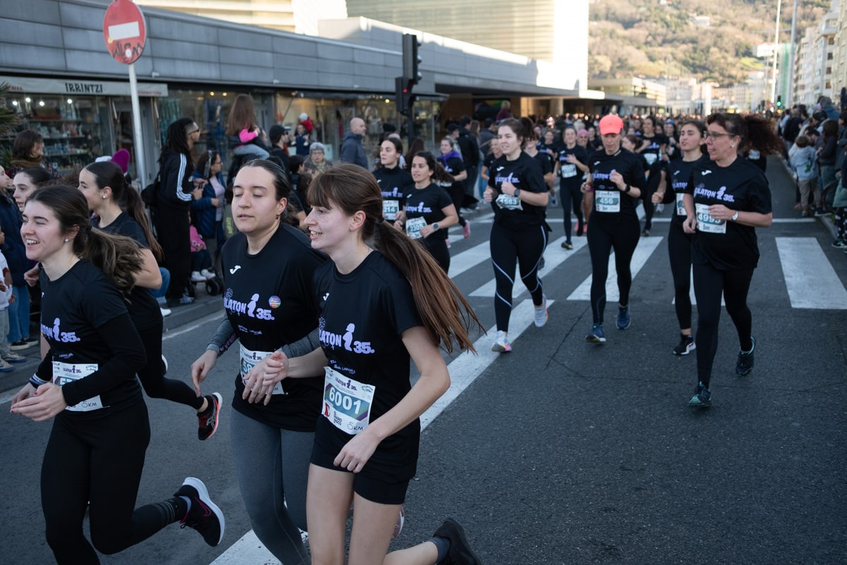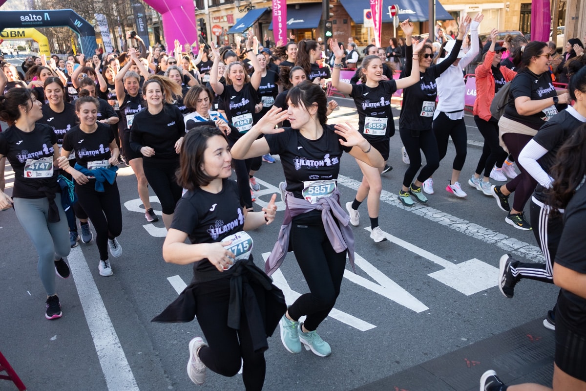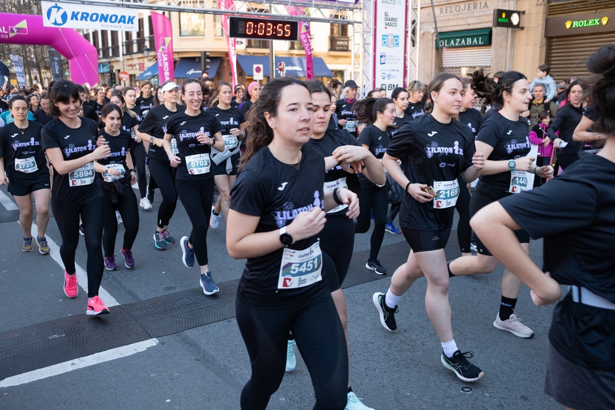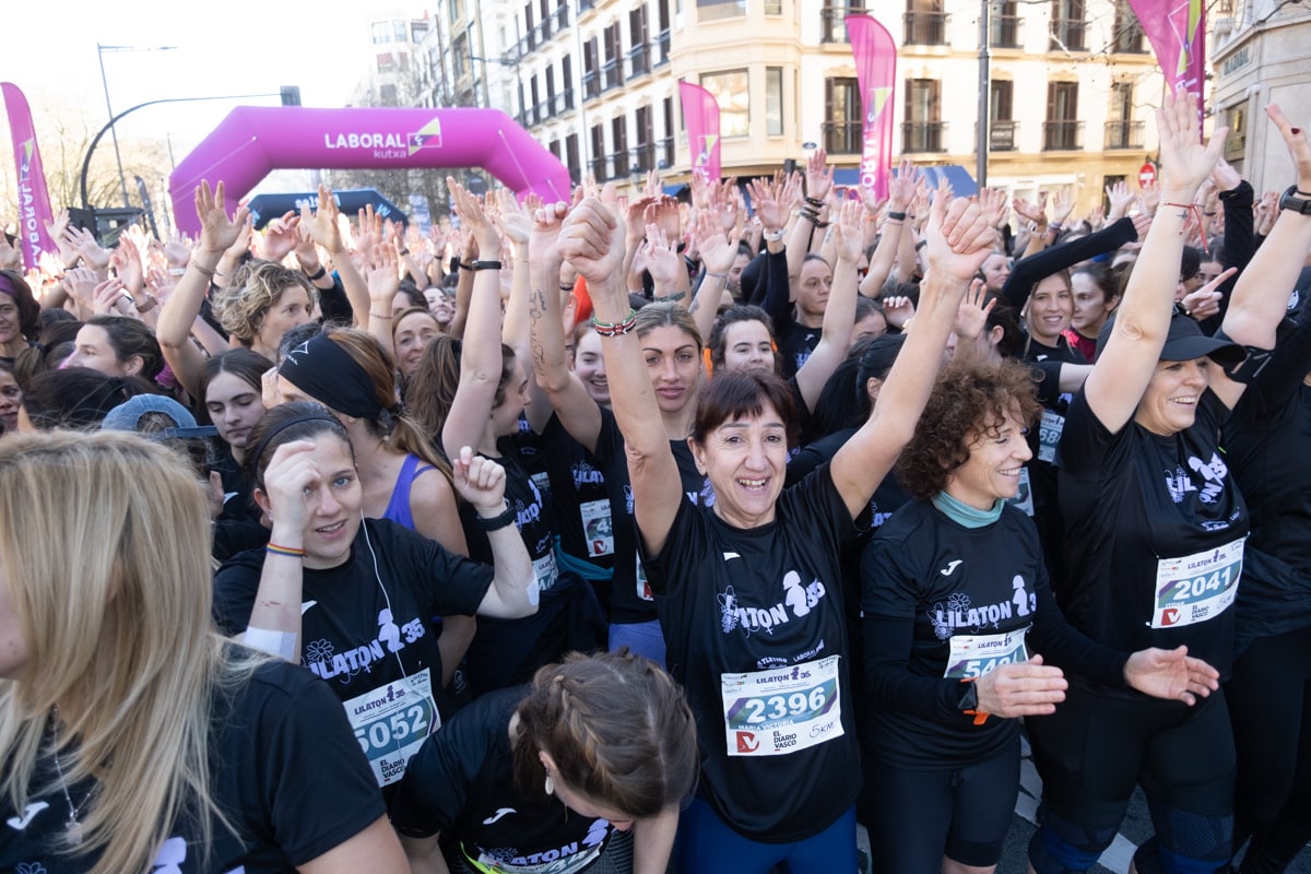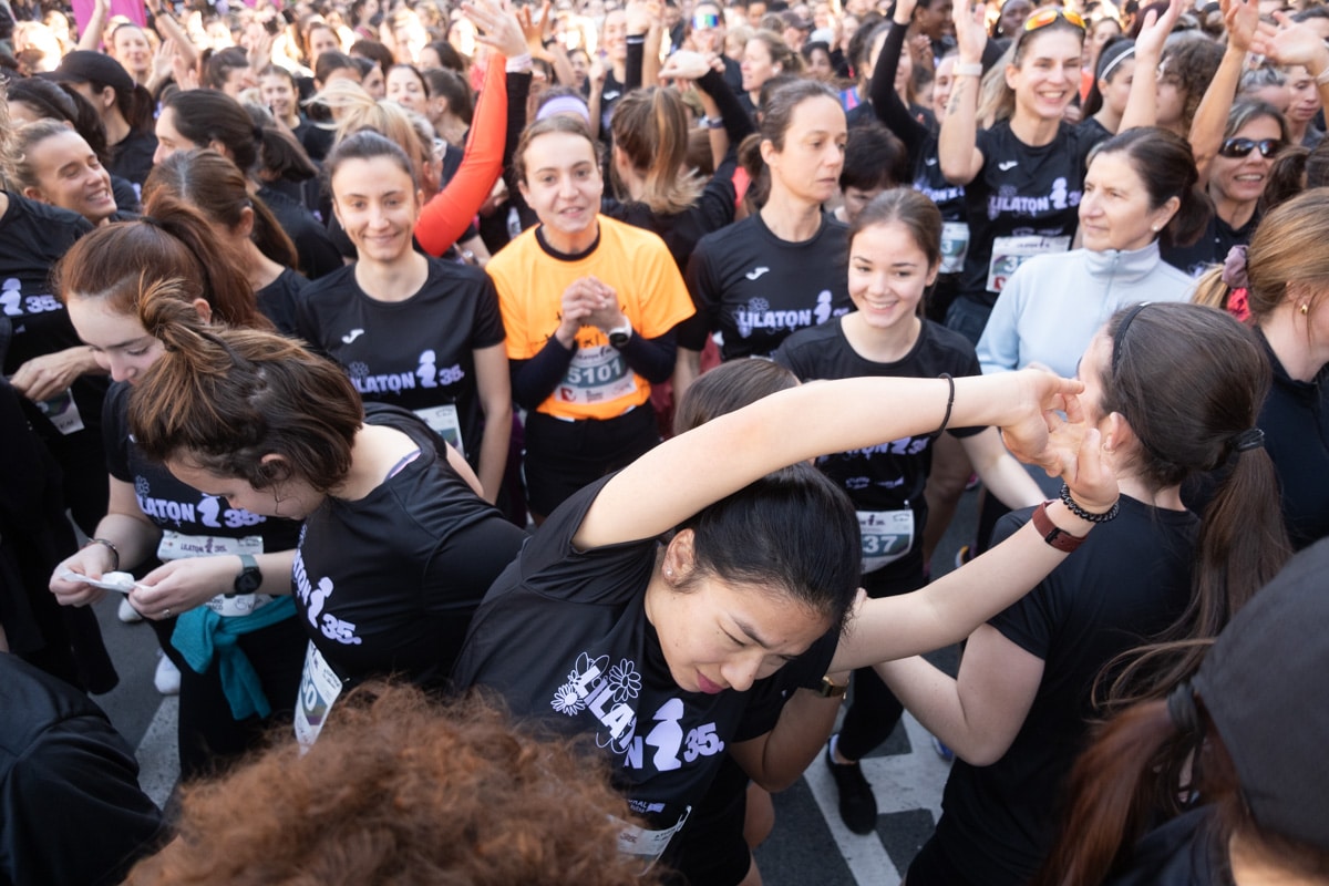 Ambientazo en una edición más, y van 35, de la Lilatón, la carrera femenina y feminista de 5 kilómetros del Club Deportivo Atlético de San Sebastian. Carrera solidaria, también, ya que un euro de cada inscripción será donado a la Asociación Contra el Cáncer de Gipuzkoa. La cita, en la que se habían inscrito 6.200 mujeres, ha comenzado con una sesión de zumba y terminará con el Lilapote.