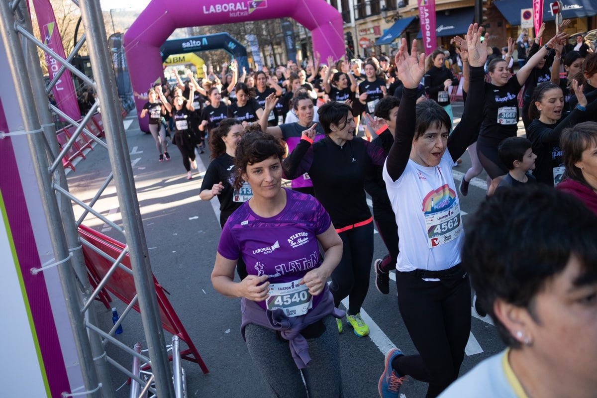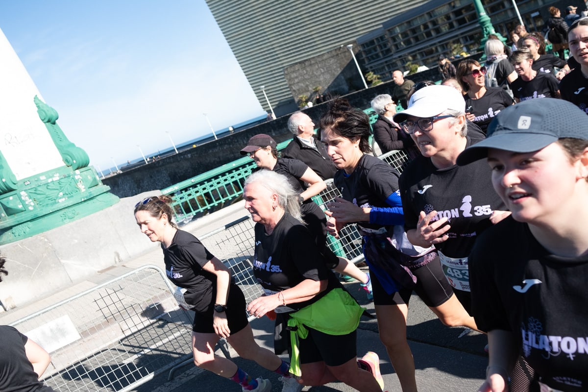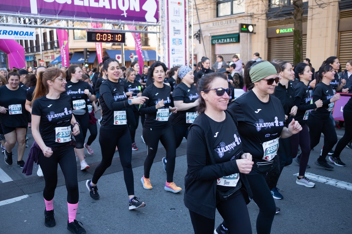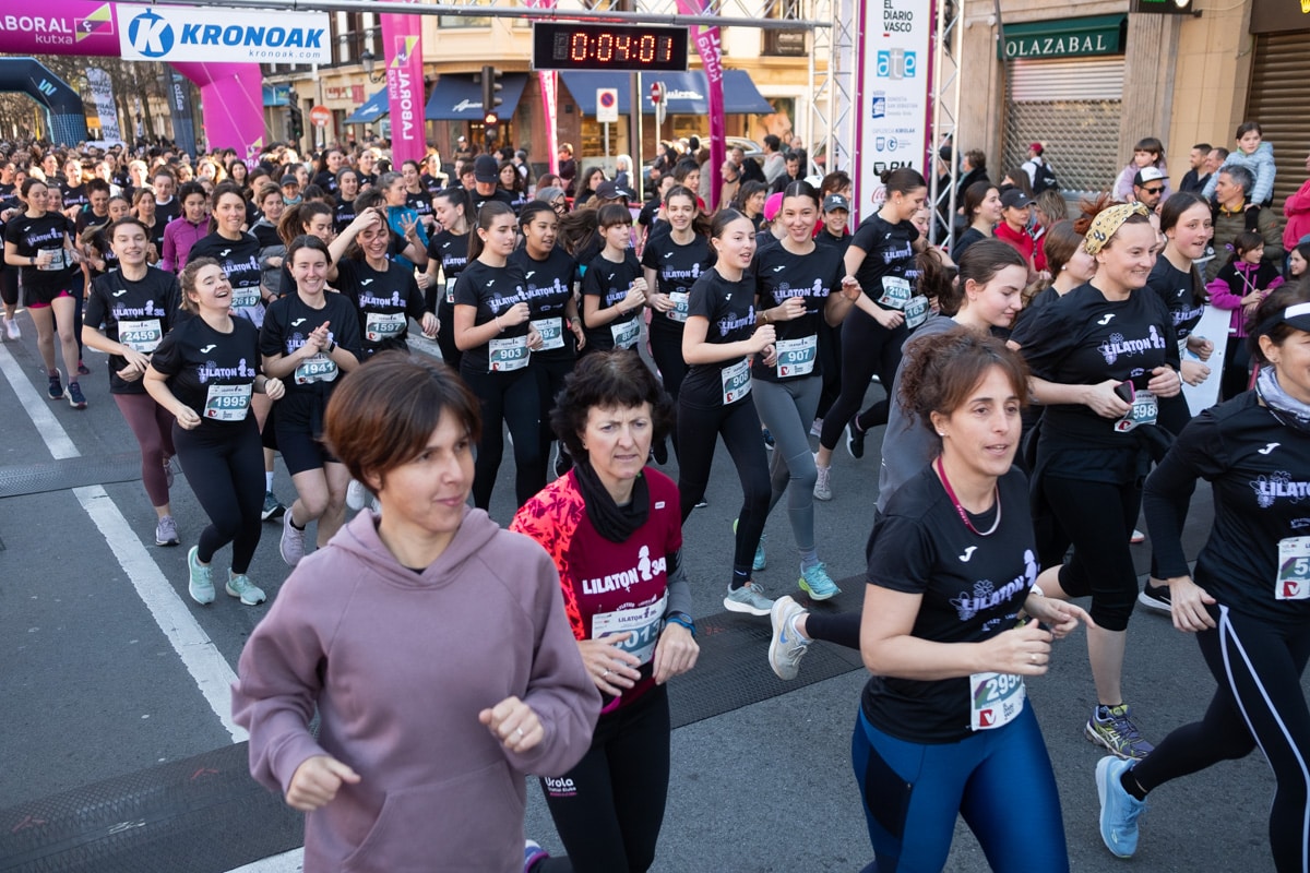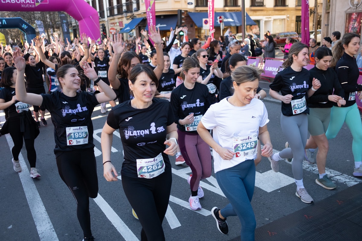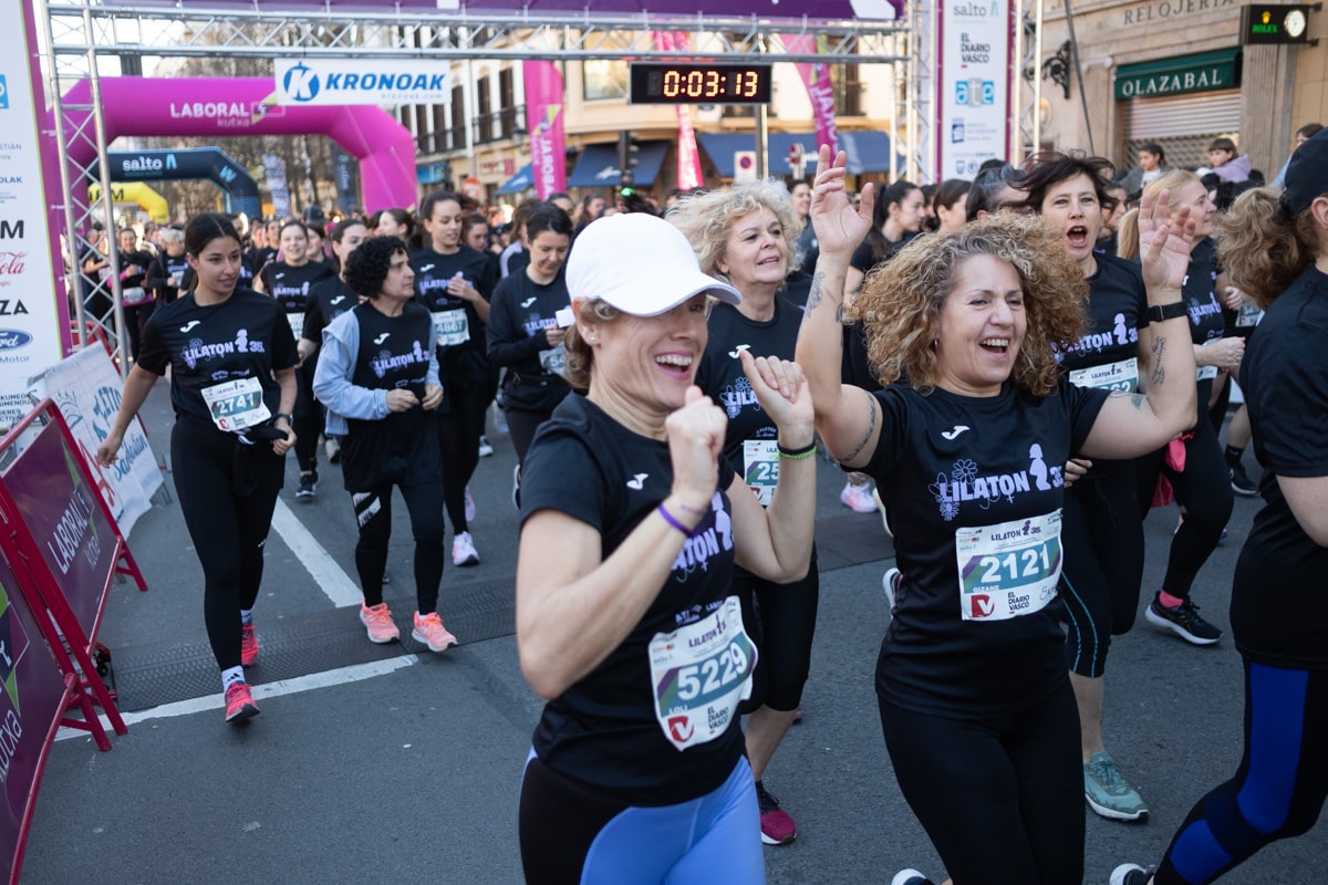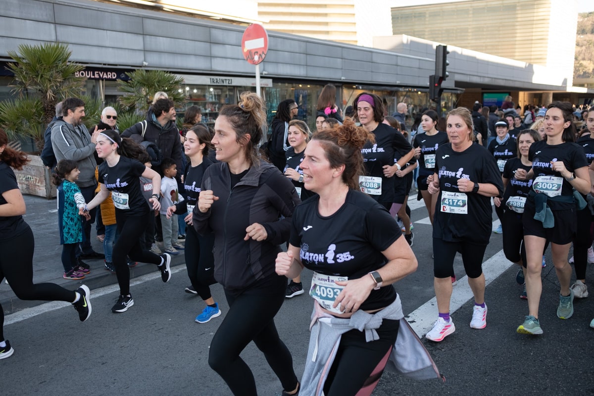 Ambientazo en una edición más, y van 35, de la Lilatón, la carrera femenina y feminista de 5 kilómetros del Club Deportivo Atlético de San Sebastian. Carrera solidaria, también, ya que un euro de cada inscripción será donado a la Asociación Contra el Cáncer de Gipuzkoa. La cita, en la que se habían inscrito 6.200 mujeres, ha comenzado con una sesión de zumba y terminará con el Lilapote.