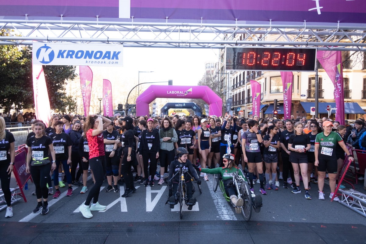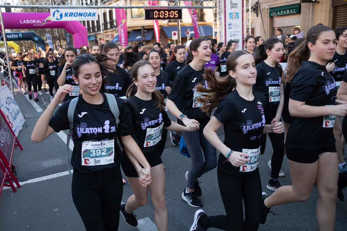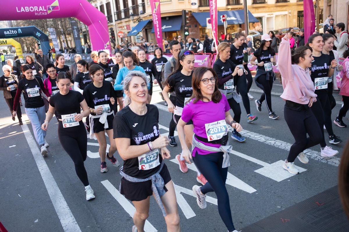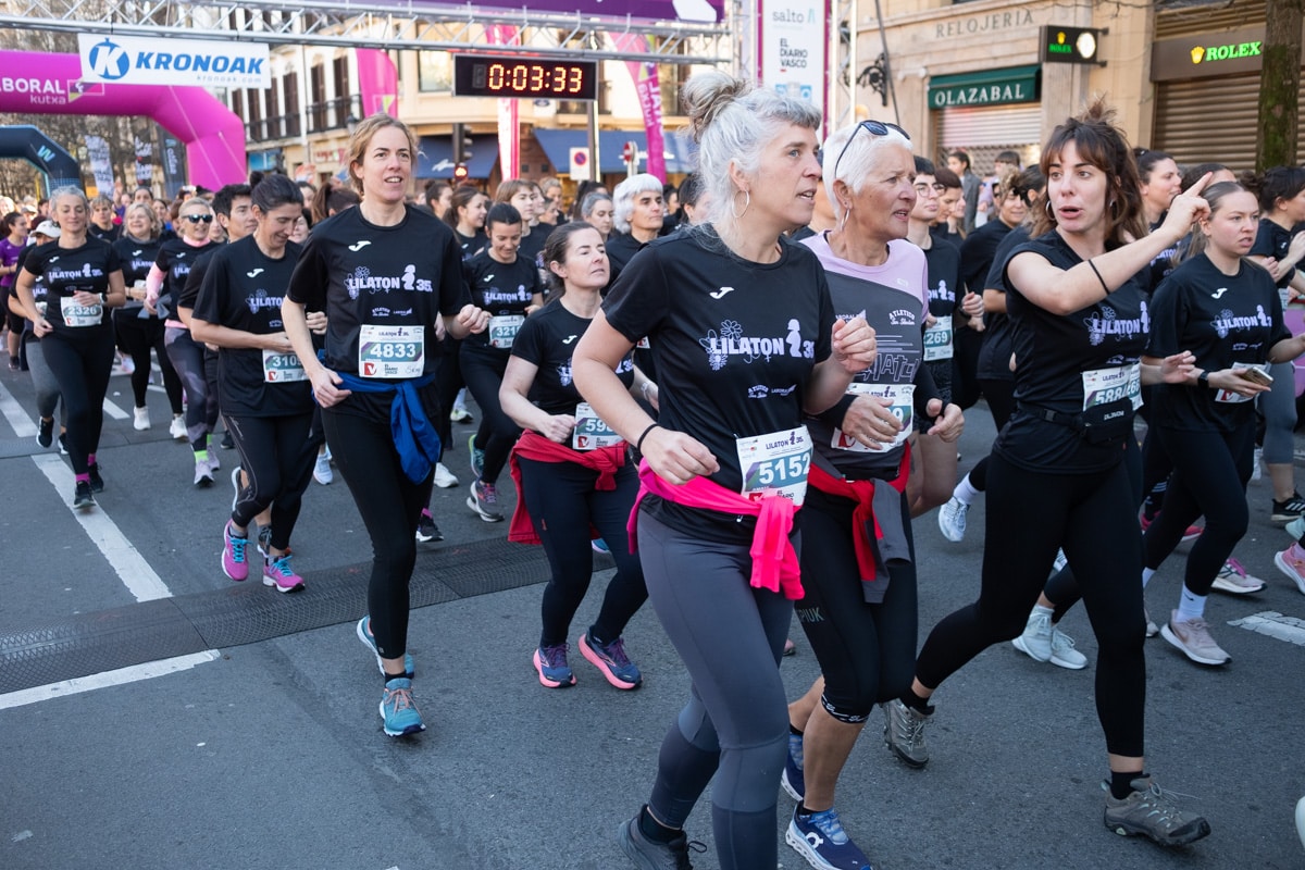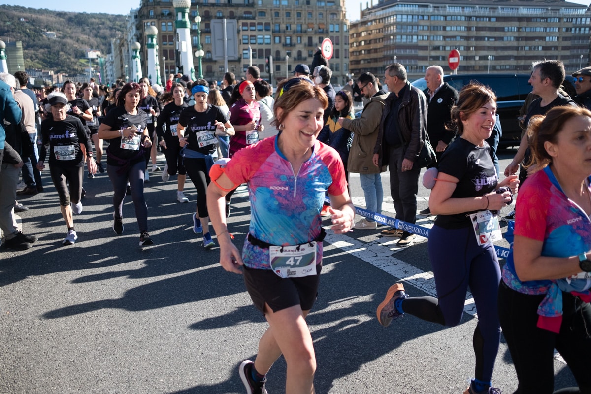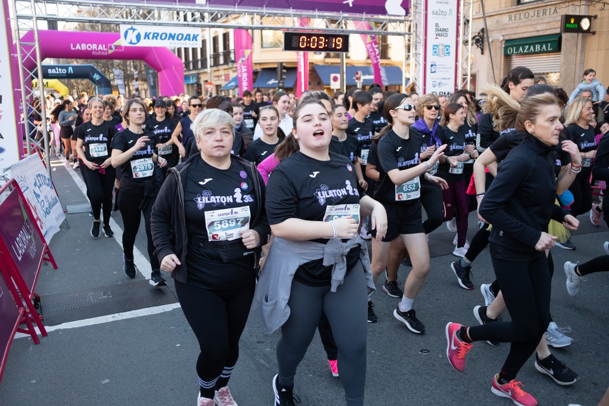 Ambientazo en una edición más, y van 35, de la Lilatón, la carrera femenina y feminista de 5 kilómetros del Club Deportivo Atlético de San Sebastian. Carrera solidaria, también, ya que un euro de cada inscripción será donado a la Asociación Contra el Cáncer de Gipuzkoa. La cita, en la que se habían inscrito 6.200 mujeres, ha comenzado con una sesión de zumba y terminará con el Lilapote.