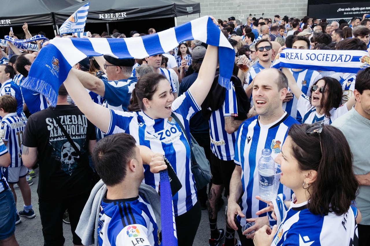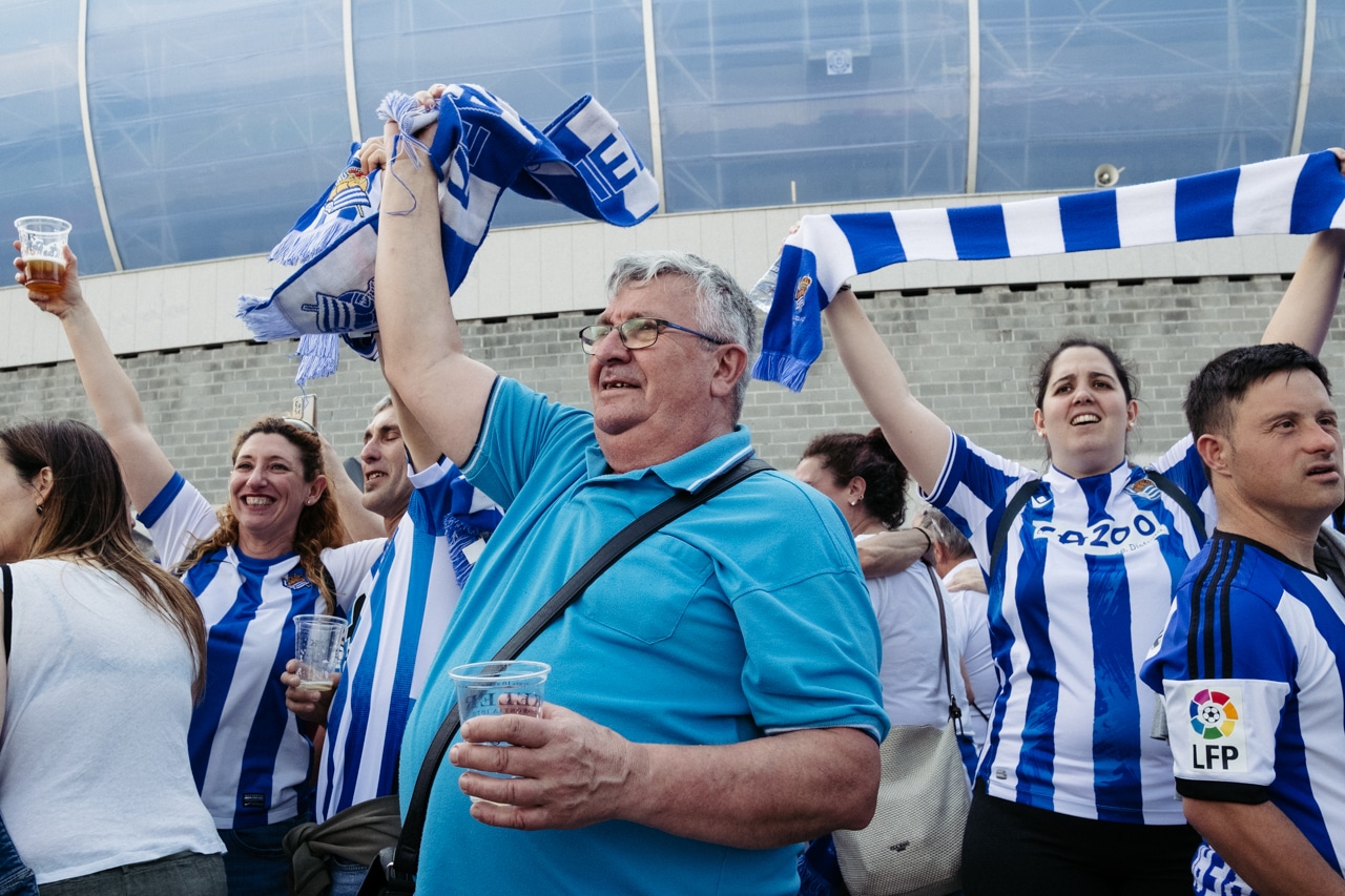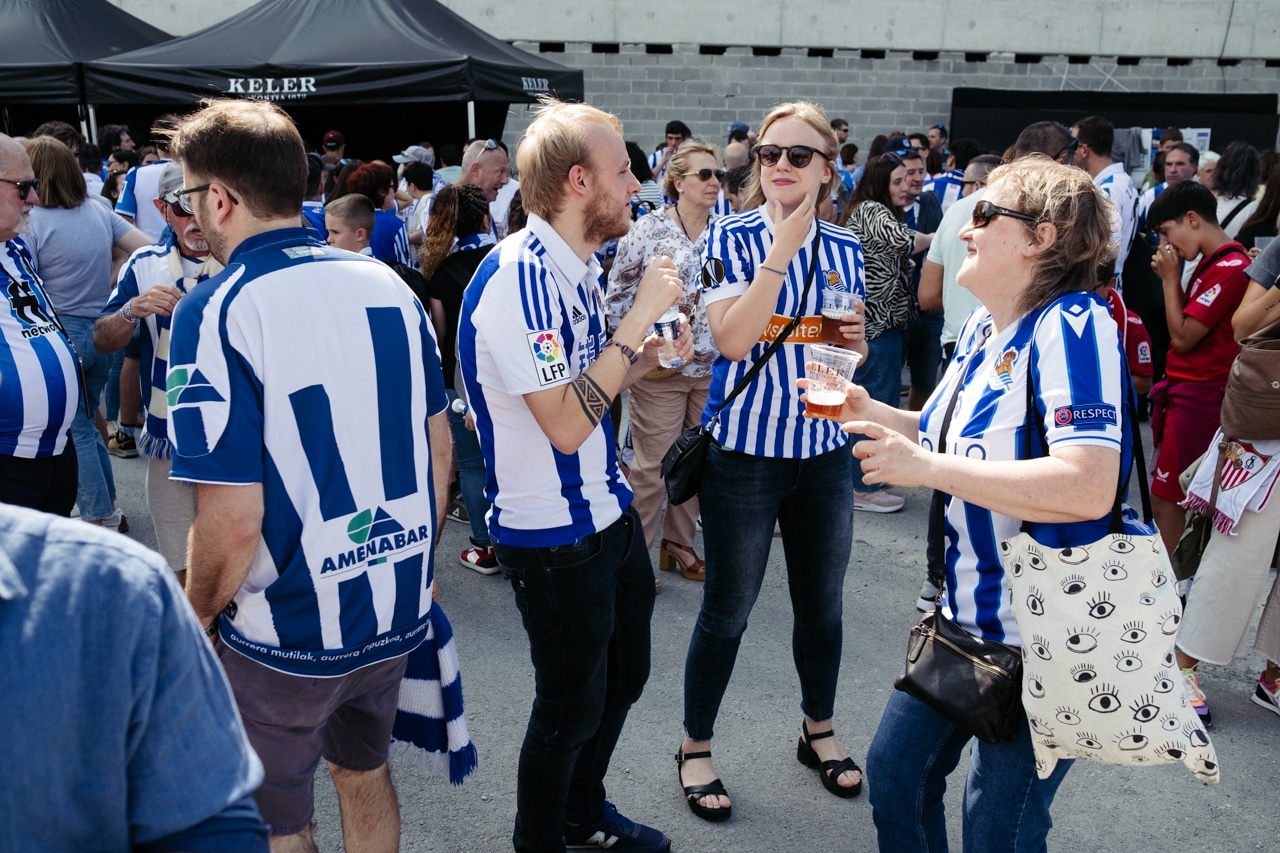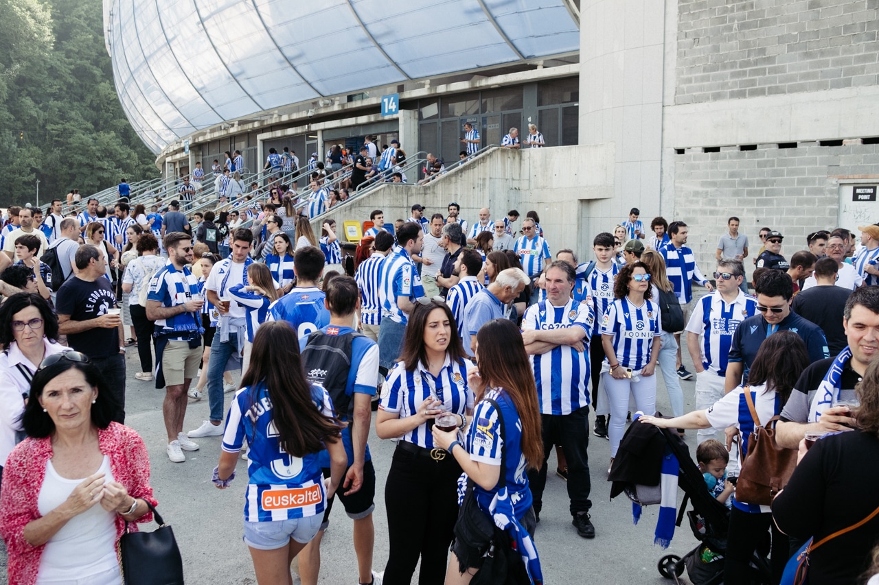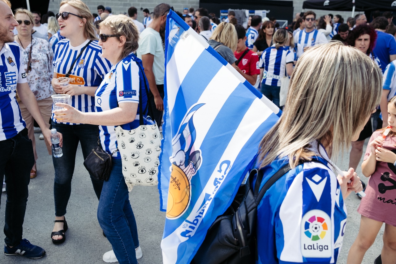 Con música, sol y la sensación de que esta vez no era tan importante el resultado y de que había mucho para celebrar. Así se ha celebrado en los aledaños del Reale Arena el partido contra el Sevilla antes de que éste diera comienzo. Acudieron al encuentro 35.065 aficionados para una tarde de disfrute. Más información: La Real despide a Illarramendi con su triunfo número 30 de la temporada