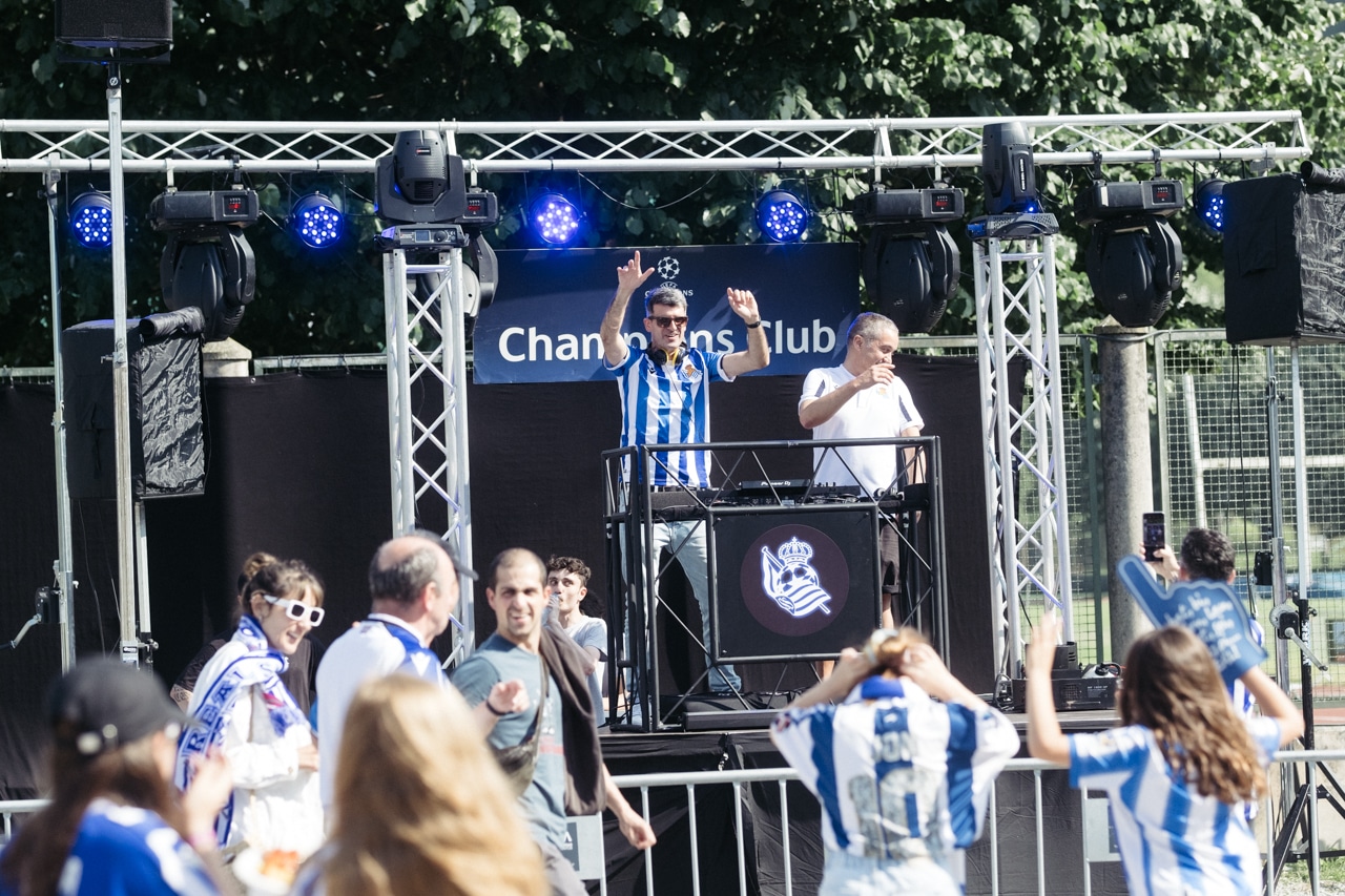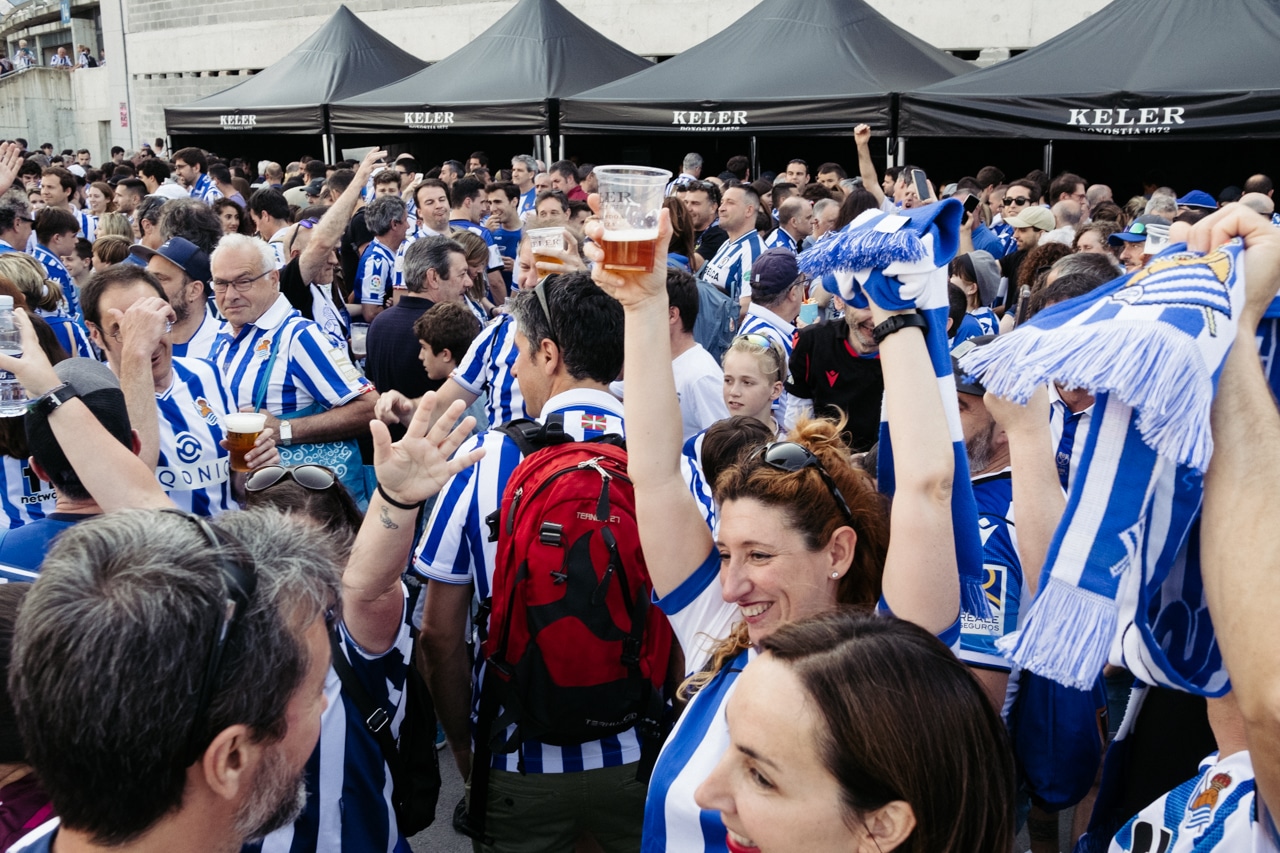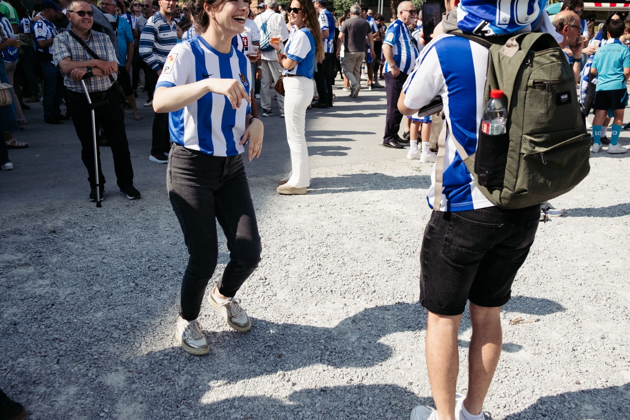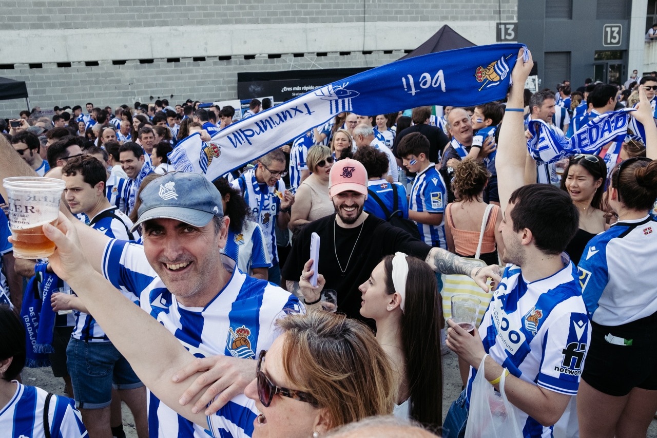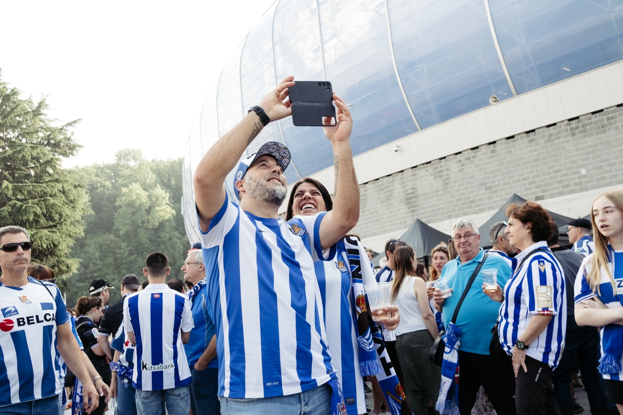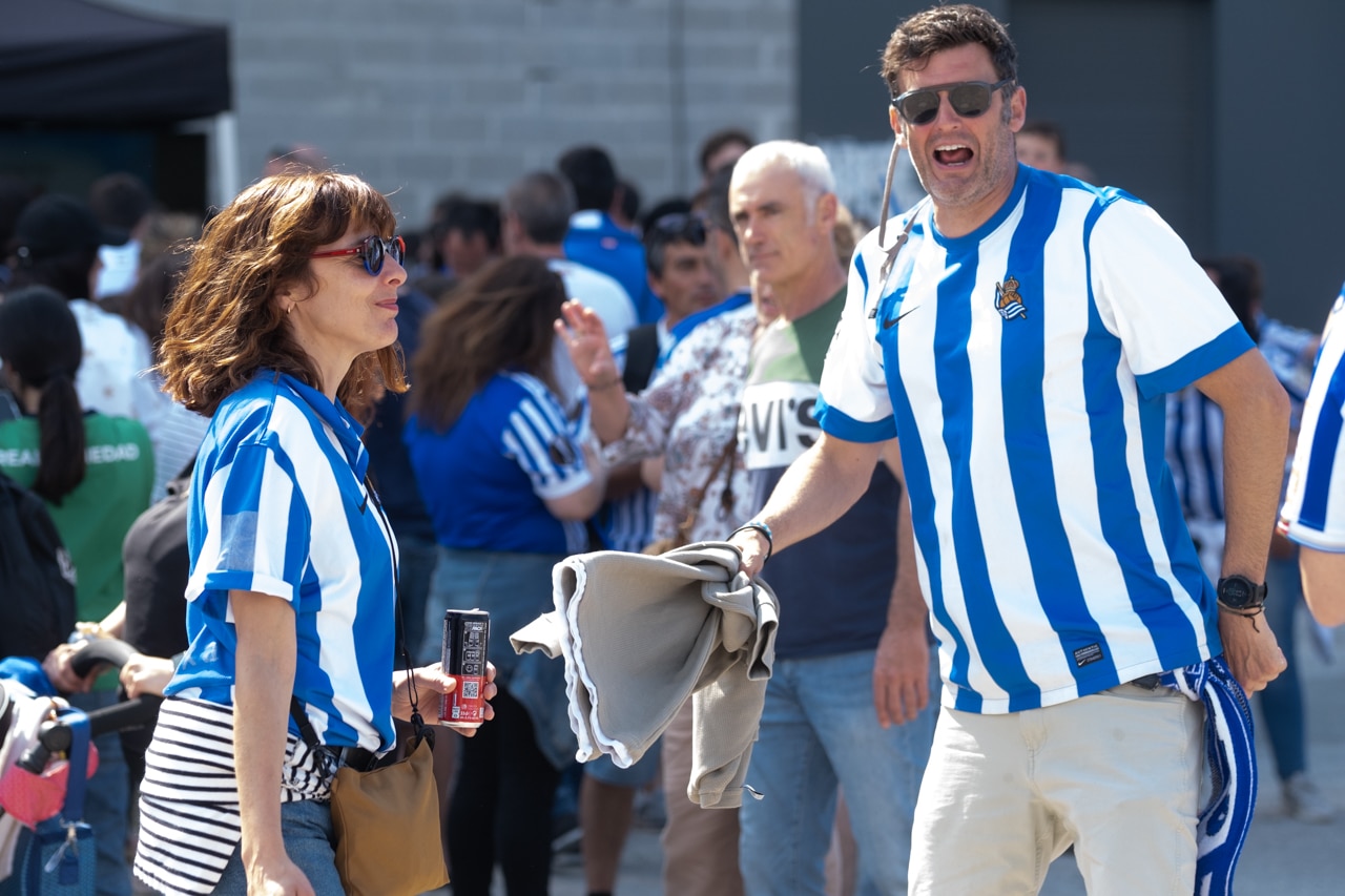 Con música, sol y la sensación de que esta vez no era tan importante el resultado y de que había mucho para celebrar. Así se ha celebrado en los aledaños del Reale Arena el partido contra el Sevilla antes de que éste diera comienzo. Acudieron al encuentro 35.065 aficionados para una tarde de disfrute. Más información: La Real despide a Illarramendi con su triunfo número 30 de la temporada