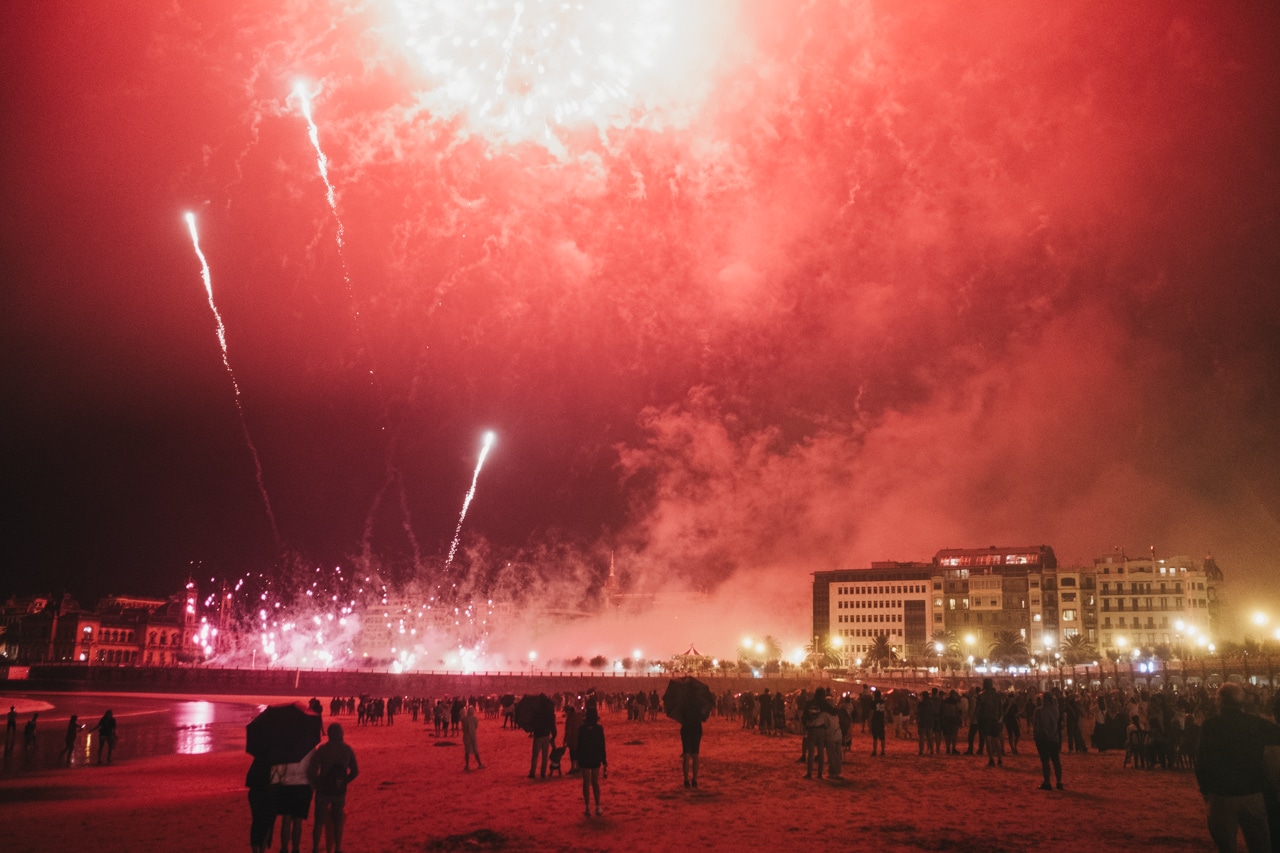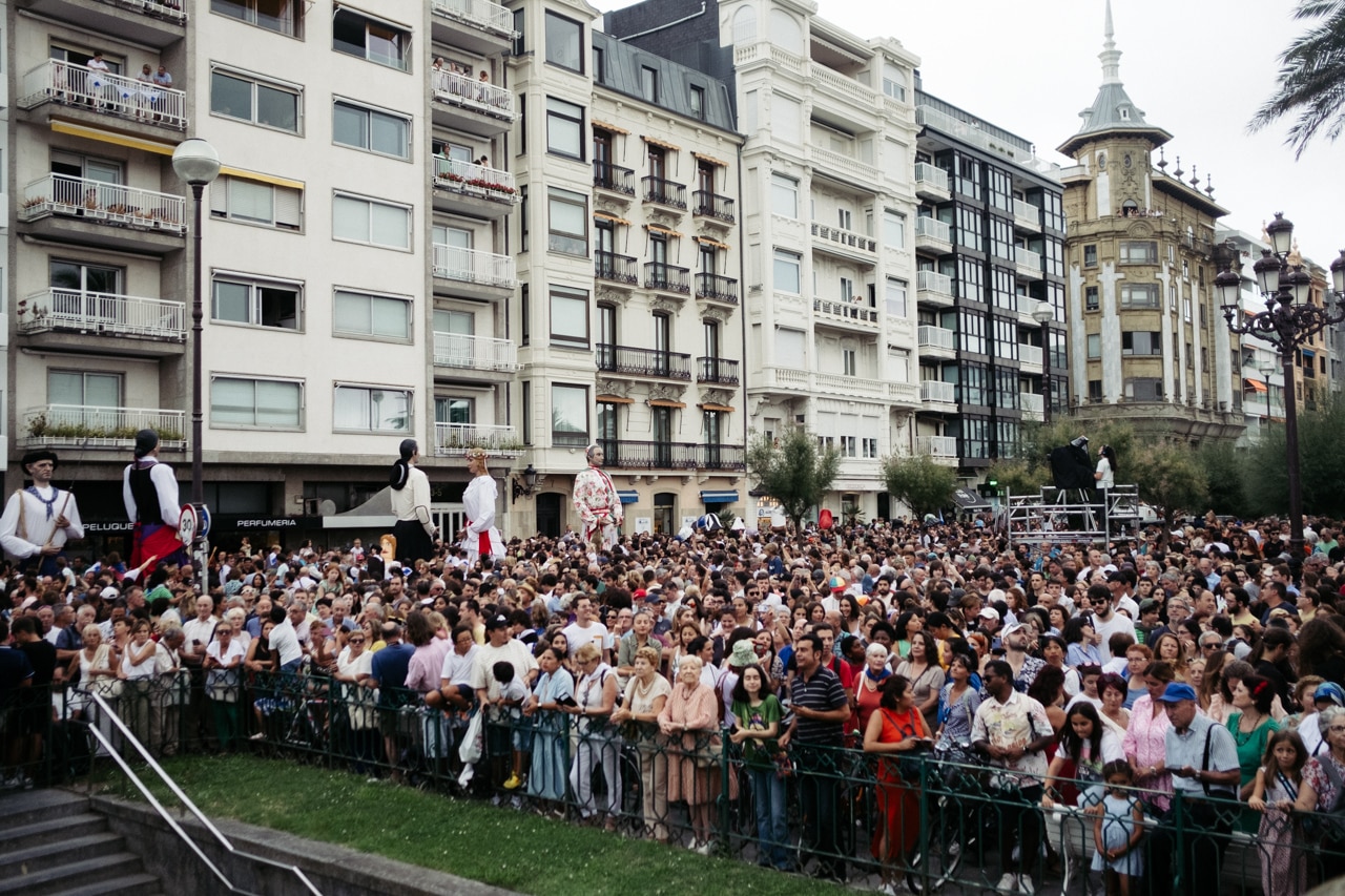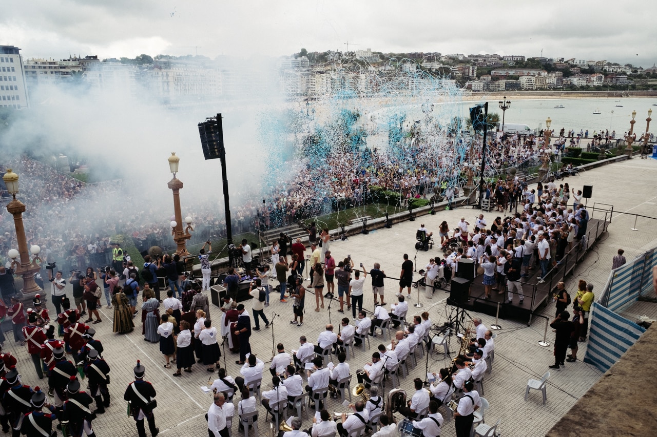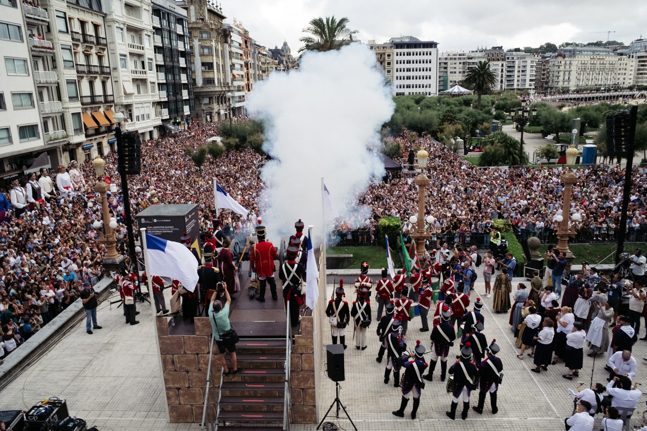Este domingo ha arrancado la Semana Grande en Donostia con el tradicional Cañonazo en el Ayuntamiento. Miles de personas se han acercado a los jardines de Alderdi Eder para disfrutarlo.