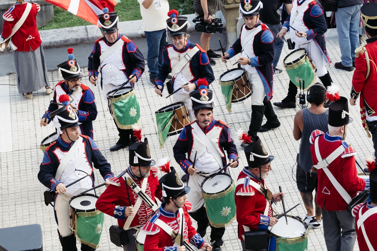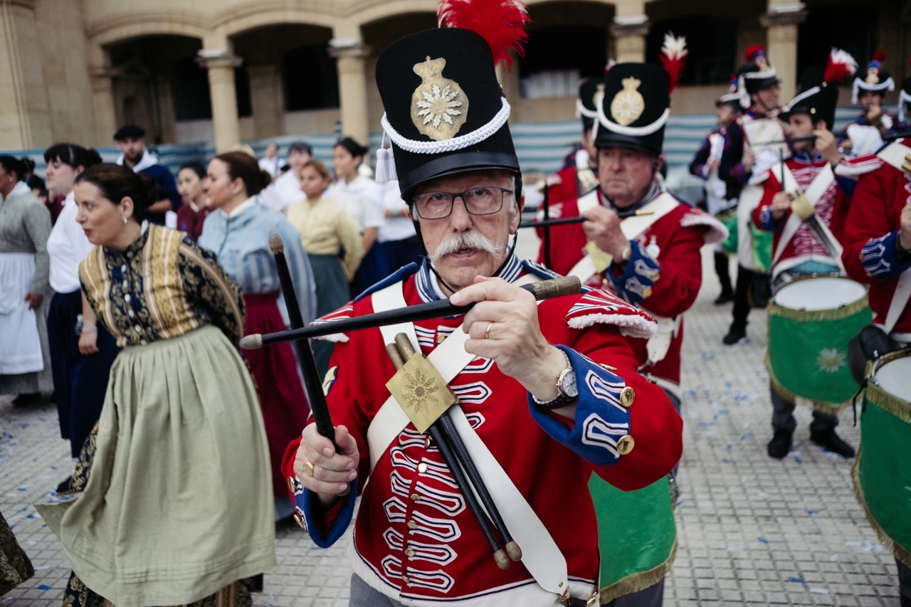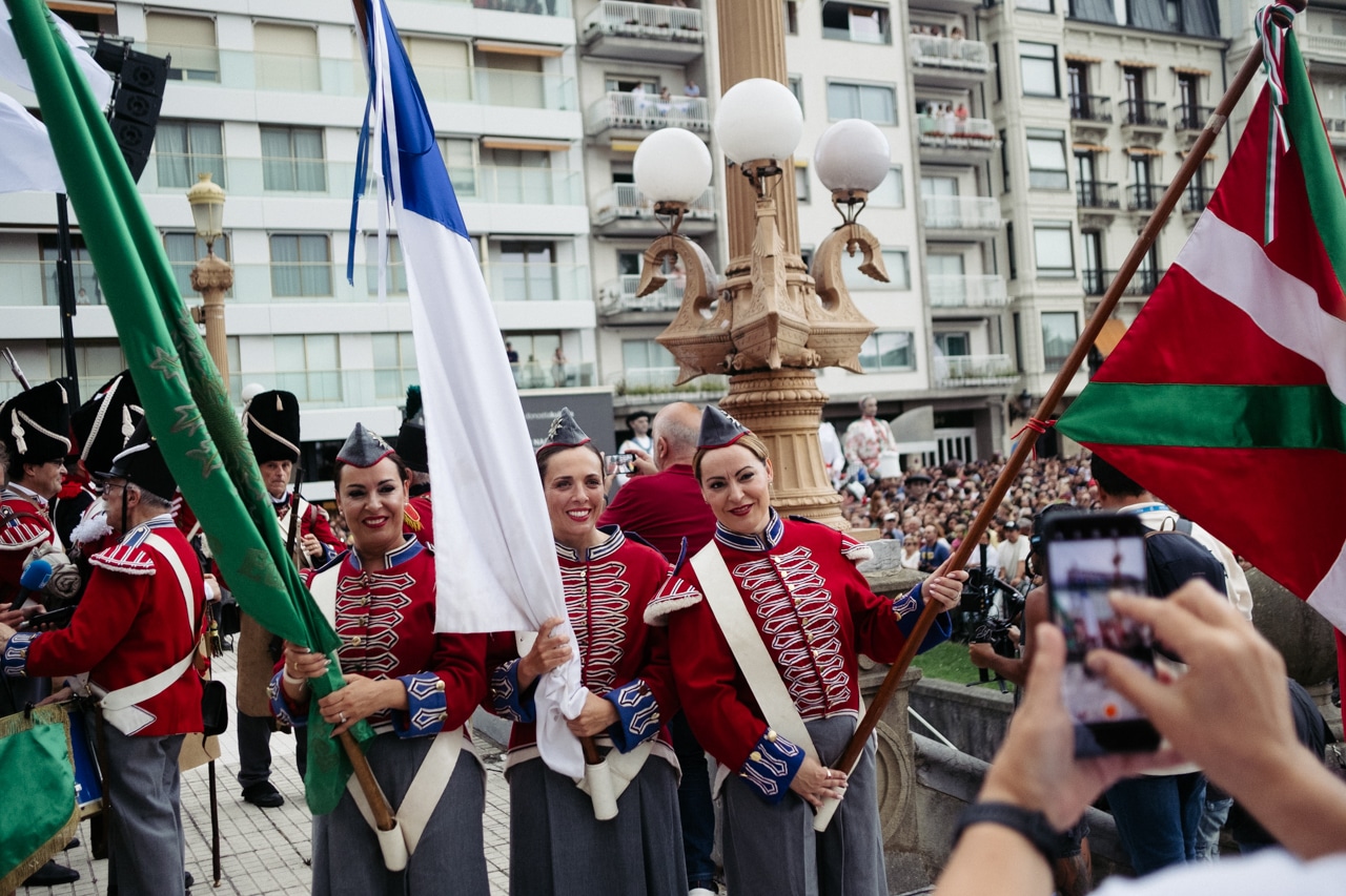 Junto a ellos había una veintena de integrantes de la Sociedad Fotográfica de Gipuzkoa, que cumple este año su 75 aniversario, y que ha tomado parte igualmente en el cañonazo al entonar todos juntos el tradicional «Artillero, dale fuego» que precede al ensordecedor disparo.