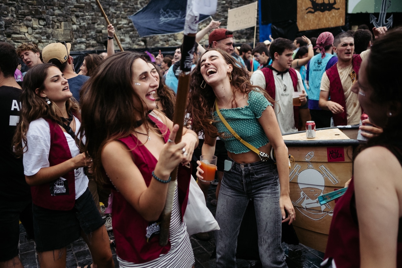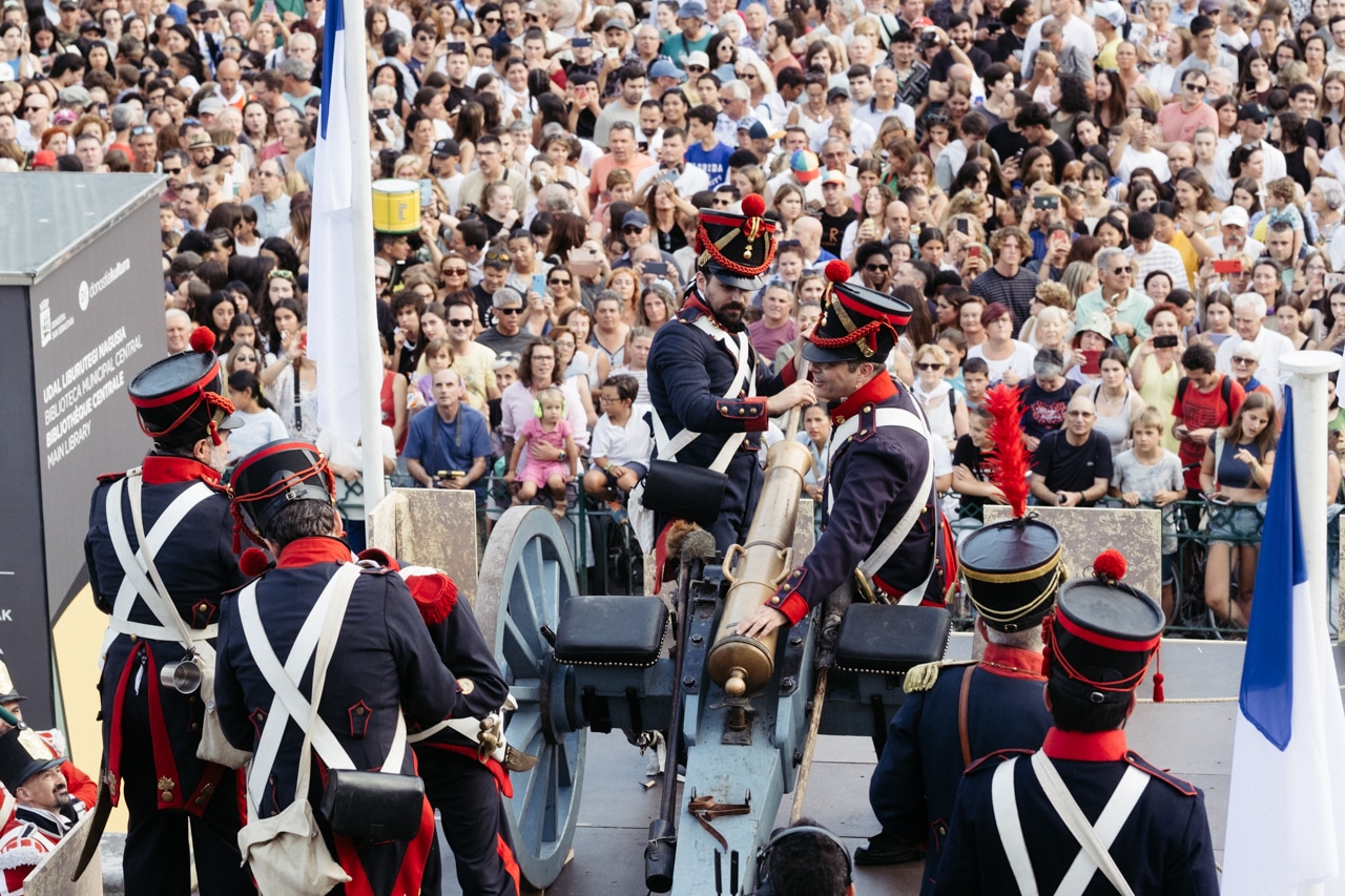 Los artilleros Elías Arruabarrena y Onintza Mokoroa, miembros de la Cofradía Vasca de Gastronomía, han lanzado el cañonazo. A partir de ahora mandará la fiesta, que se extenderá por todos los barrios.