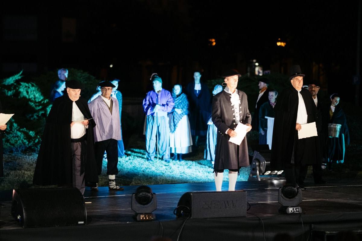 Euskal Jaiak encara la recta final en Donostia y este pasado viernes tuvo lugar en la plaza Irun uno de los espectáculos más nutridos de público, Ate Zaharberriak, que congregó a cientos de espectadores para recorrer la historia de la ciudad mediante una narración, música, baile y recreaciones. Programa de Euskal Jaiak, aquí.
