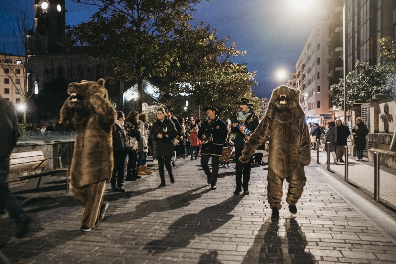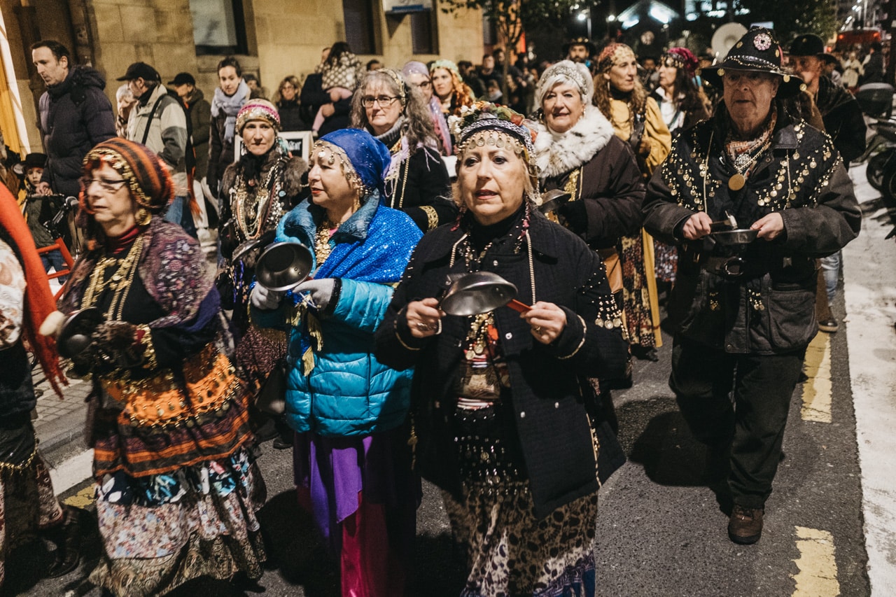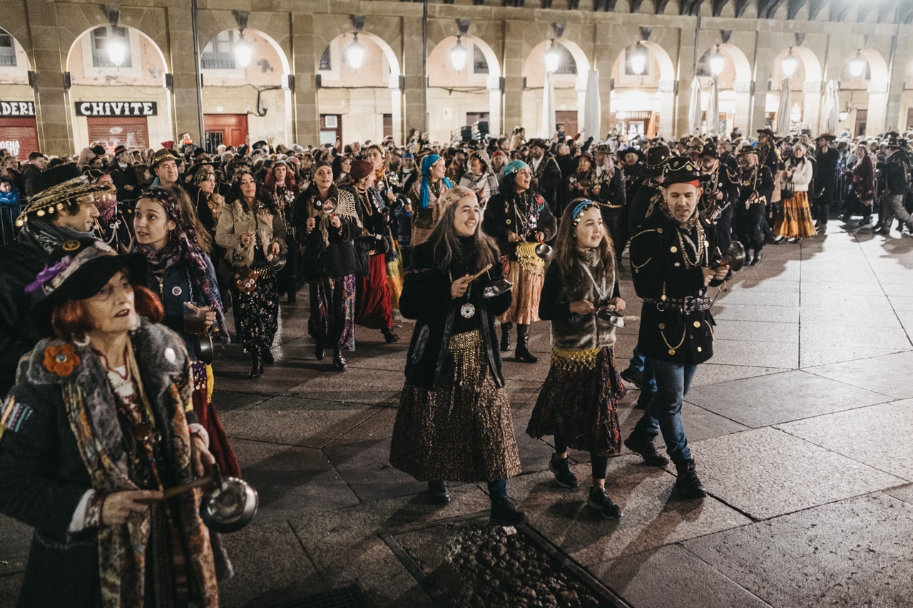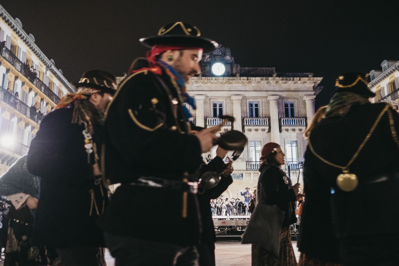 Imágenes de los Caldereros este sábado en Amara Viejo, Gros y ya de noche en la Parte Vieja. Fotos de Santiago Farizano.