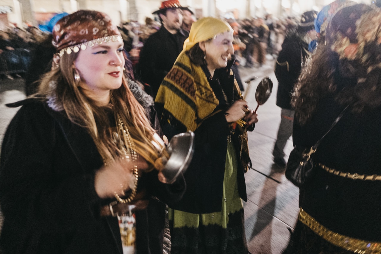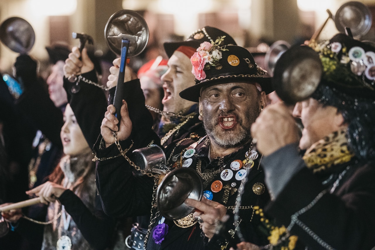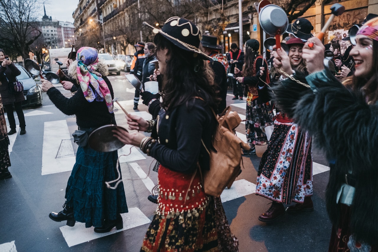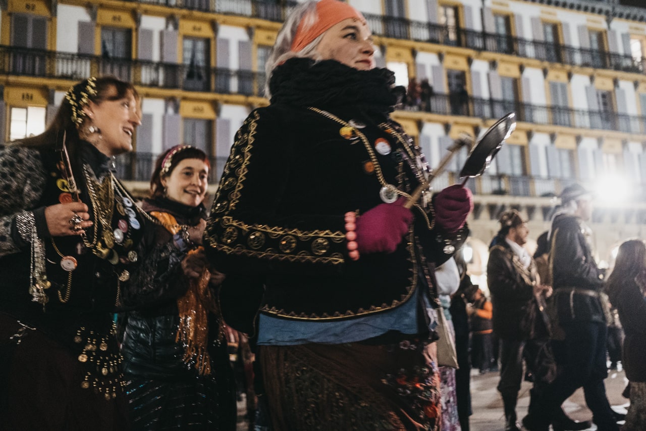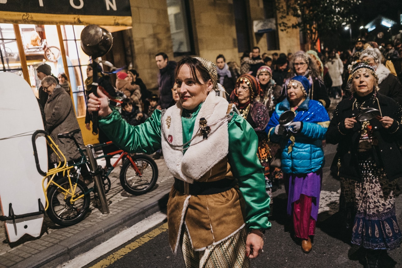 Imágenes de los Caldereros este sábado en Amara Viejo, Gros y ya de noche en la Parte Vieja. Fotos de Santiago Farizano.
