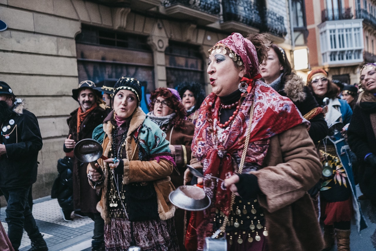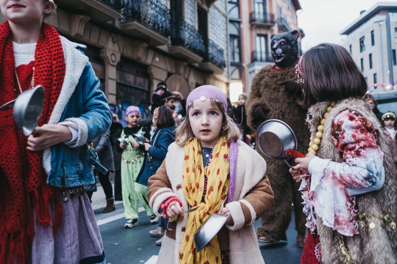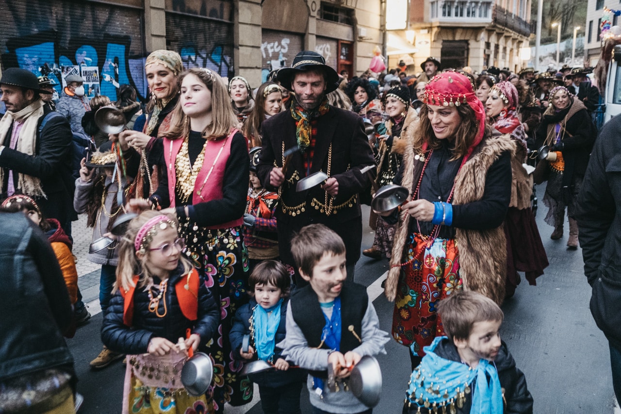 No hay frío que valga cuando hay ganas de fiesta. Y el sábado hubo mucha por la tarde en los barrios y por la noche en la Parte Vieja