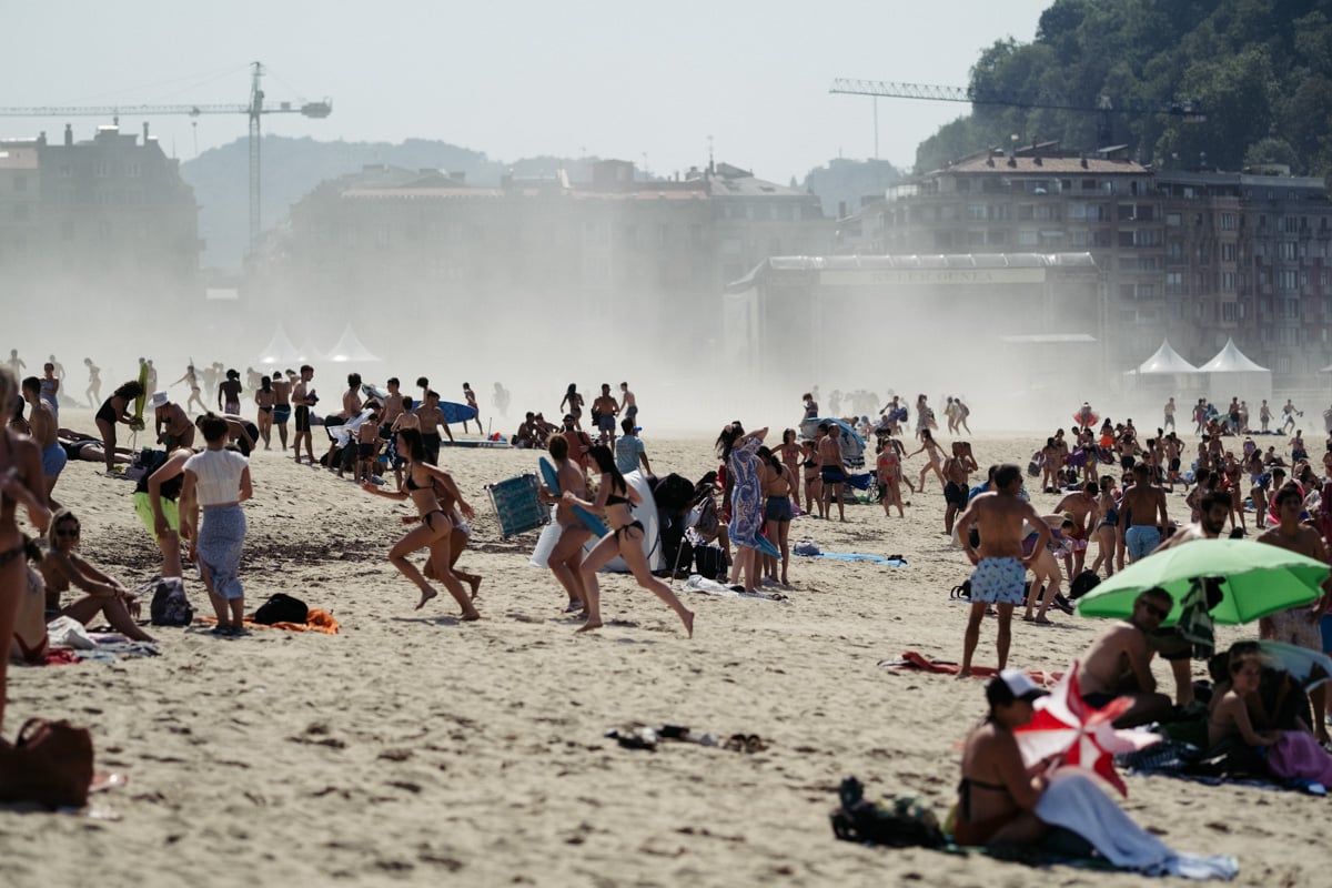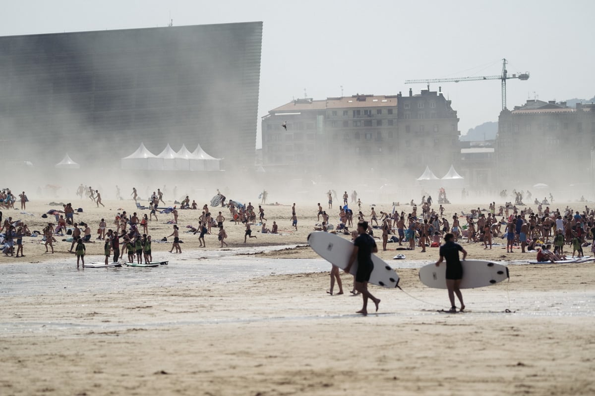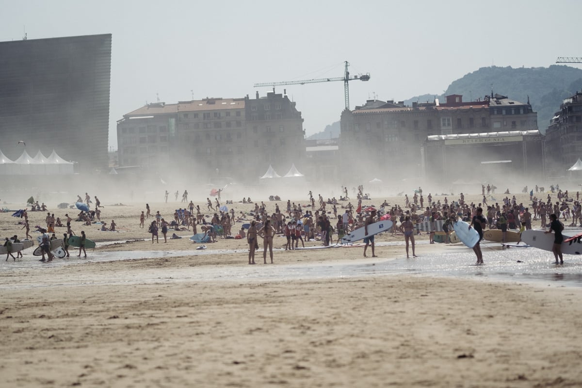 Tal y como estaba anunciado, cerca de las 17 horas se ha desatado la galerna en las playas donostiarras. Antes de eso pocos valientes se encontraban en los arenales debido a las altas temperaturas. Después han comenzado a llegar más. La galerna, que ha comenzado a enfriar el ambiente, marca el final de la ola de calor de estos días. De hecho la temperatura máxima anunciada para mañana es de 25º.