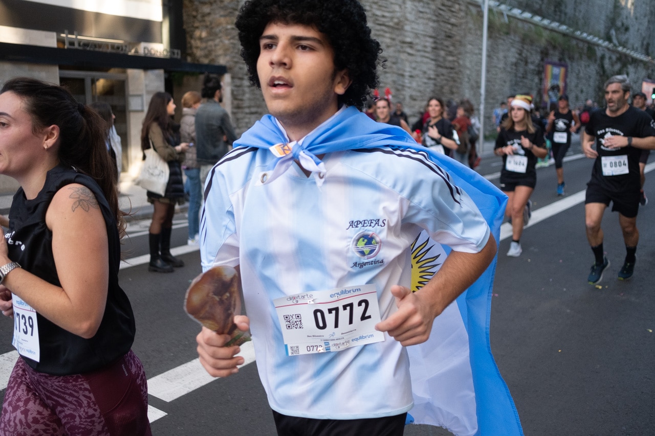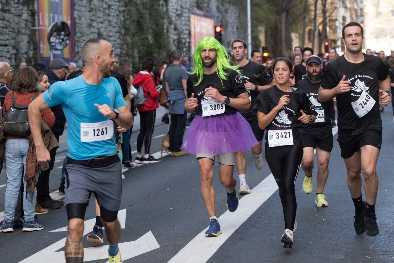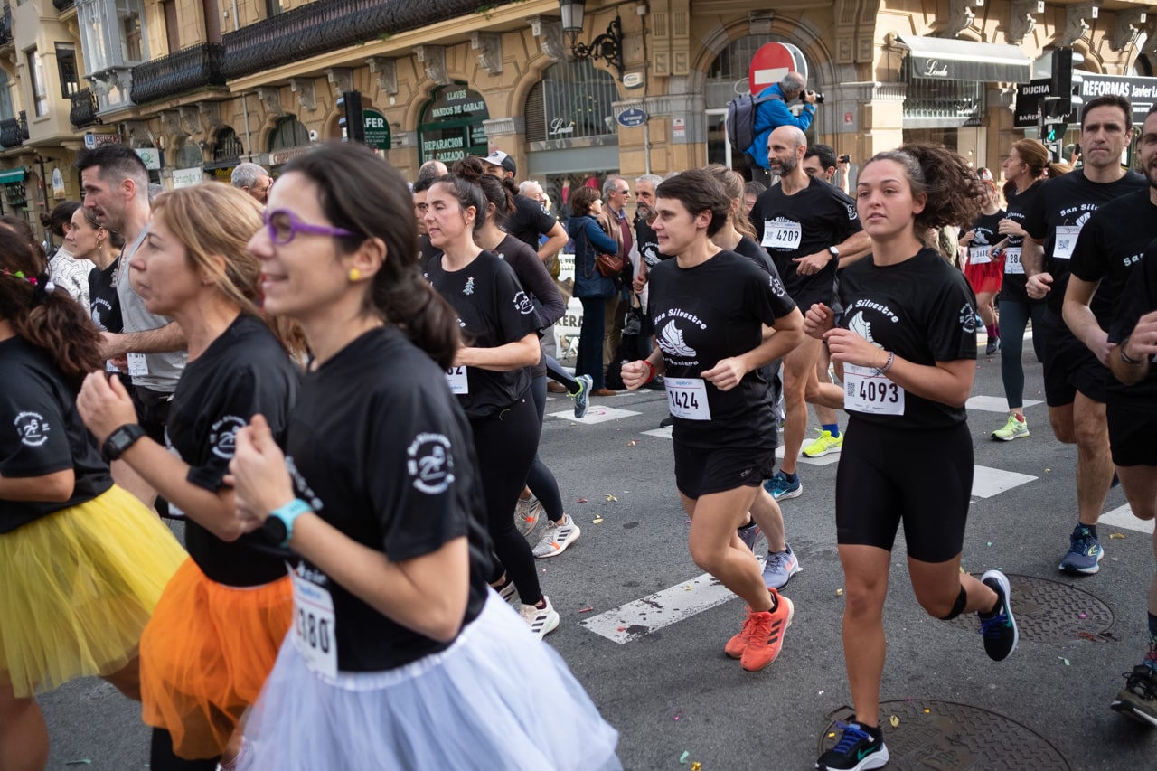 Gran ambiente, sol, buena temperatura y muchos disfraces en la última carrera del año en San Sebastián, que también es la más popular. Ha salido de la plaza Easo a las 14 horas y el trayecto terminaba en el mismo punto.
