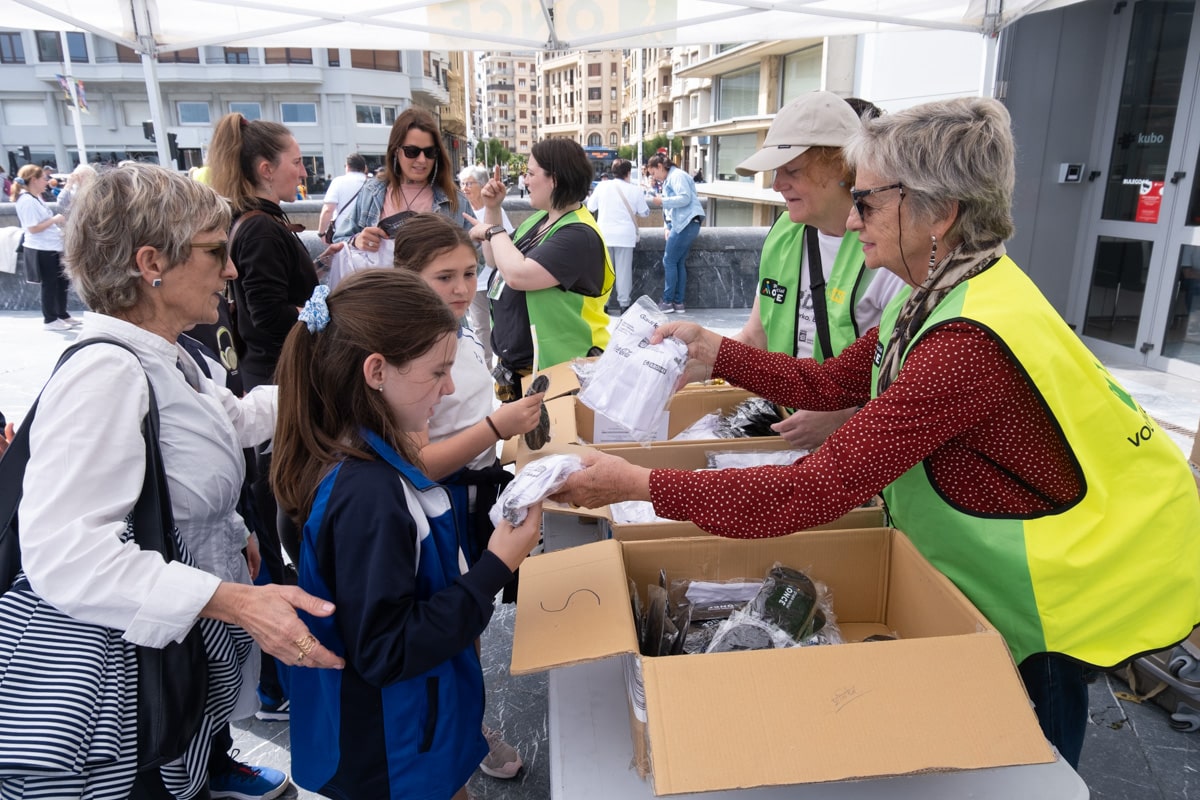 El alcalde de Donostia Eneko Goia ha sido uno de los que se ha sumado a la iniciativa en que también han participado otras autoridades y el alumnado de centros escolares como Ekintza, FP Easo, Ortzadar o Amara Berri, además de usuarios de garagunes de Fundación Goyeneche.