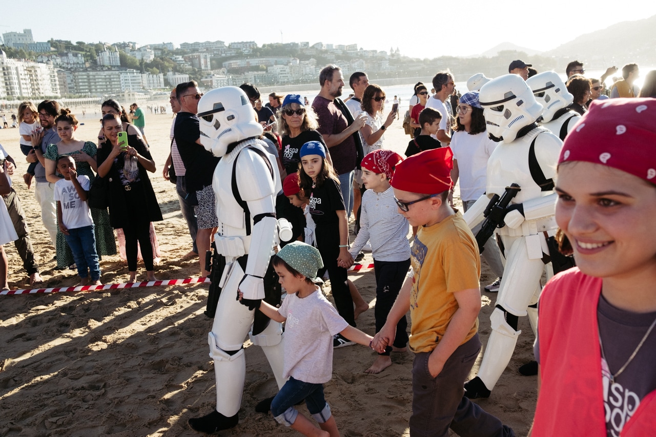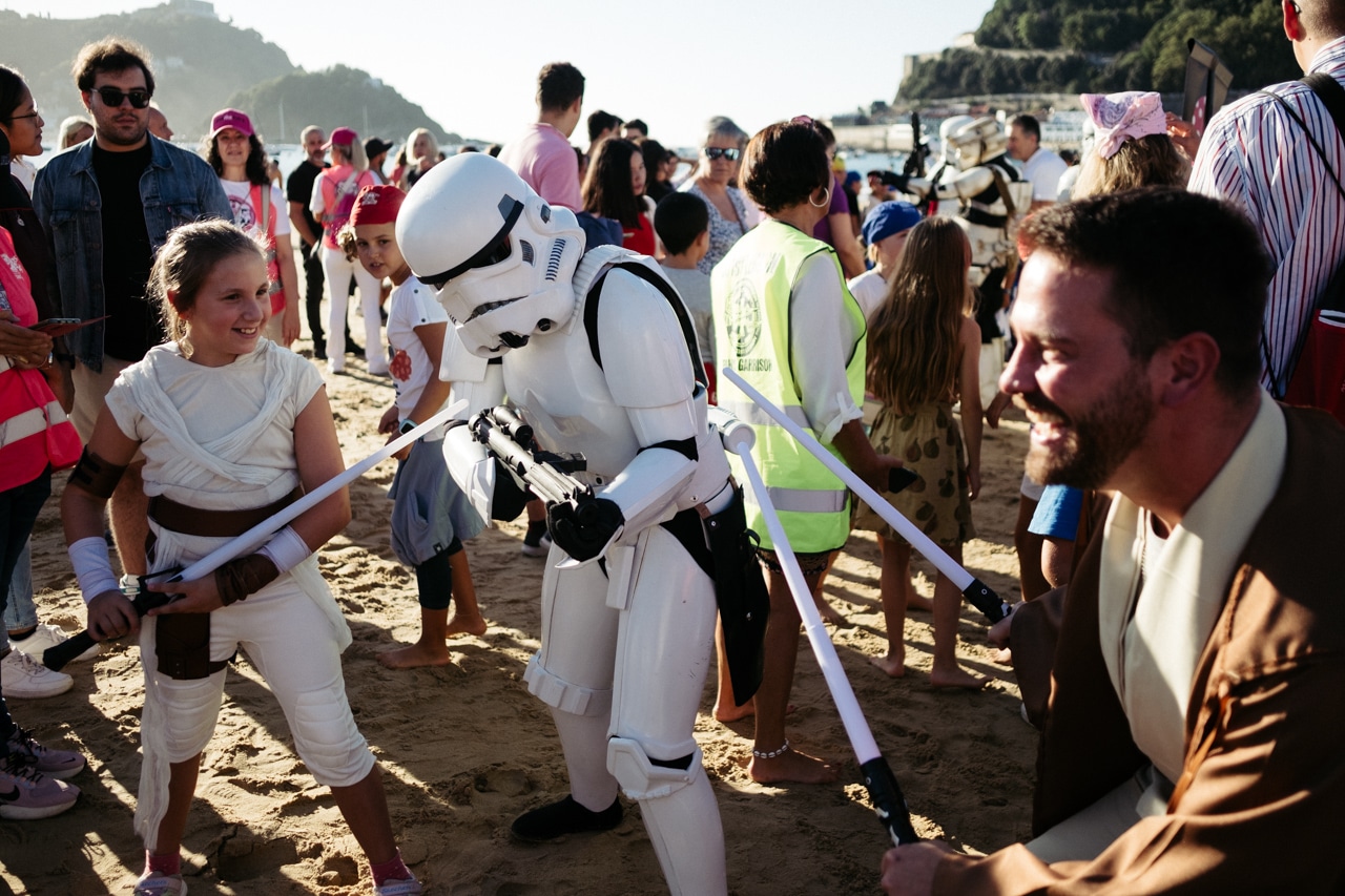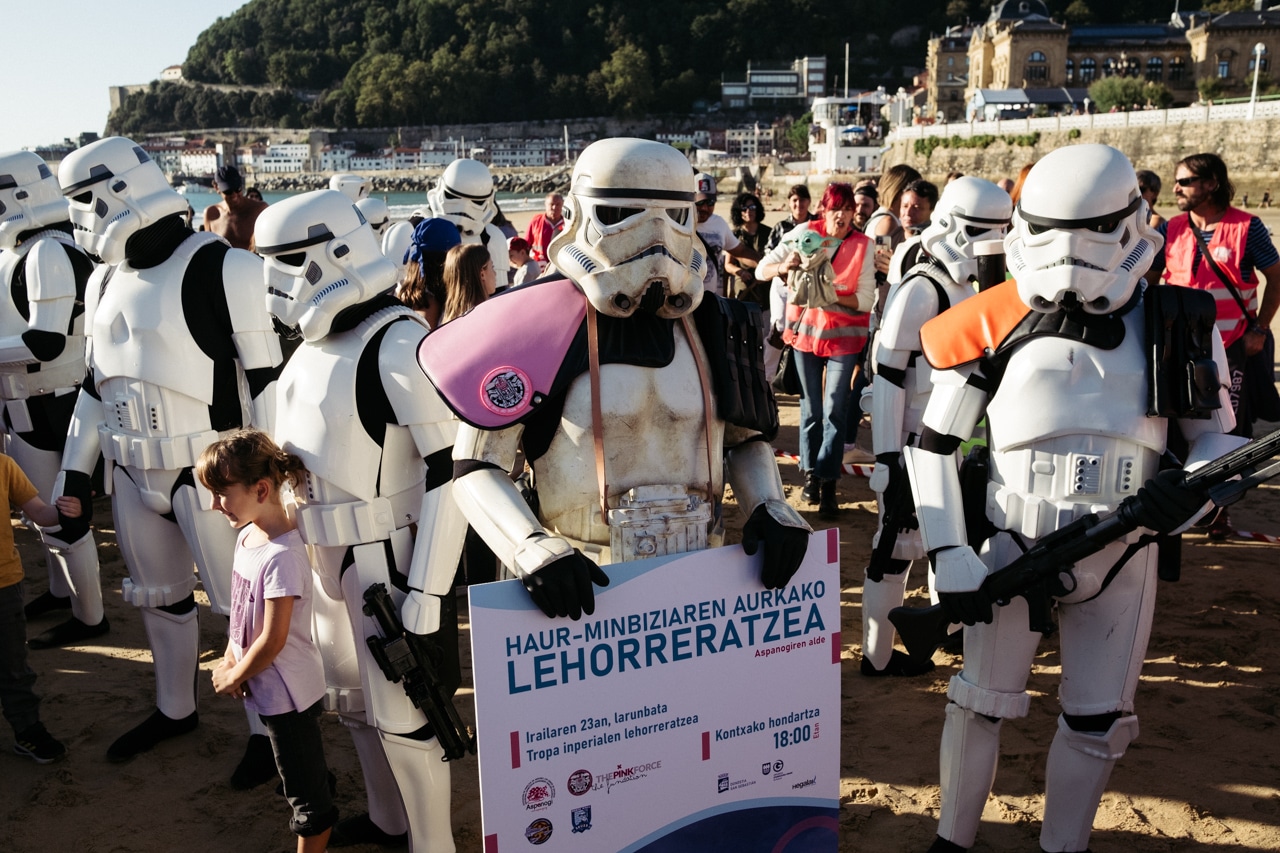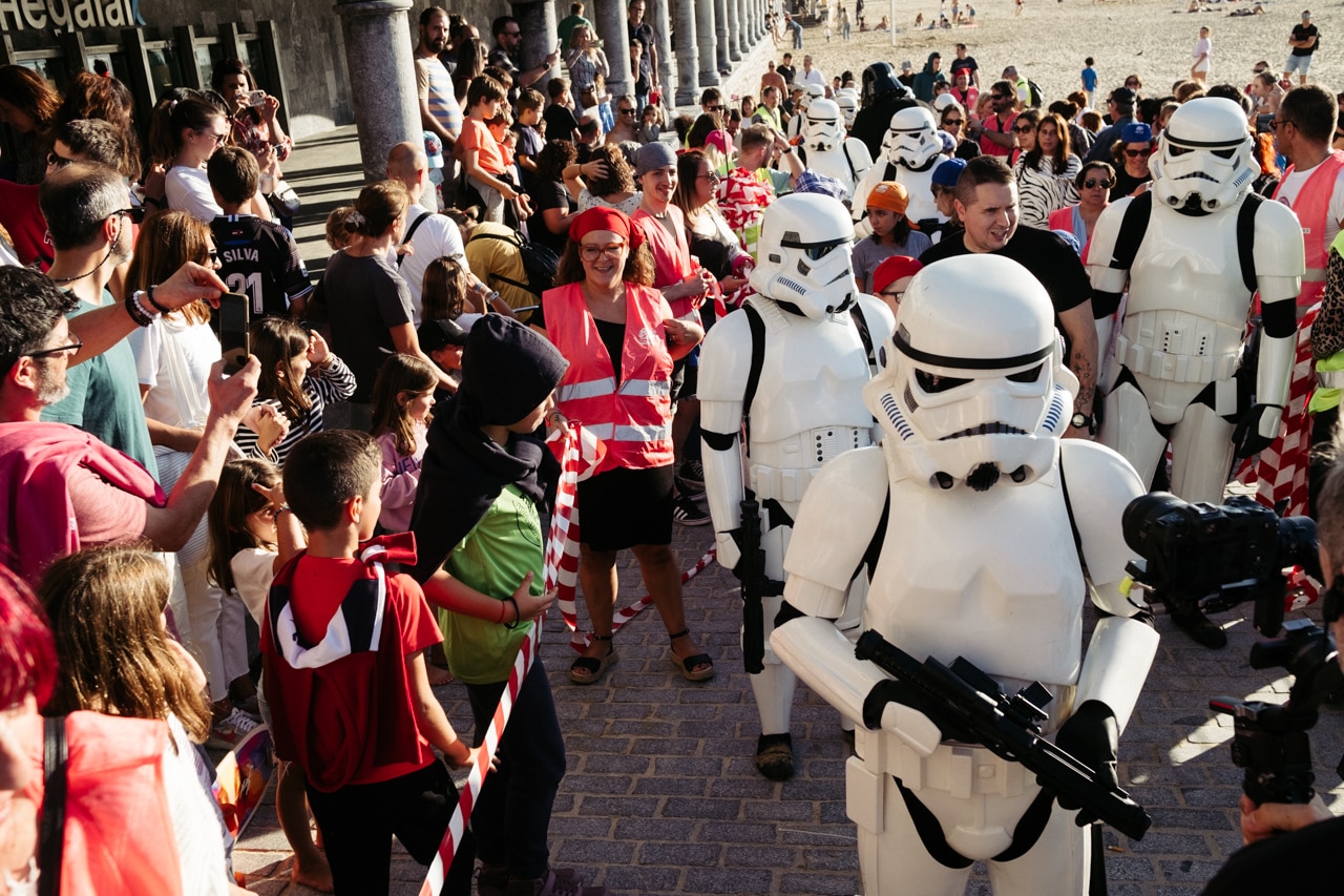 Cientos de familias han disfrutado esta tarde del desembarco de las tropas imperiales de Star Wars en la playa de la Concha. La iniciativa era de la asociación de familias Aspanogi y, como siempre, The Pink Force ha logrado que haya sido un éxito.