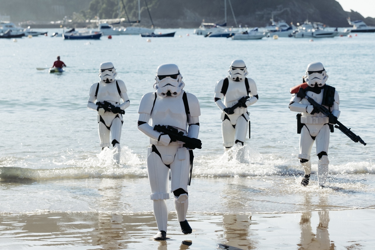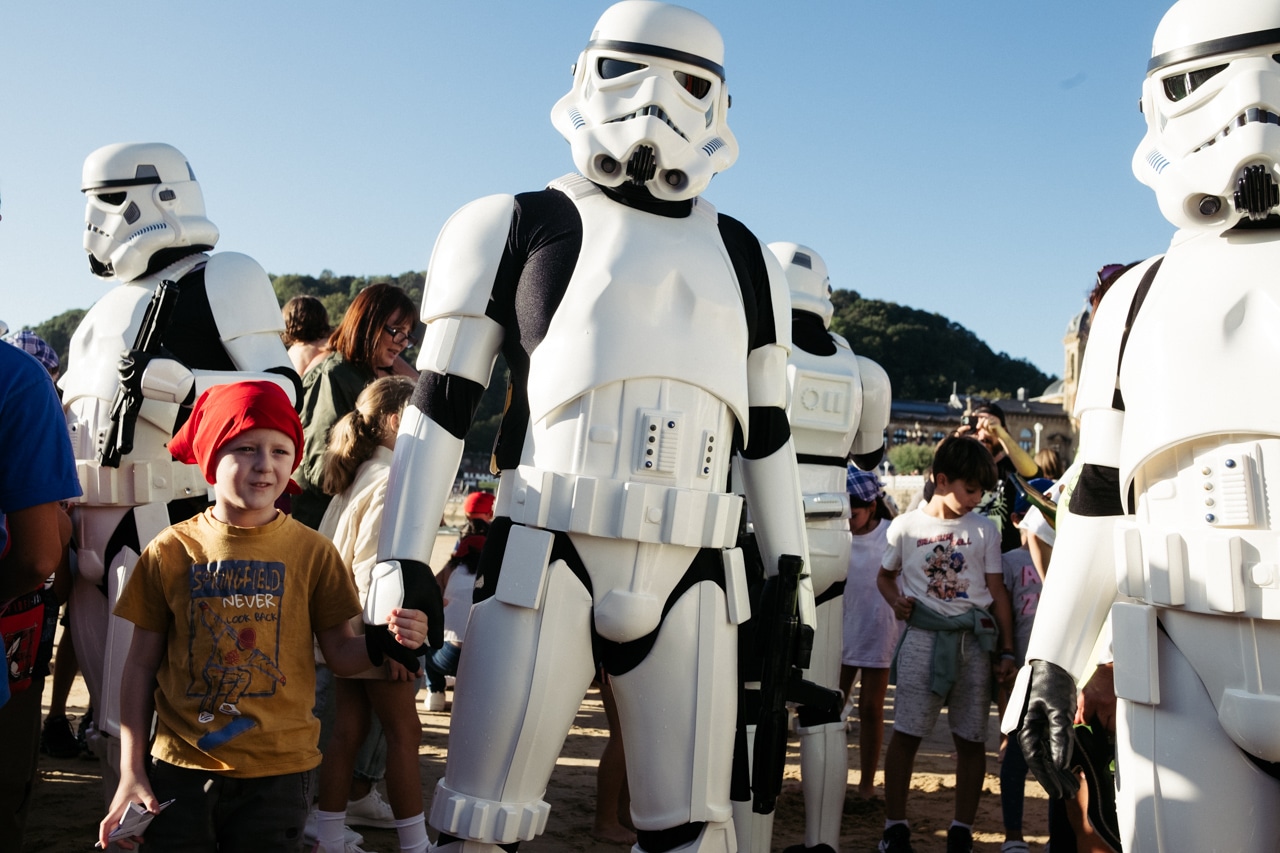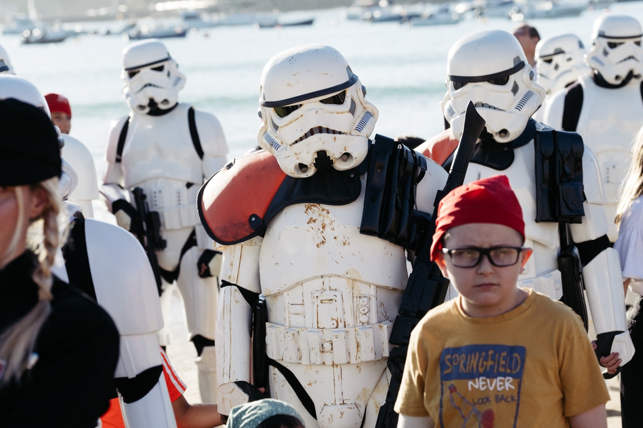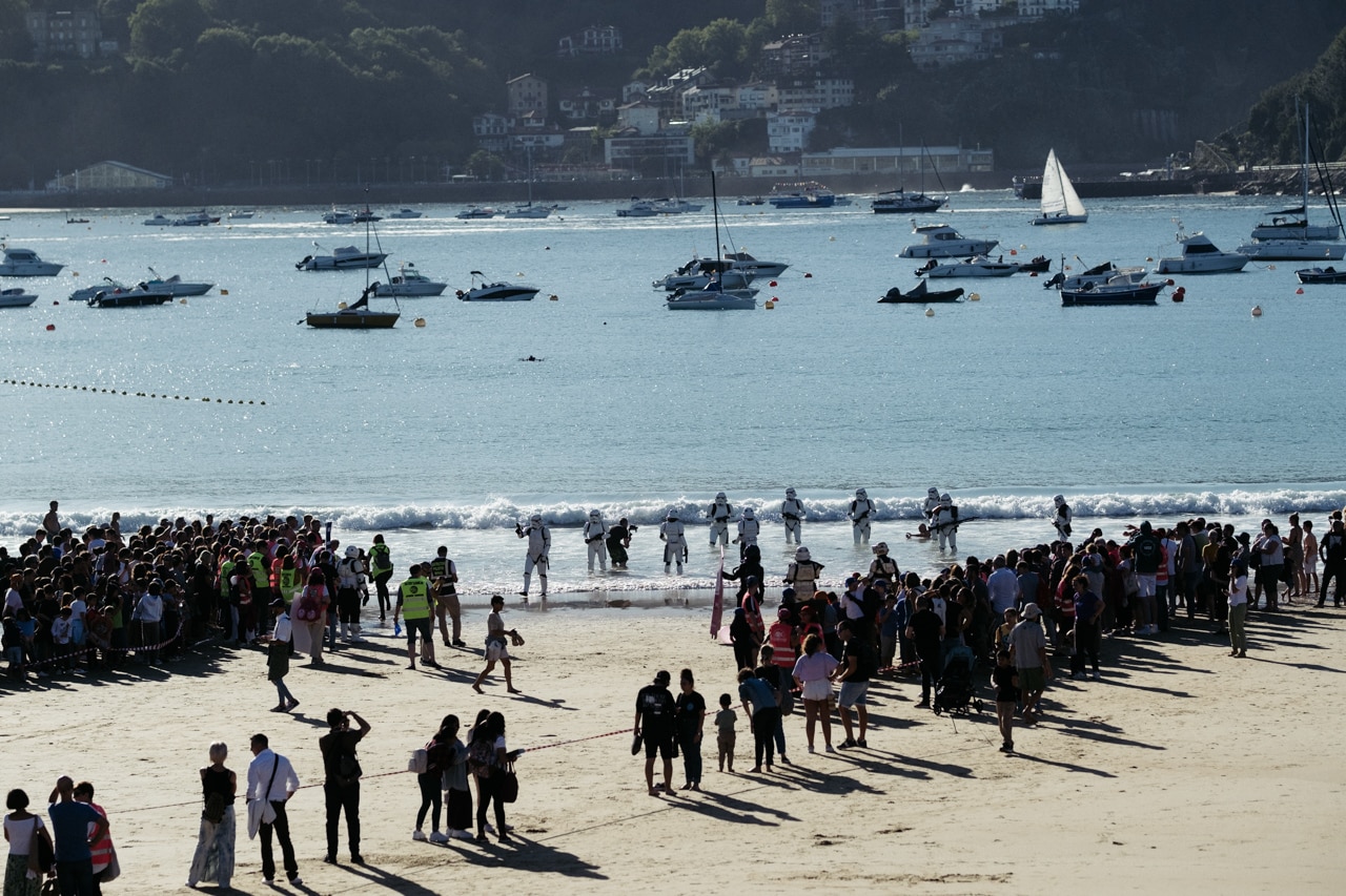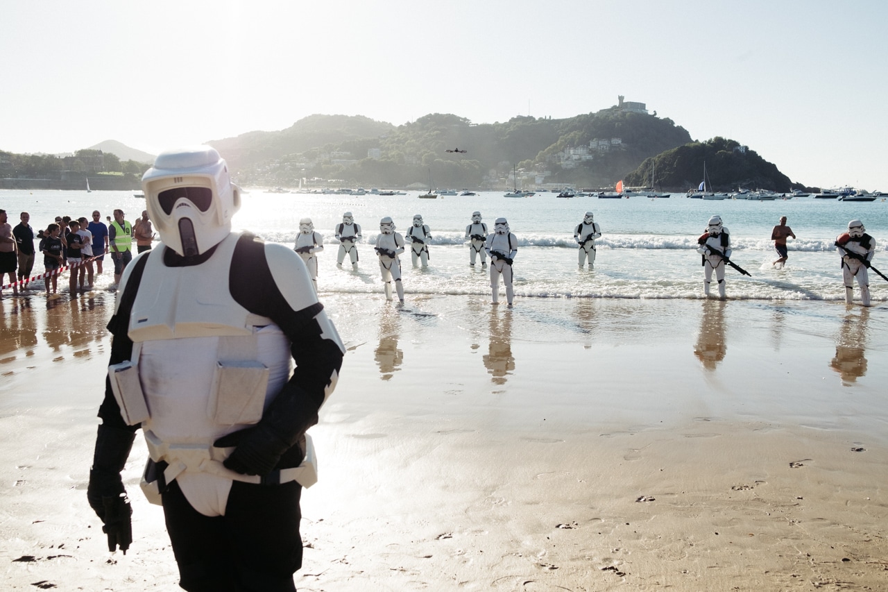 Cientos de familias han disfrutado esta tarde del desembarco de las tropas imperiales de Star Wars en la playa de la Concha. La iniciativa era de la asociación de familias Aspanogi y, como siempre, The Pink Force ha logrado que haya sido un éxito.