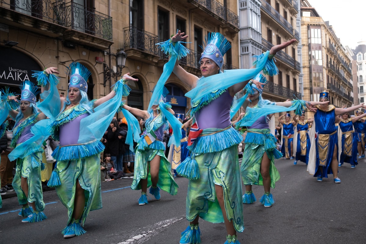 Tras la suspensión del sábado debido al mal tiempo, las comparsas sí pudieron lucir todo su esplendor este domingo en San Sebastián y, además, con bastante público.