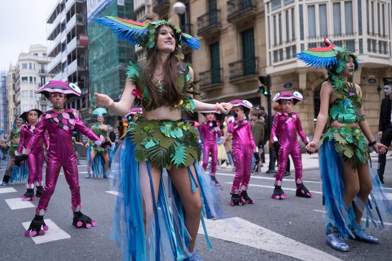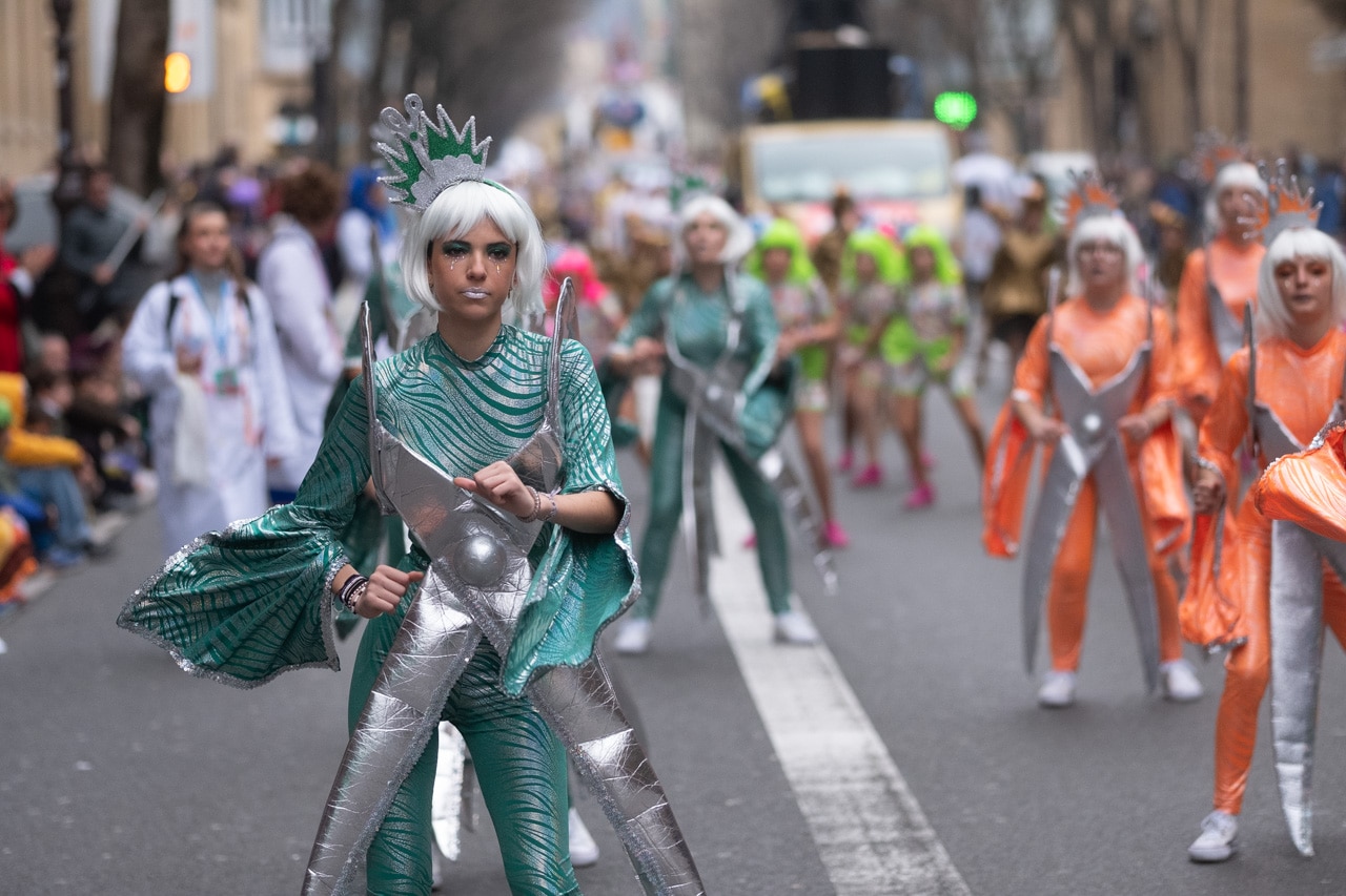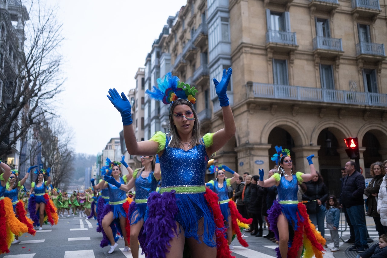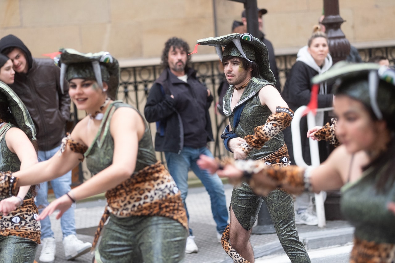 Las camparsas tomaron este domingo el Centro donostiarra ignorando el fresco que se levantó a partir del mediodía y llenando las calles de color, calor y música. De esta manera el Carnaval entra en su recta final, aunque todavía hay tiempo por delante para disfrutar. Programa completo, aquí.