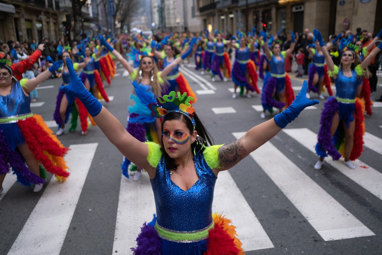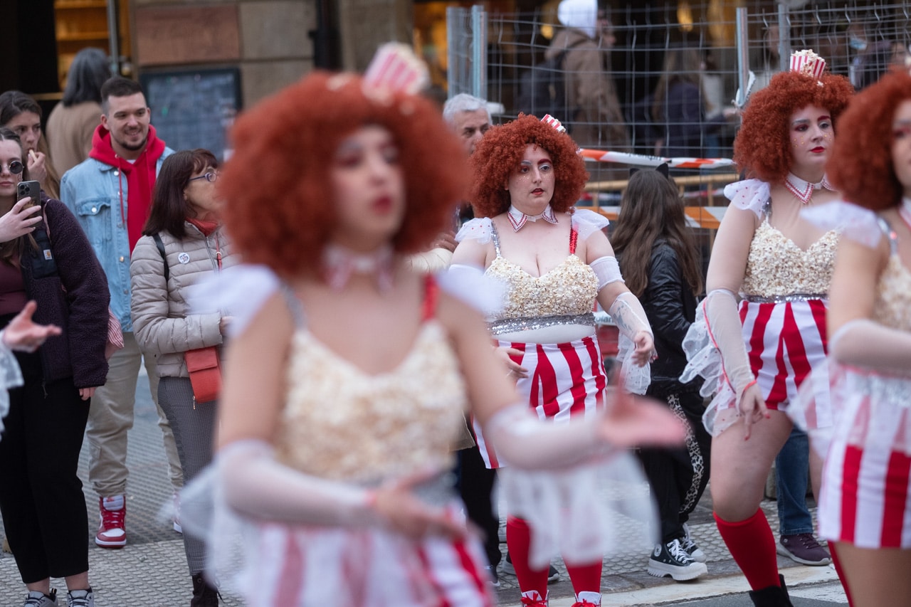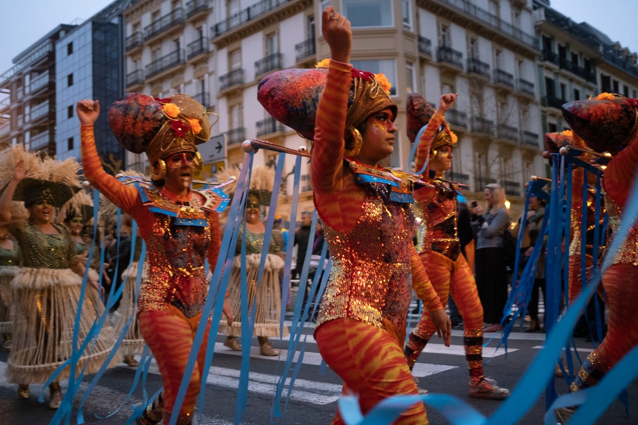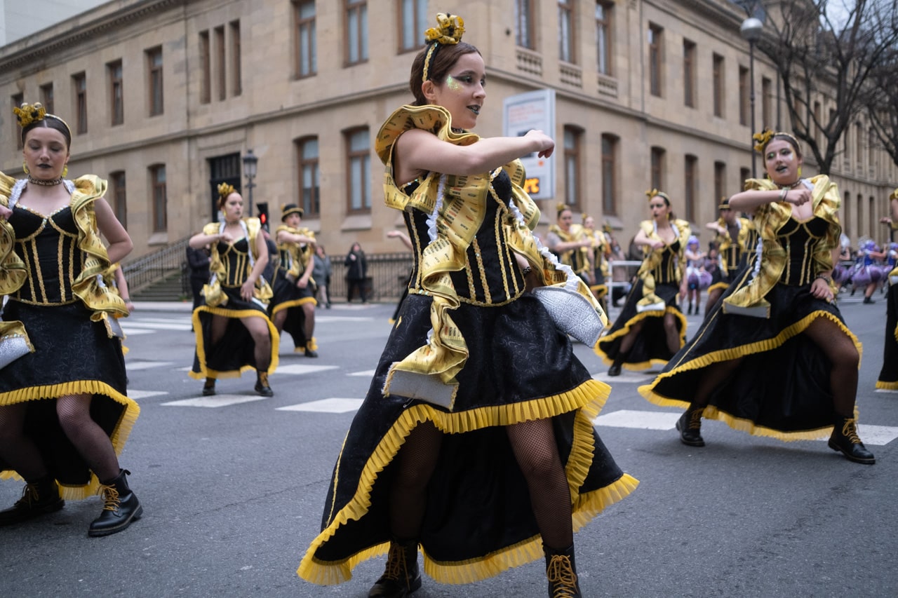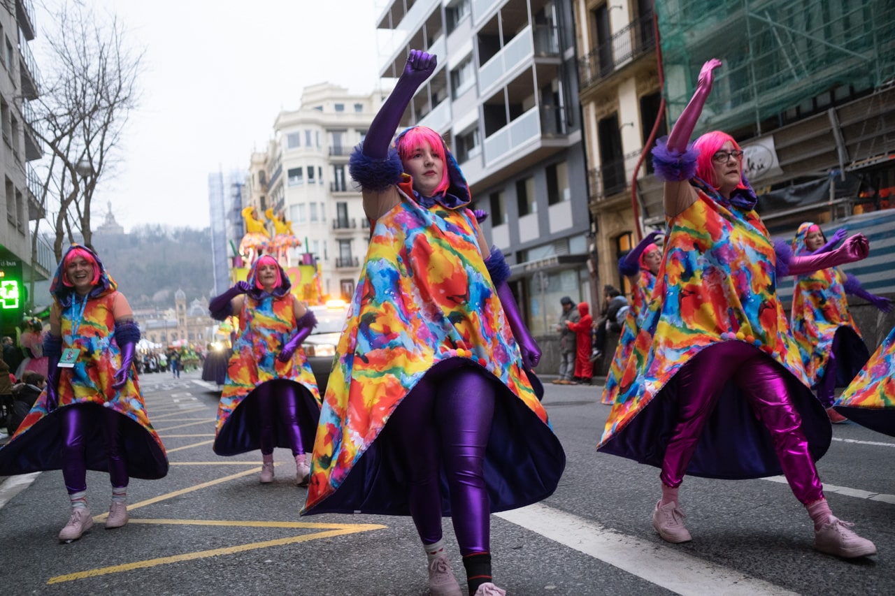 Las camparsas tomaron este domingo el Centro donostiarra ignorando el fresco que se levantó a partir del mediodía y llenando las calles de color, calor y música. De esta manera el Carnaval entra en su recta final, aunque todavía hay tiempo por delante para disfrutar. Programa completo, aquí.