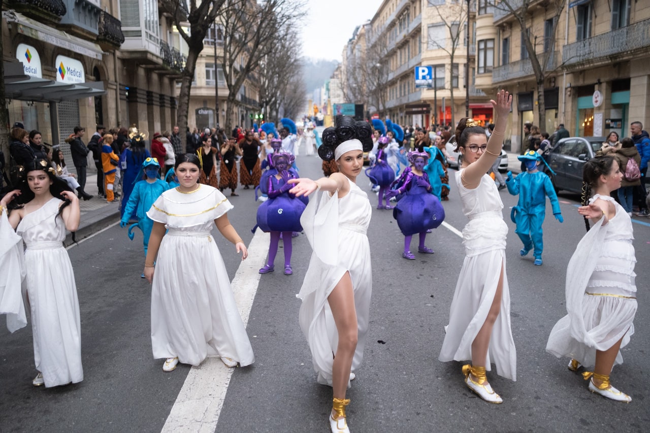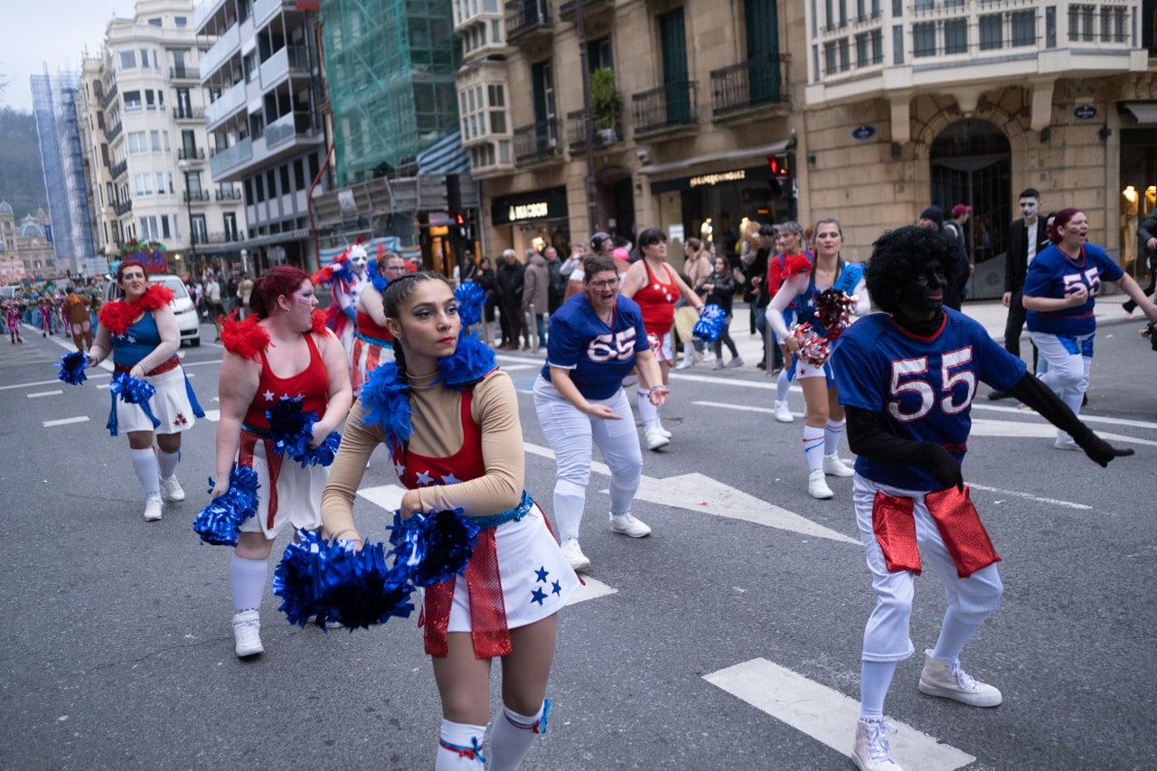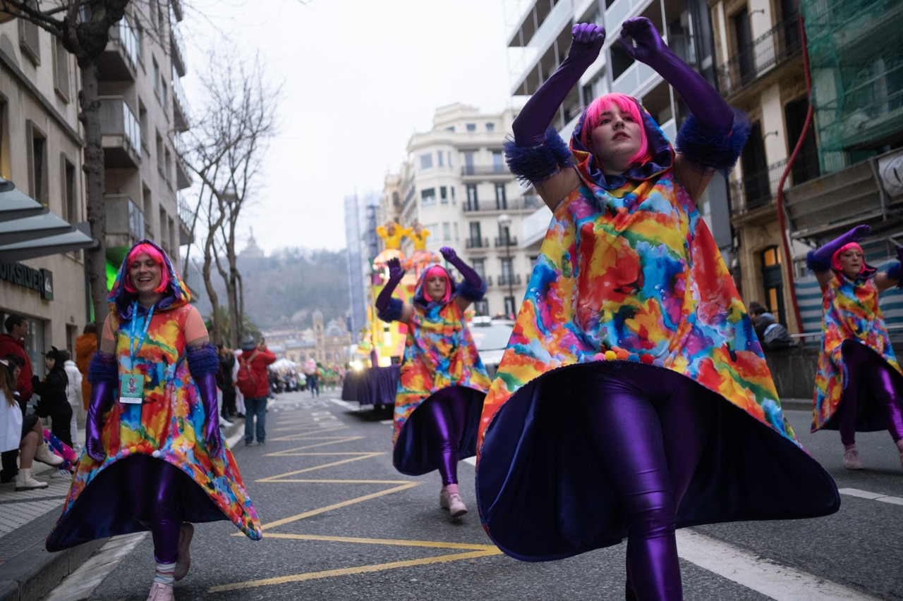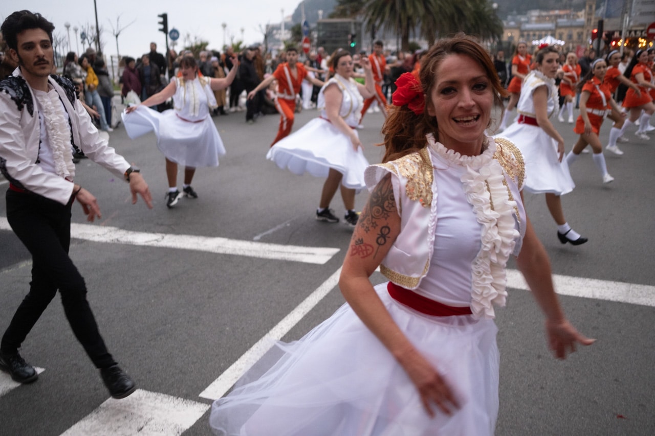 Las camparsas tomaron este domingo el Centro donostiarra ignorando el fresco que se levantó a partir del mediodía y llenando las calles de color, calor y música. De esta manera el Carnaval entra en su recta final, aunque todavía hay tiempo por delante para disfrutar. Programa completo, aquí.