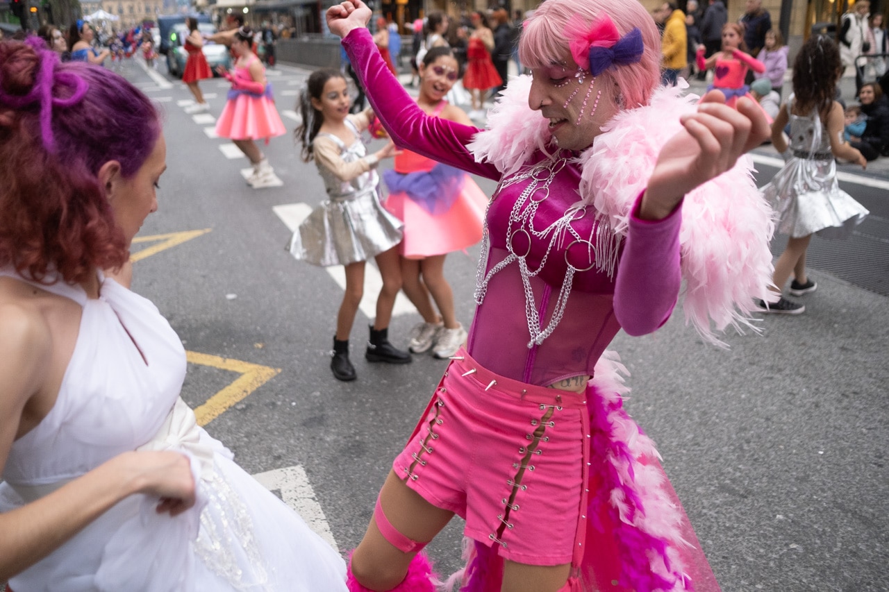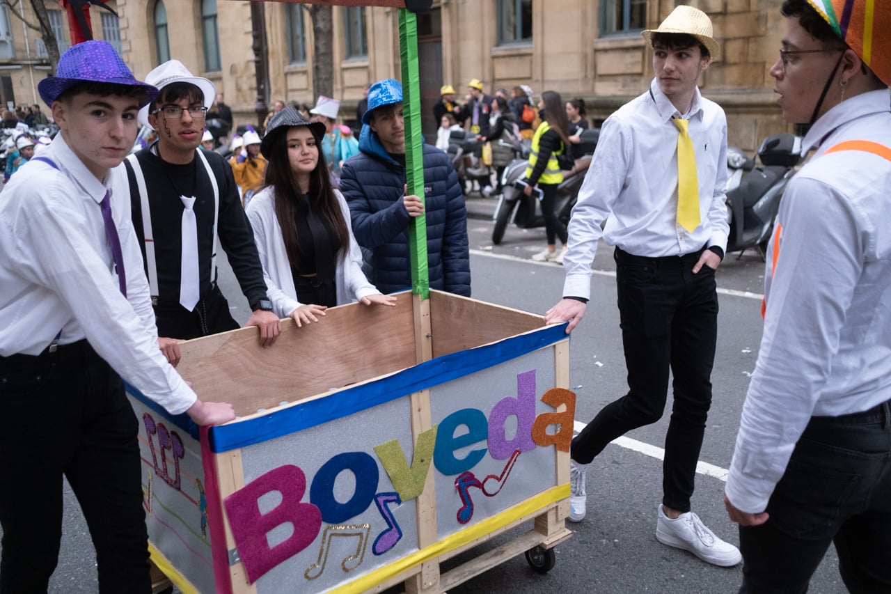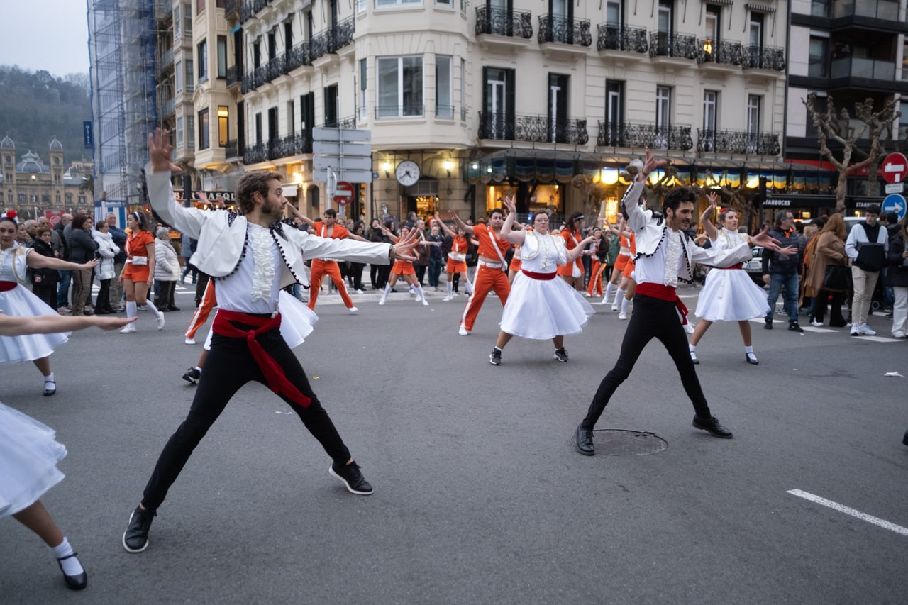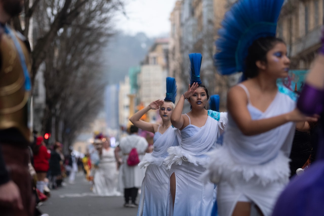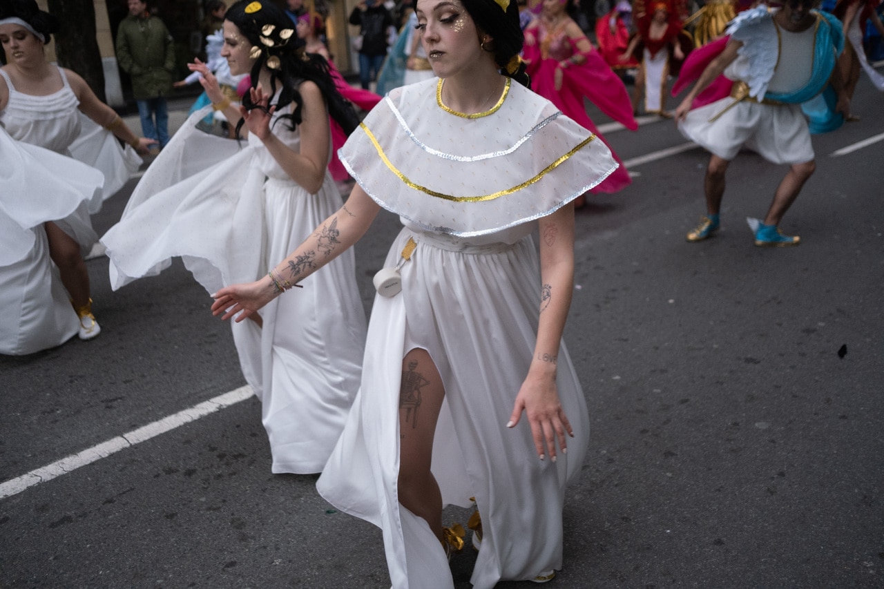 Las camparsas tomaron este domingo el Centro donostiarra ignorando el fresco que se levantó a partir del mediodía y llenando las calles de color, calor y música. De esta manera el Carnaval entra en su recta final, aunque todavía hay tiempo por delante para disfrutar. Programa completo, aquí.