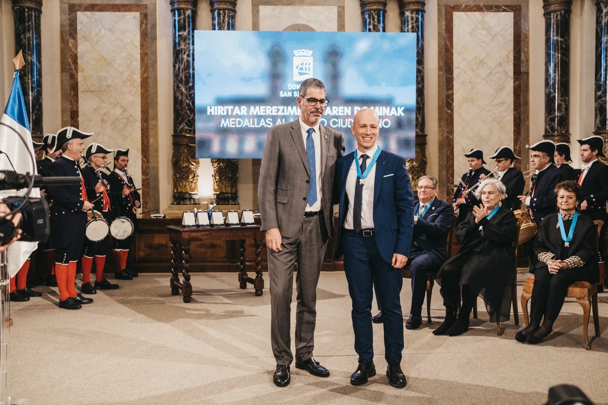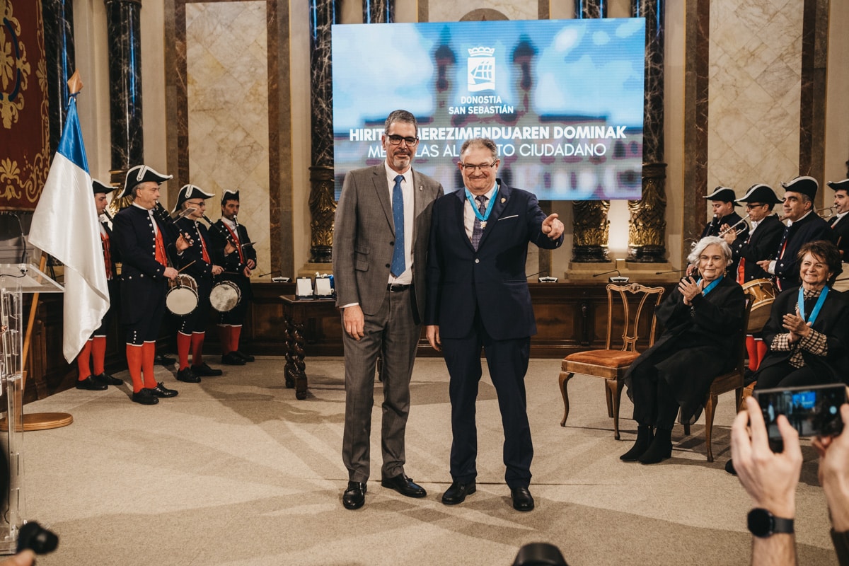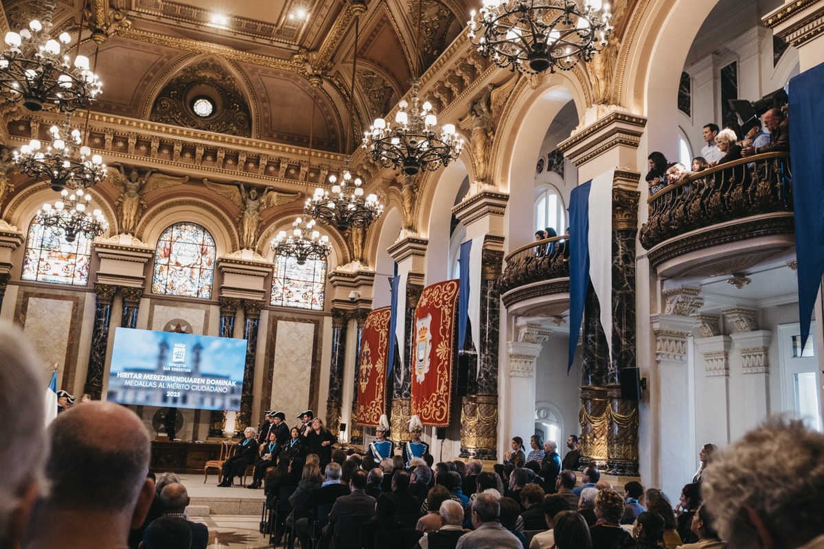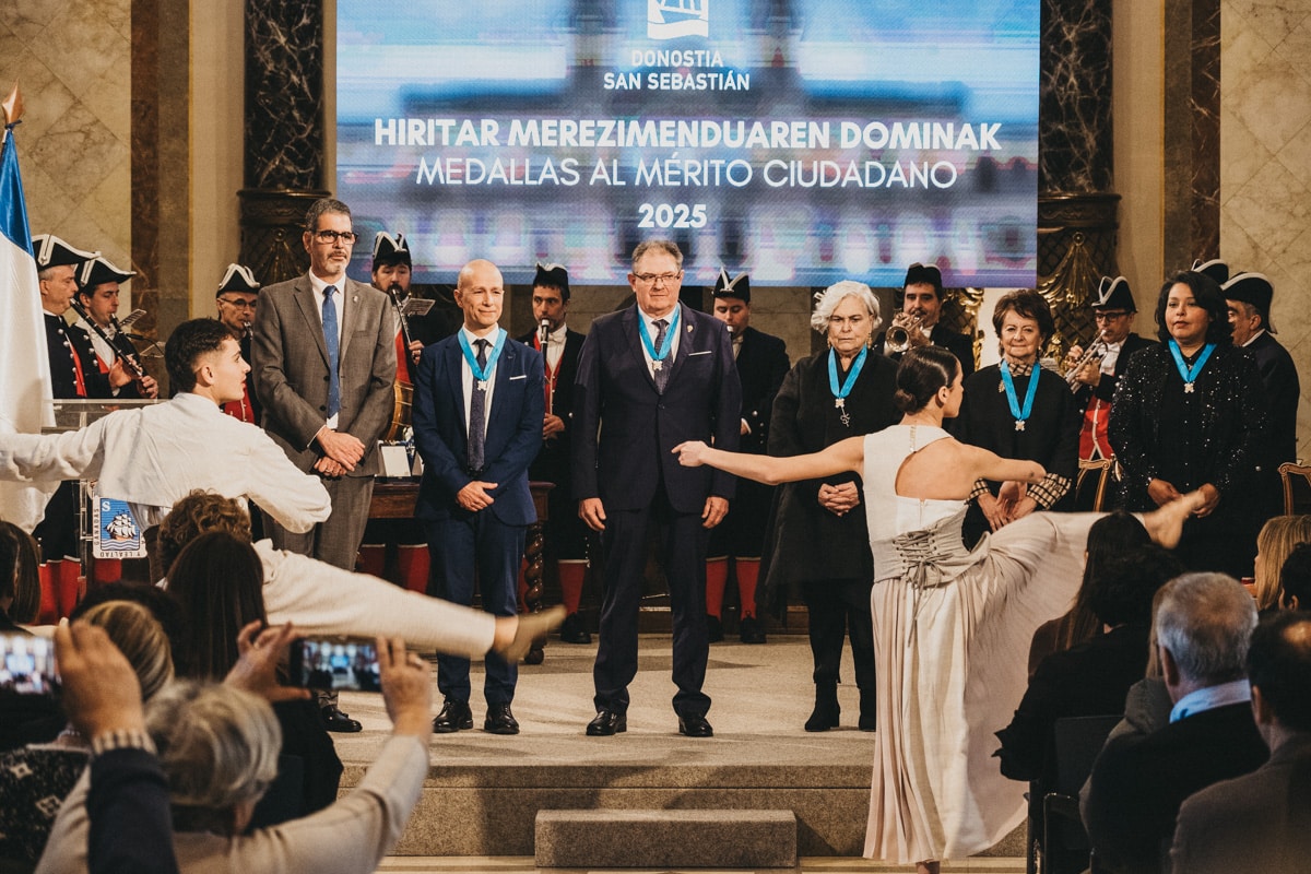 El Ayuntamiento de Donostia ha entregado esta mañana las Medallas al Mérito Ciudadano 2025. «Vuestro desempeño nos hace mejor como ciudad», ha expresado el alcalde Eneko Goia a la Asociación Mestiza, el Banco de Alimentos de Gipuzkoa, Contxu Uzkudun, Iñaki Almandoz y Radio San Sebastián, que han sido las entidades y personas reconocidas con este honor. (Próximamente más fotos)