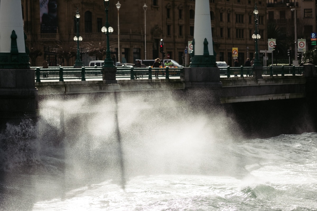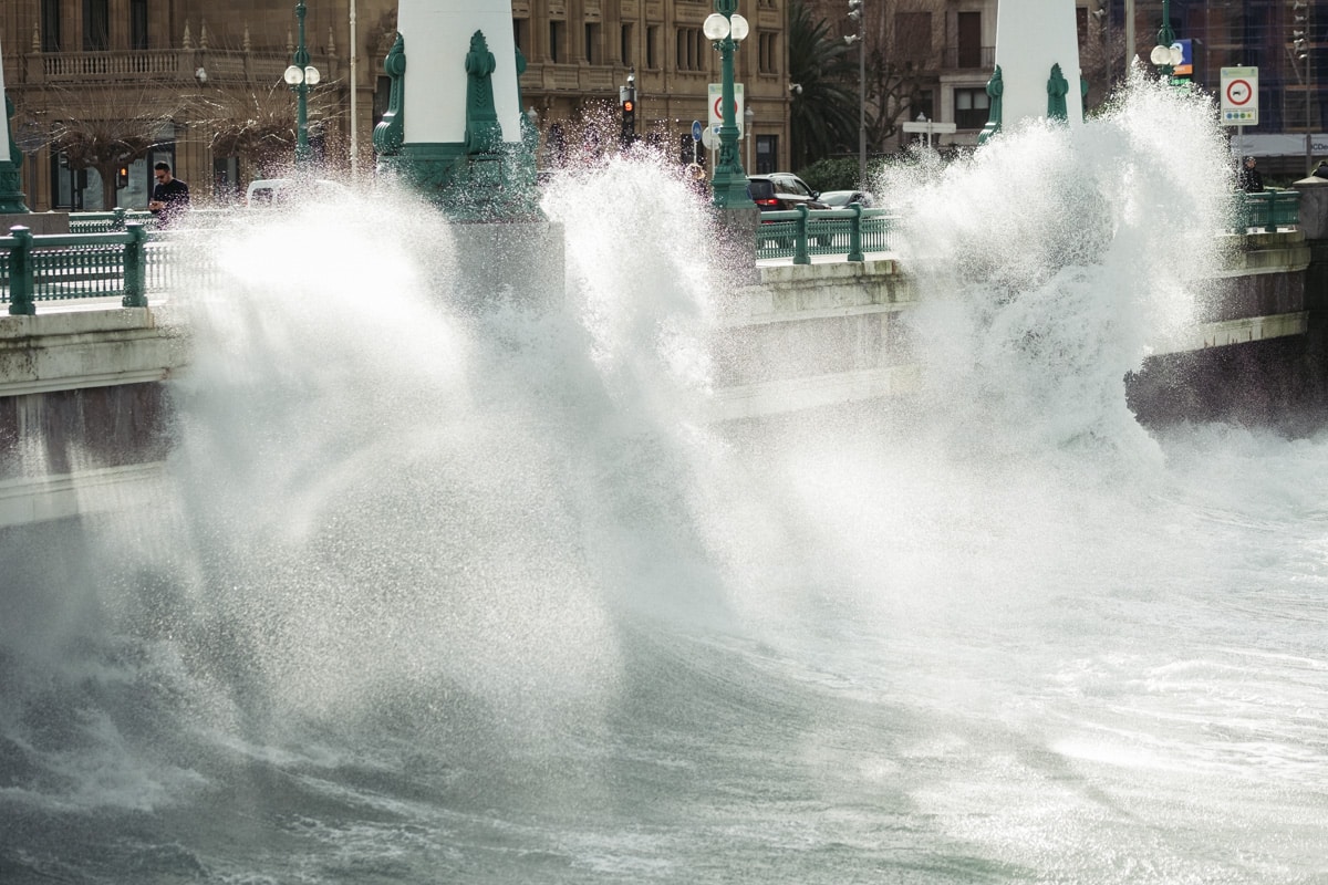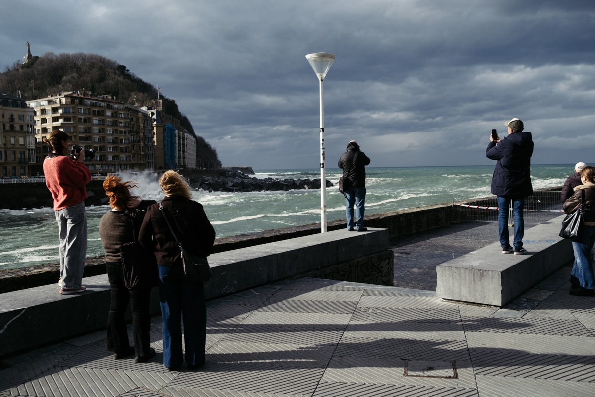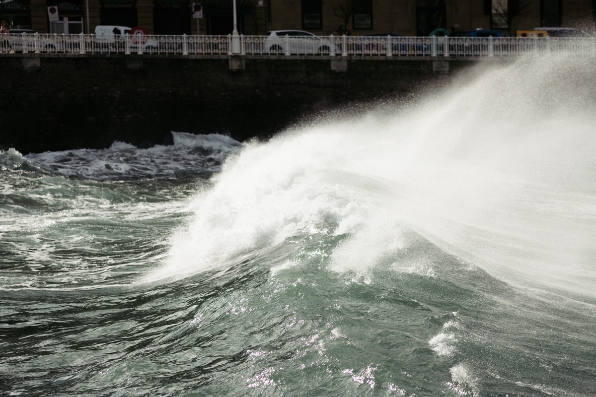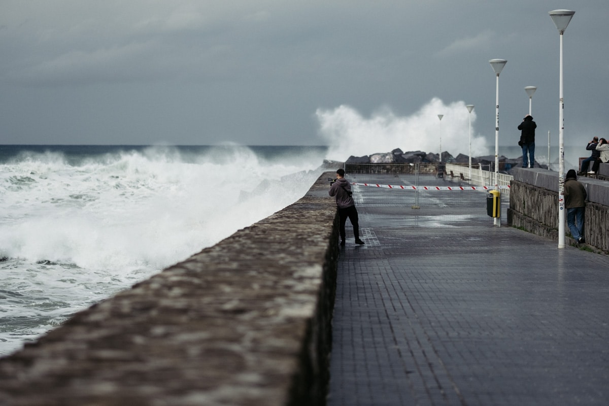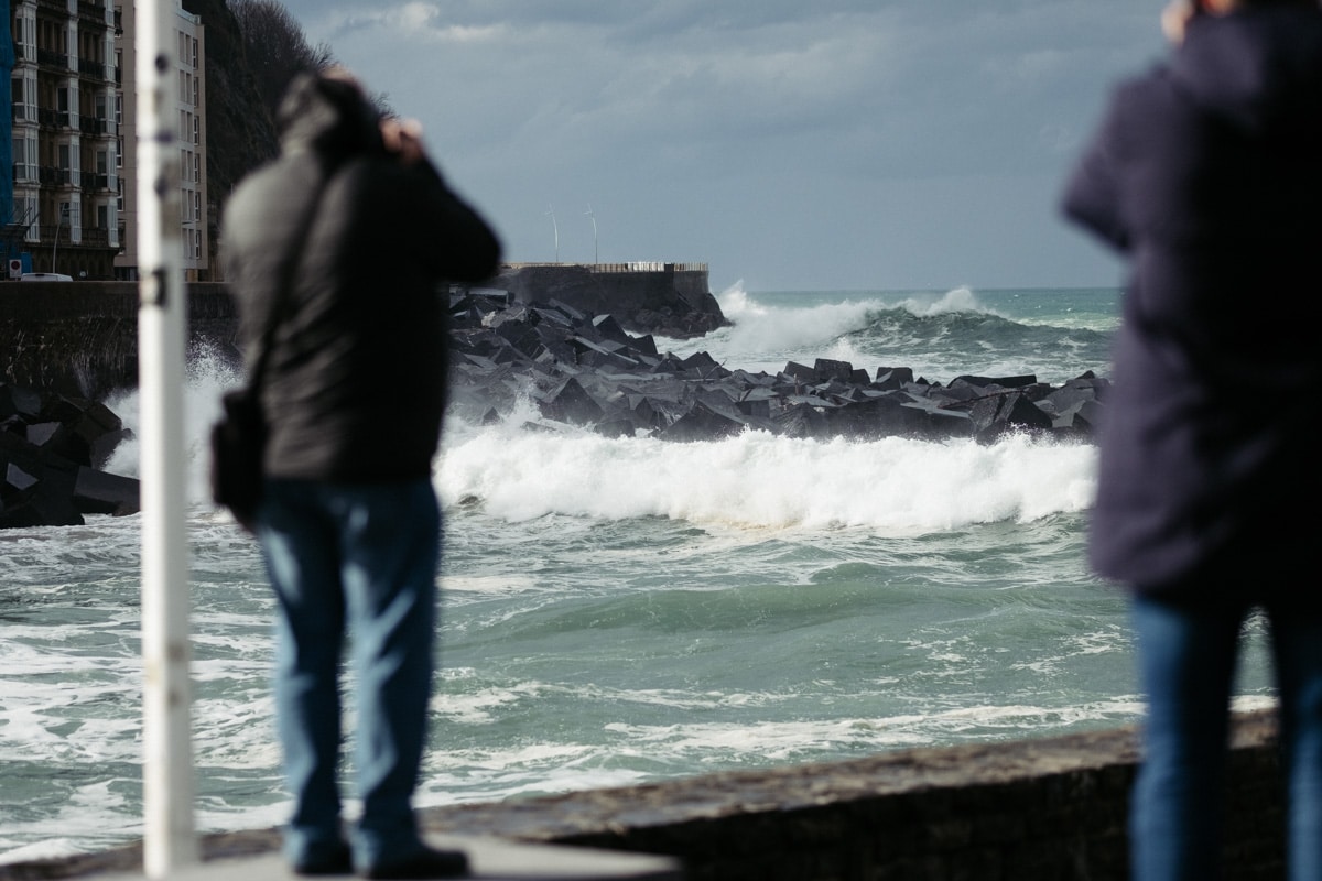 Con la Alerta Naranja activada, las olas han vuelto a ser parte del paisaje donostiarra este lunes y toda una atracción para quienes se han acercado a la costa. Mañana martes se mantiene la alerta y por ello tanto el Paseo Nuevo como el Paseo Leizaola (espigón de la Zurriola) y el Peine del Viento permanecerán cerrados.