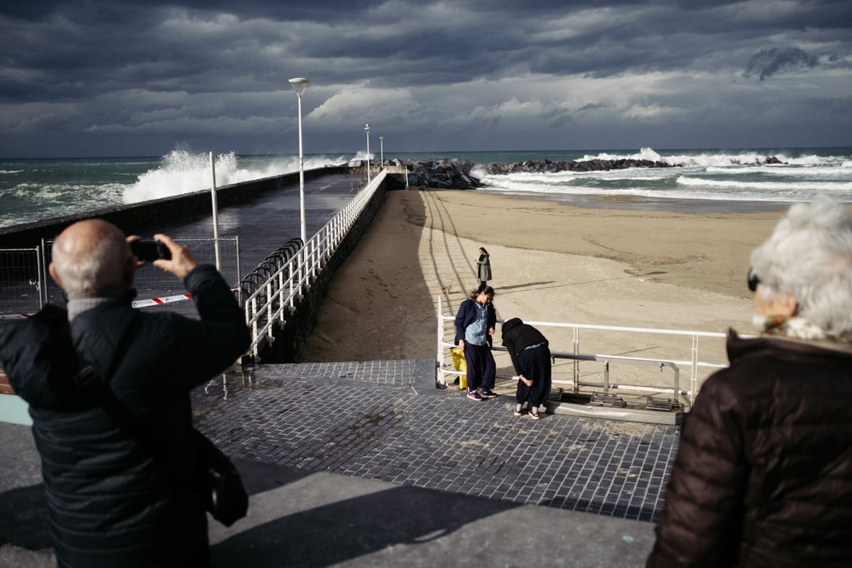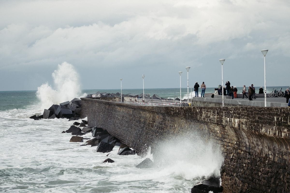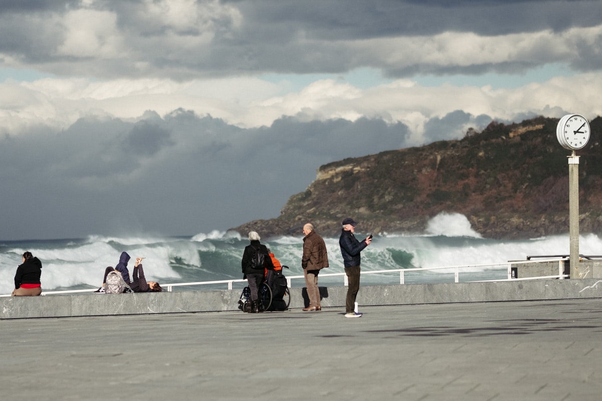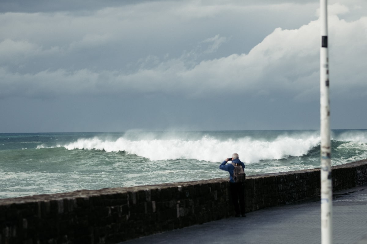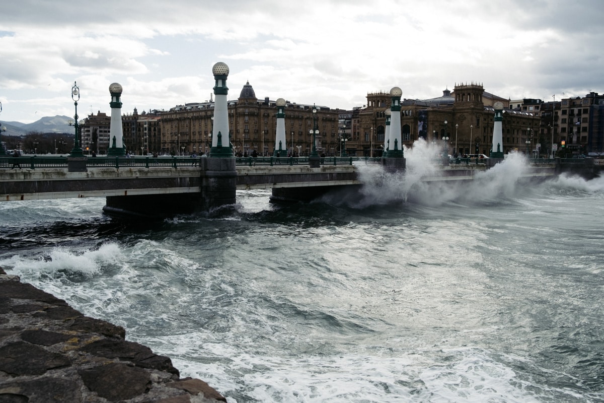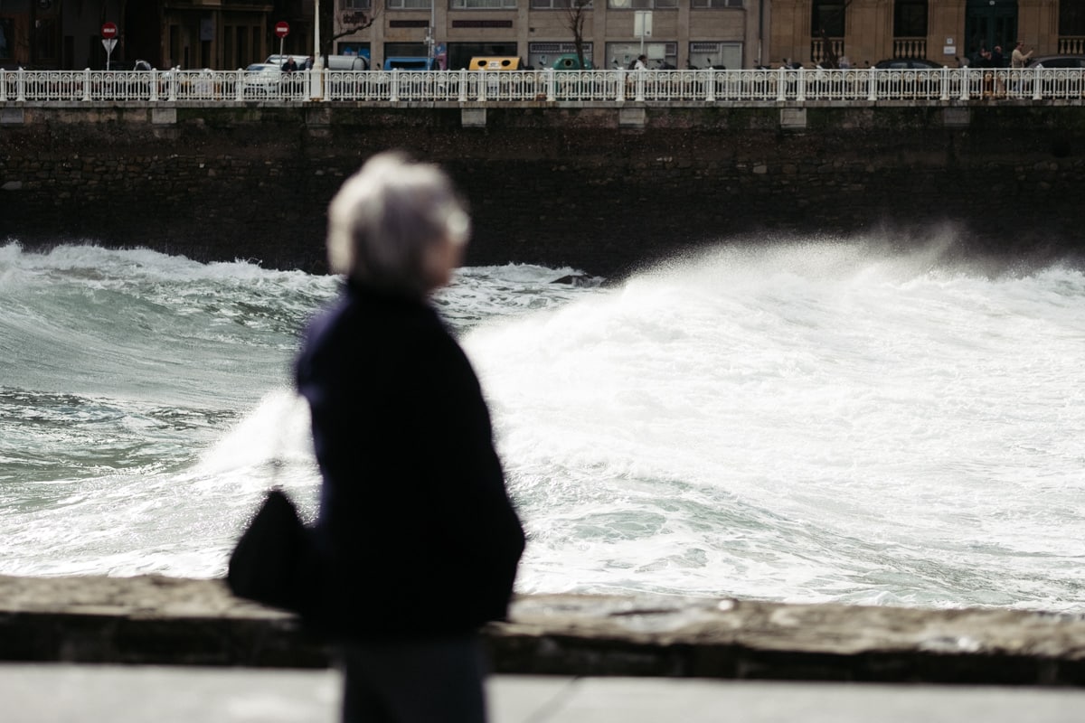Con la Alerta Naranja activada, las olas han vuelto a ser parte del paisaje donostiarra este lunes y toda una atracción para quienes se han acercado a la costa. Mañana martes se mantiene la alerta y por ello tanto el Paseo Nuevo como el Paseo Leizaola (espigón de la Zurriola) y el Peine del Viento permanecerán cerrados.