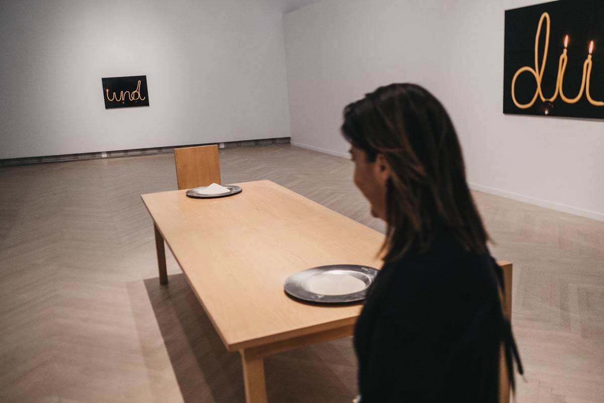 Tú y yo I, (1997) es una instalación que evoca la presencia de una ausencia, en un espacio para dos comensales inexistentes en diálogo mudo.
