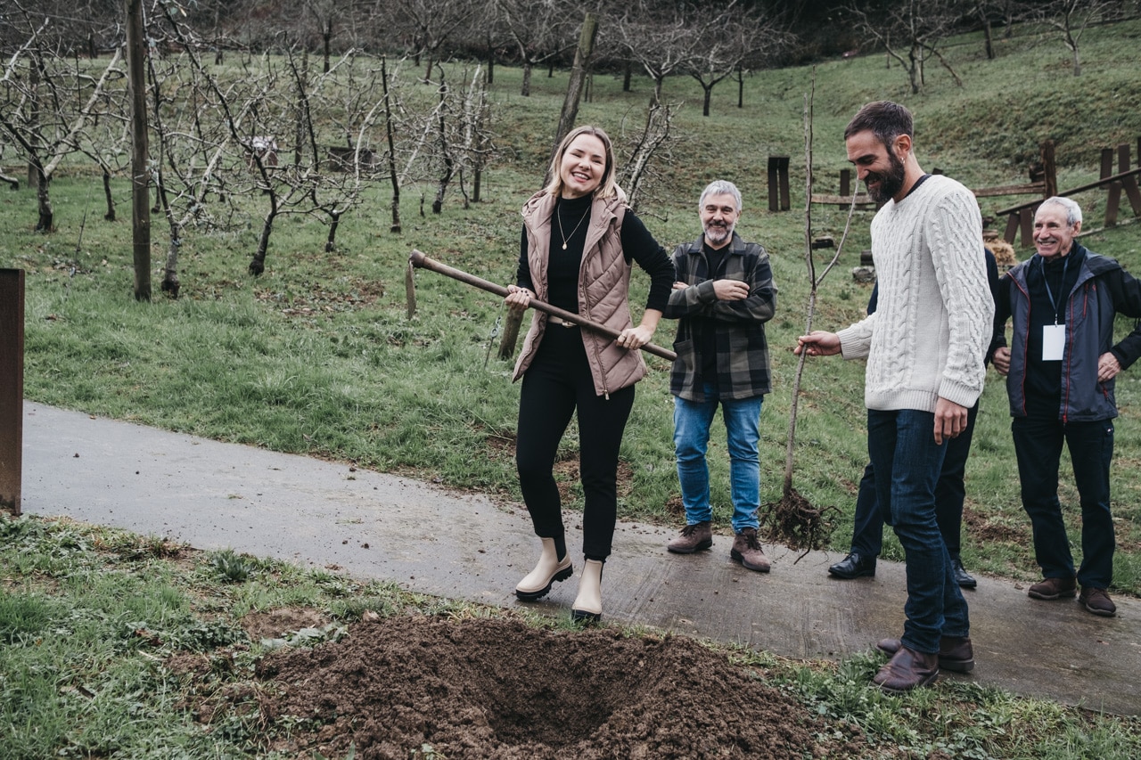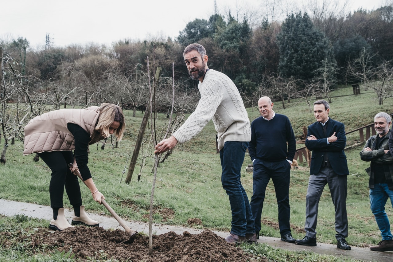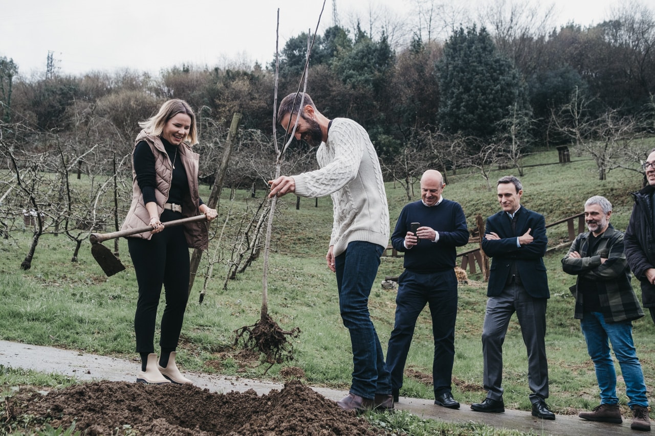 Antes de esta ceremonia, los dos protagonistas han plantado un manzano nuevo en el exterior de la Sagardoetxea (el centro de interpretación de la sidra) en Astigarraga, donde previamente se ha celebrado una rueda de prensa para presentar los principales datos de la temporada.