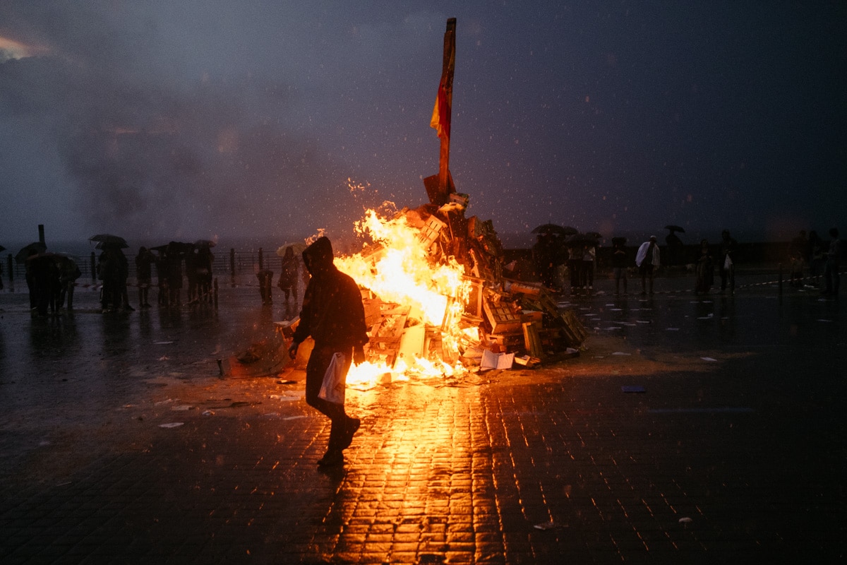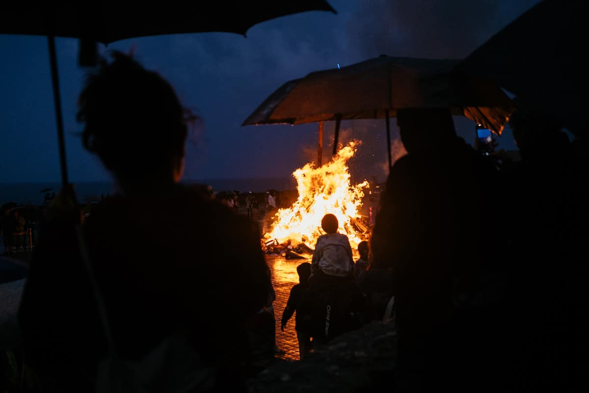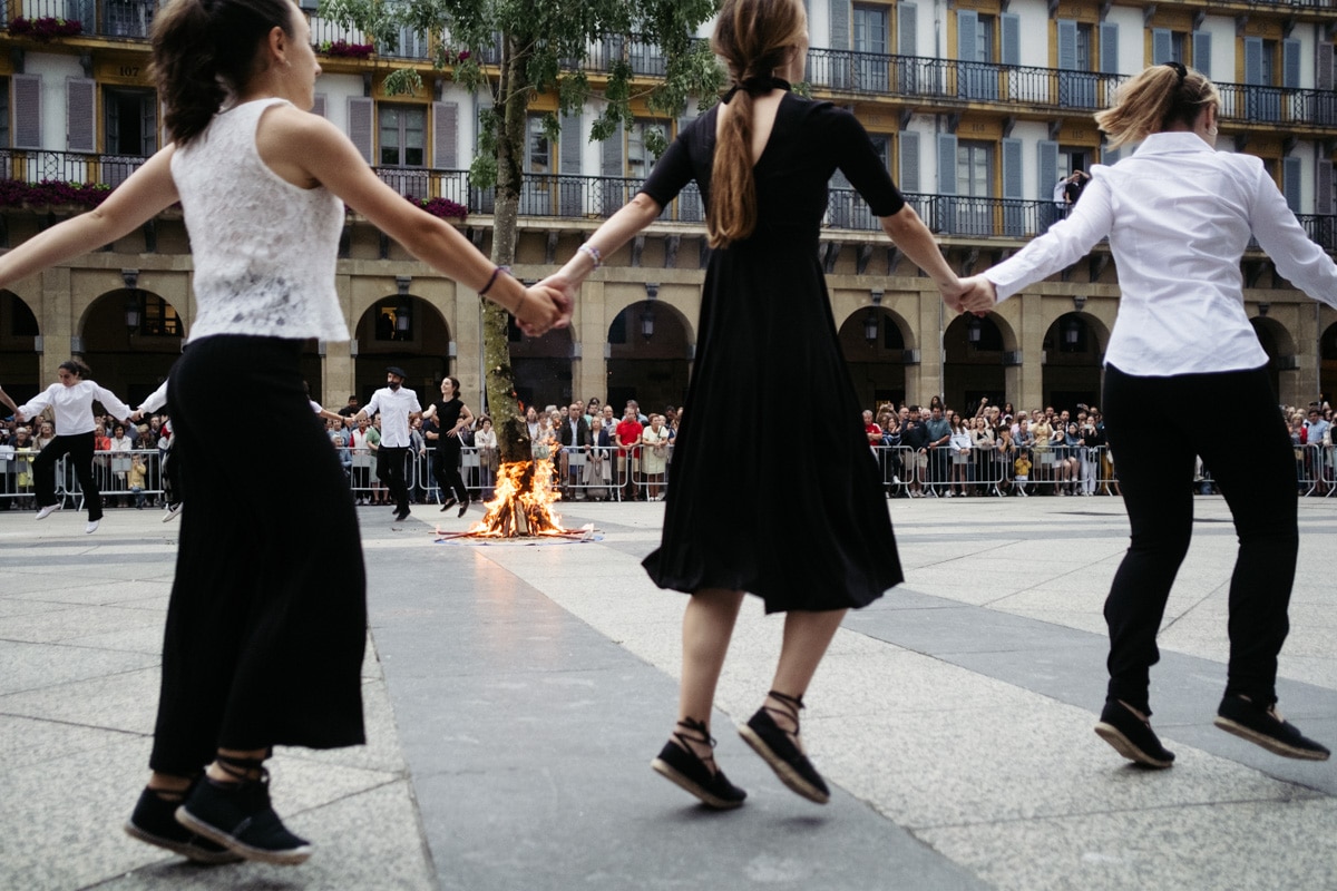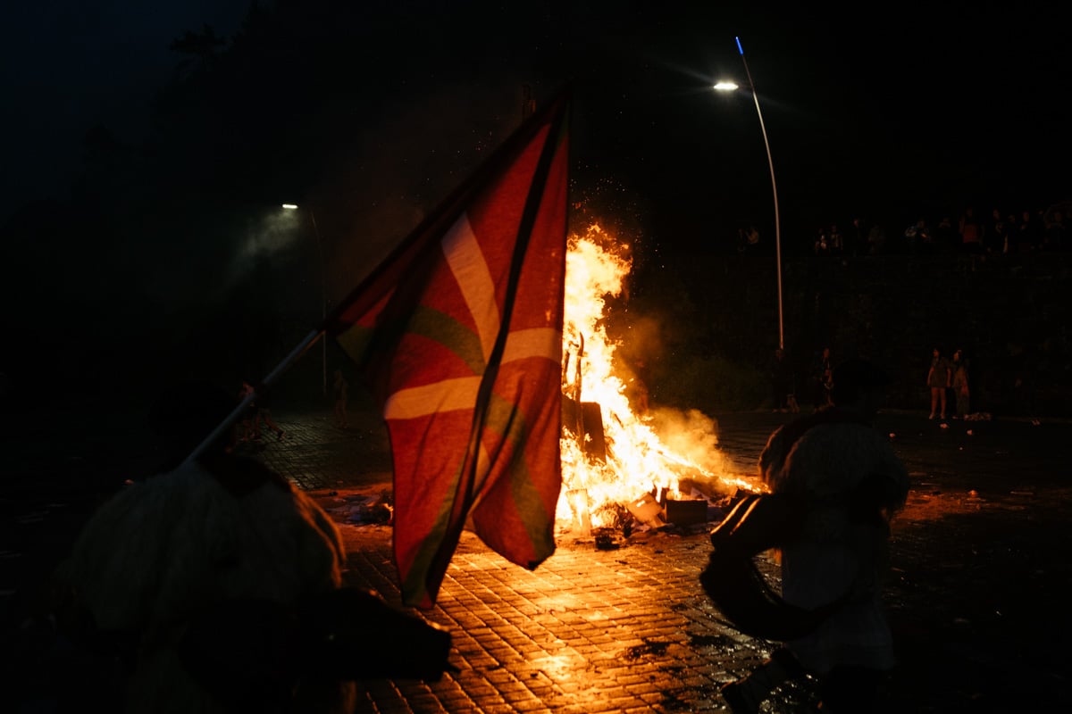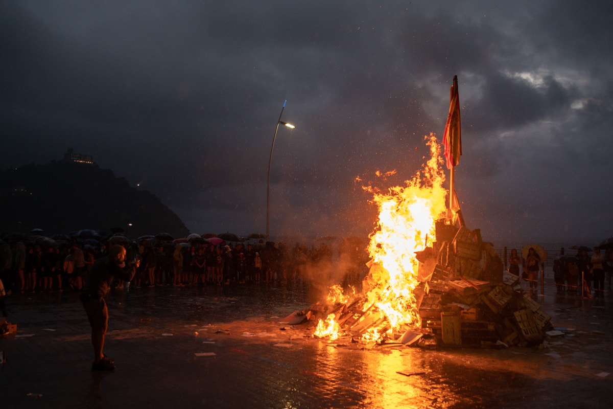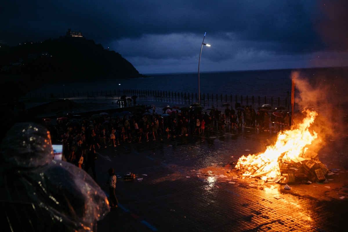 Estaba prevista y cayó como condimento molesto para el fuego, pero a la vez ideal para el akelarre. Las hogueras de San Juan ardieron como corresponde aunque terminaron antes de tiempo en muchos casos. Mejor suerte corrió la esku dantza de la plaza de la Constitución, que empieza antes, y dio tiempo a las autoridades para el rito.