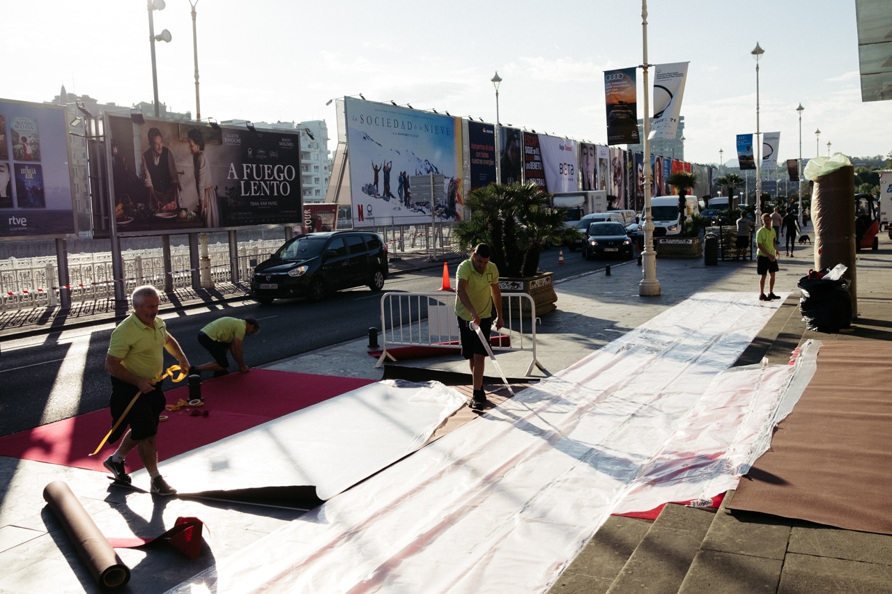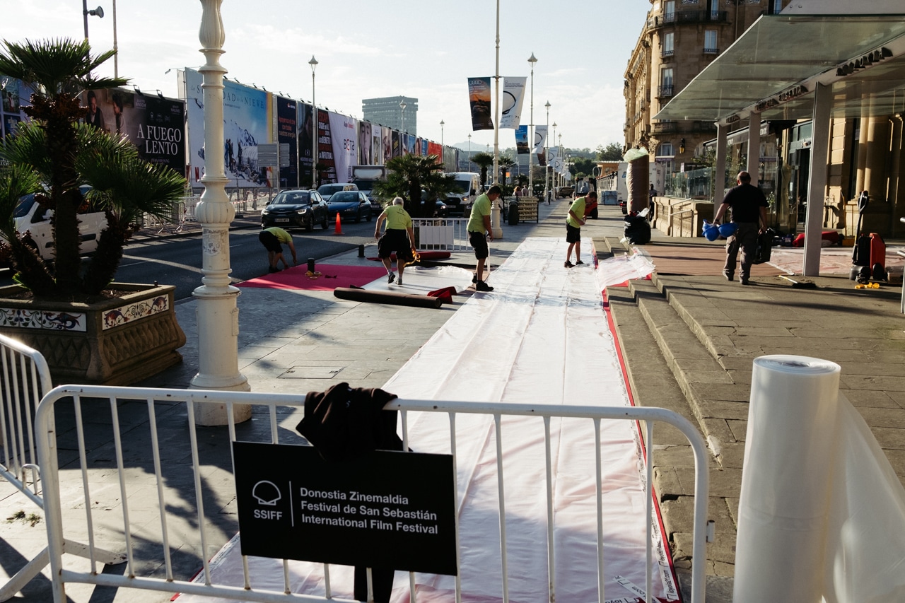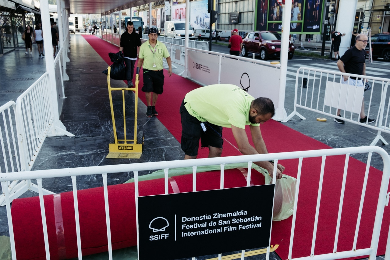 Desplegando la alfombra roja del 71 Zinemaldi, que empezará el viernes. Fotos: Santiago Farizano
