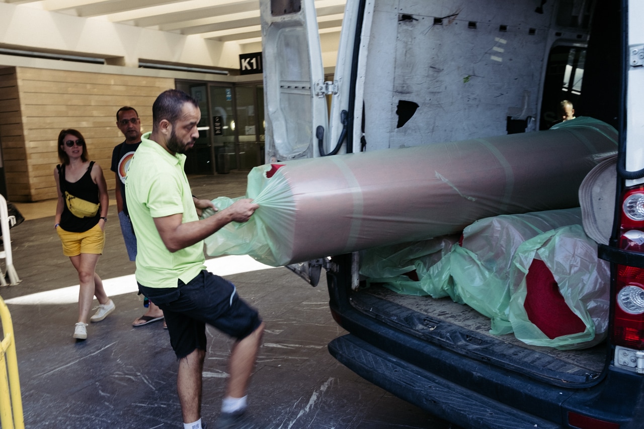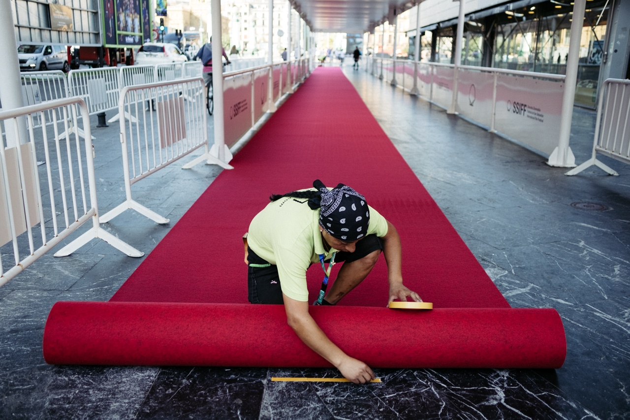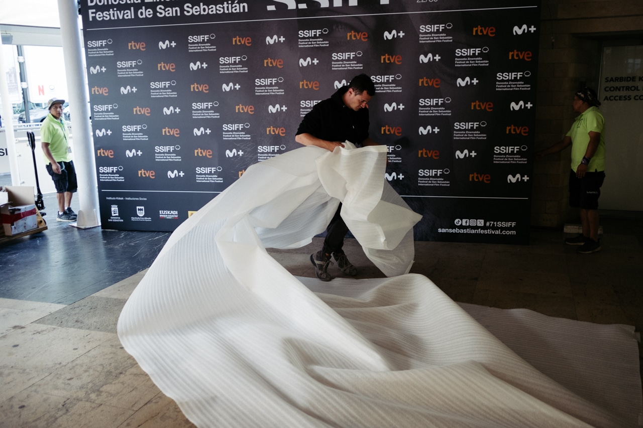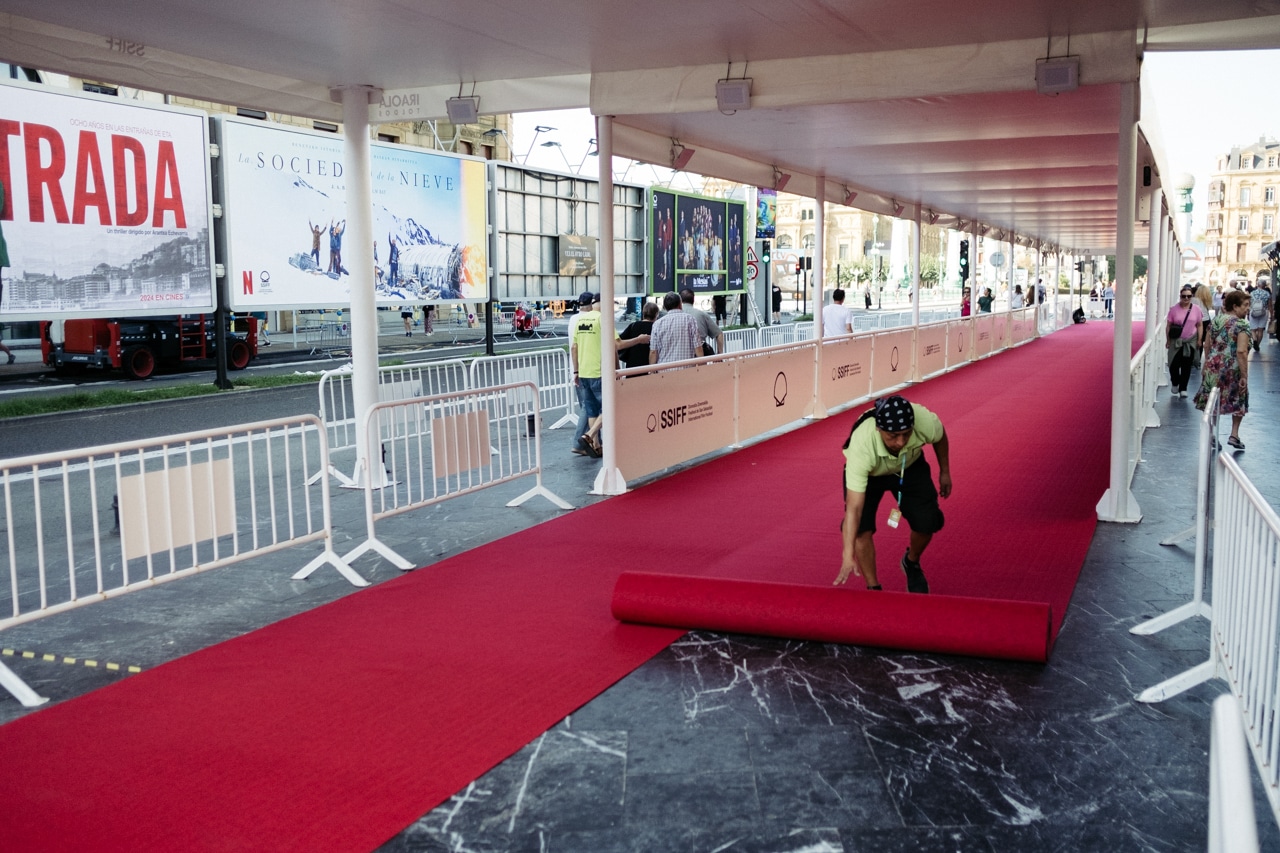 Desplegando la alfombra roja del 71 Zinemaldi, que empezará el viernes. Fotos: Santiago Farizano