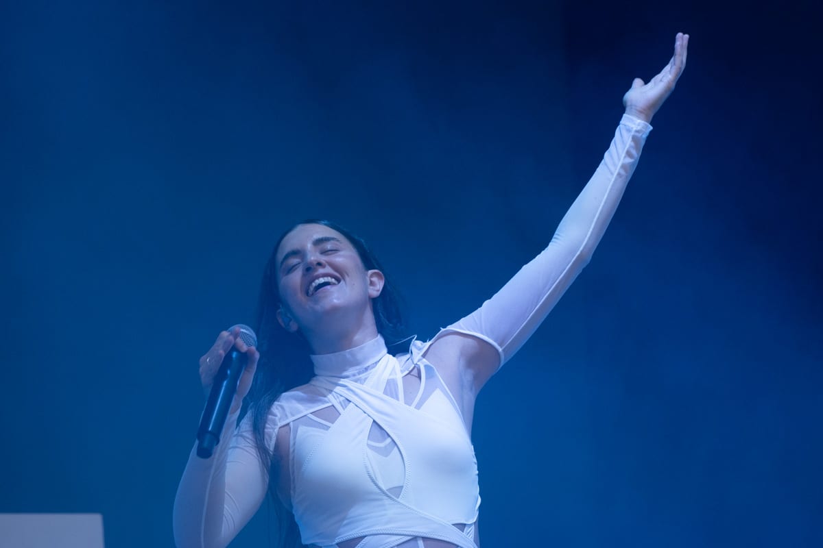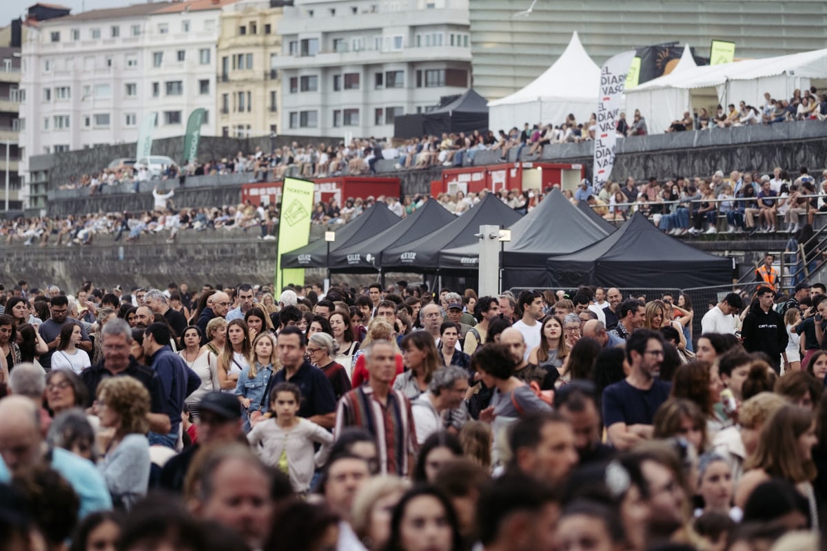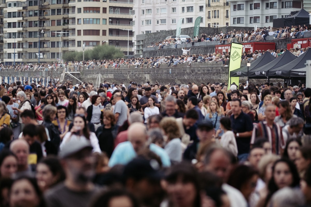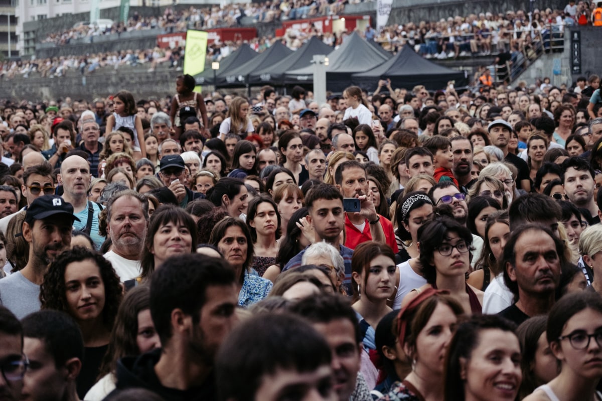 Izaro fue la encargada de abrir este miércoles el escenario Keler de la Zurriola con la gira de su cuarto disco, ‘cerodenero’, en el que recupera sonidos pop, folk, y música electrónica. El público estaba rendido desde que pisó el escenario. Imágenes de la primera jornada multitudinaria del Jazzaldia.