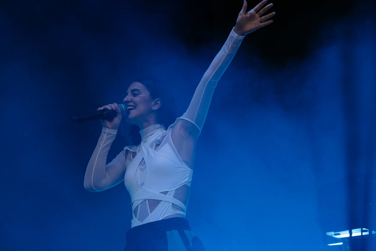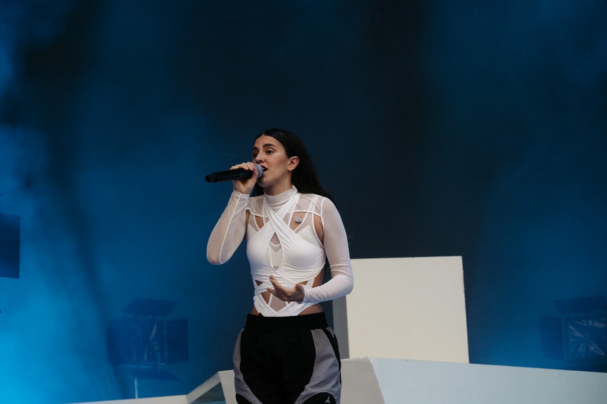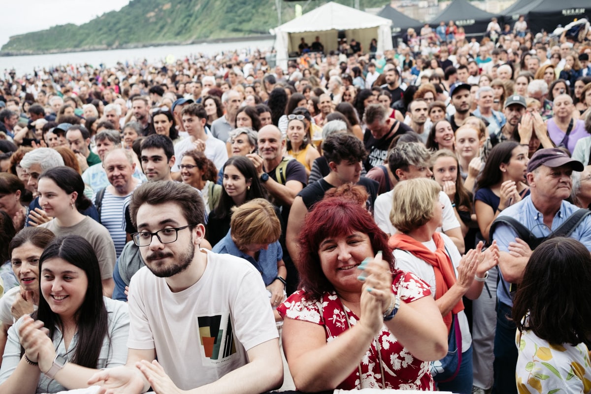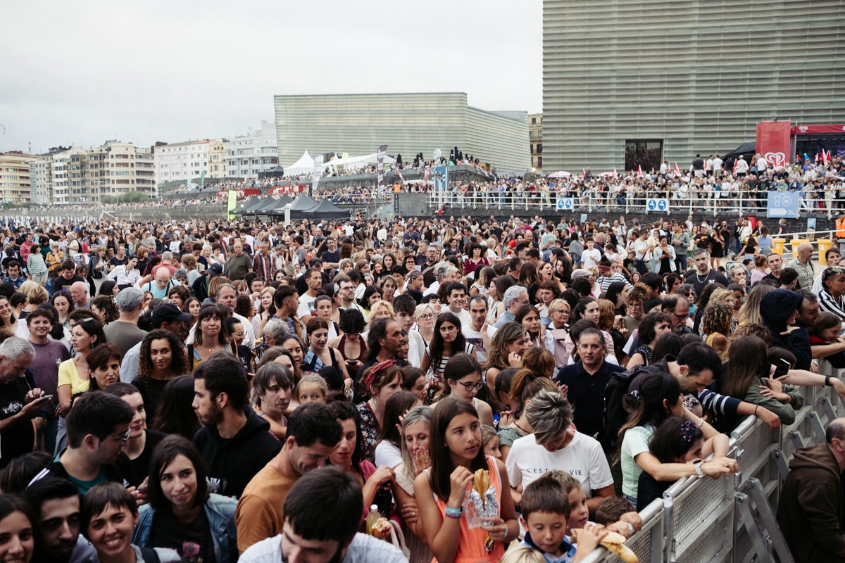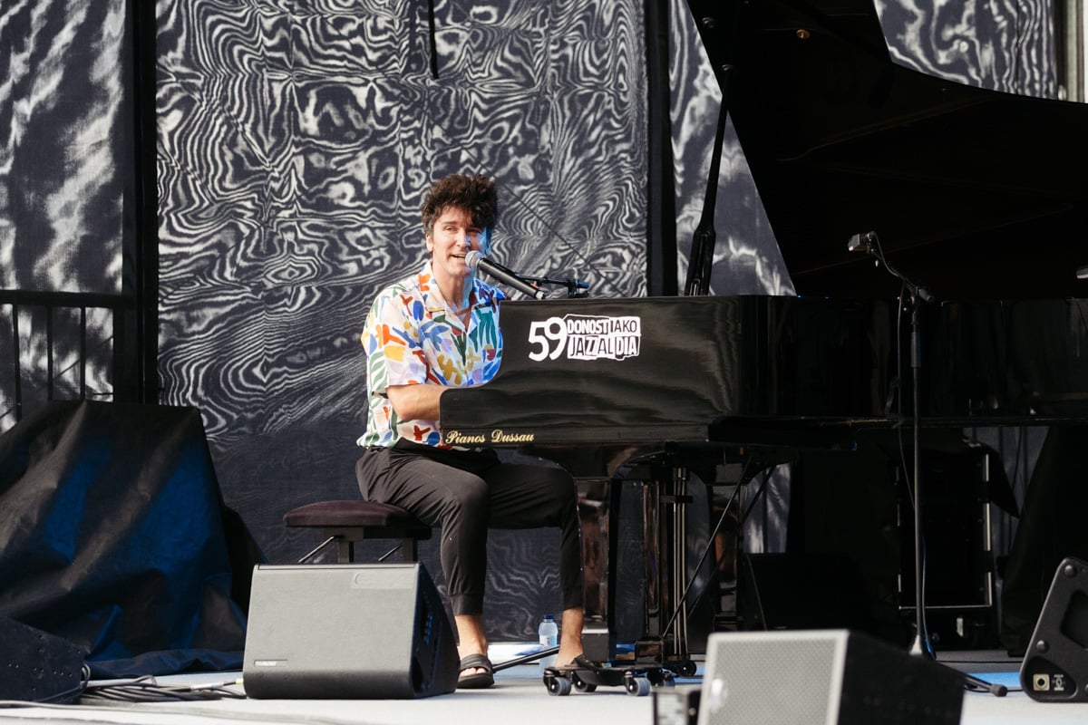 Izaro fue la encargada de abrir este miércoles el escenario Keler de la Zurriola con la gira de su cuarto disco, ‘cerodenero’, en el que recupera sonidos pop, folk, y música electrónica. El público estaba rendido desde que pisó el escenario. Imágenes de la primera jornada multitudinaria del Jazzaldia.
