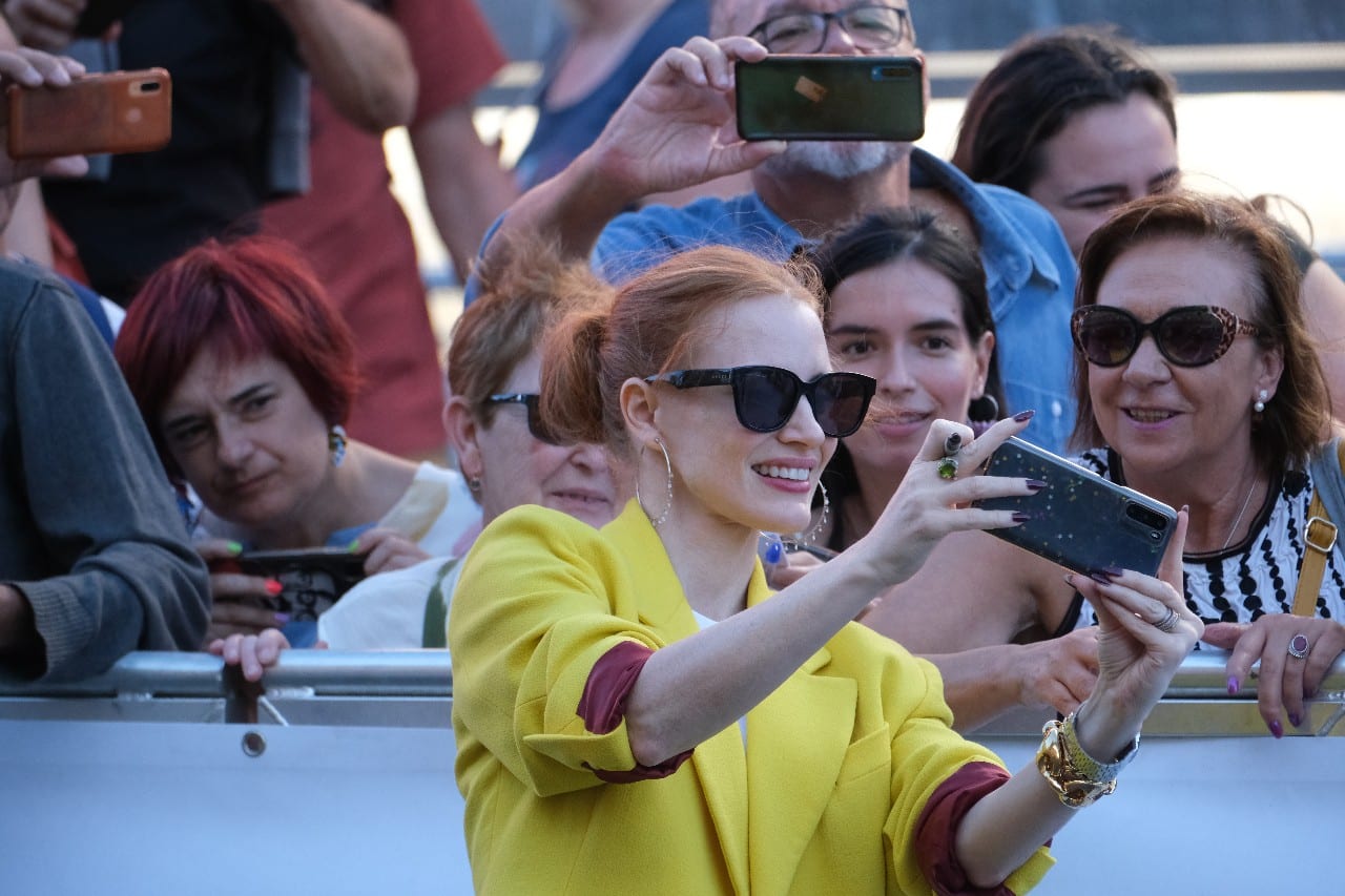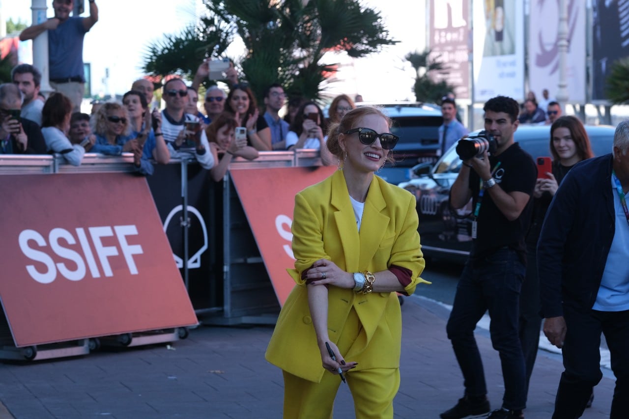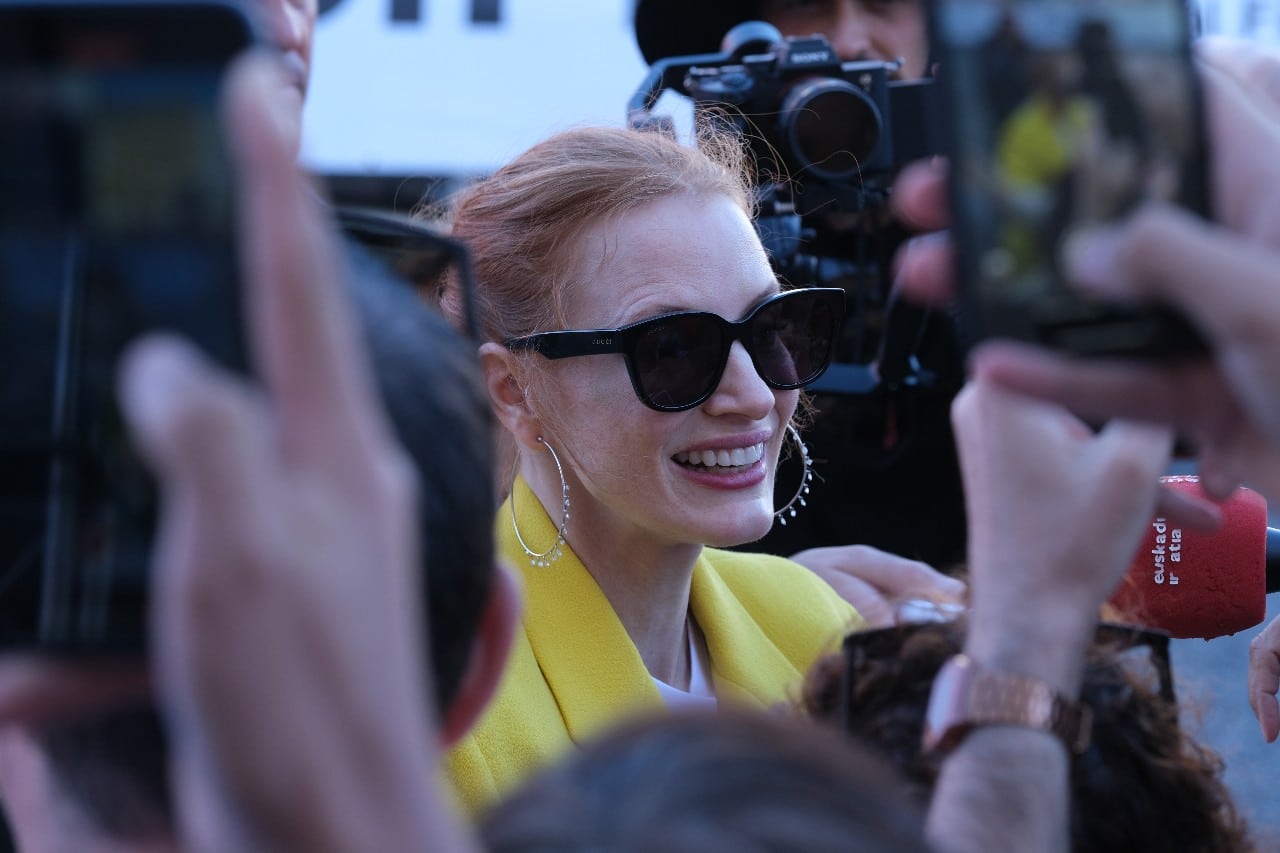 La actriz y productora estadounidense Jessica Chastain ha llegado hoy al hotel María Cristina de Donostia y es sin duda una de las presencias más glamourosas de este Zinemaldia un tanto perjudicado por la huelga en de actores y guionistas en Hollywood. Pero Jessica ha logrado que su aparición haya sido una fiesta: se ha llegado a abrazar con los fans y ha desplegado todo su encanto y muchas sonrisas.