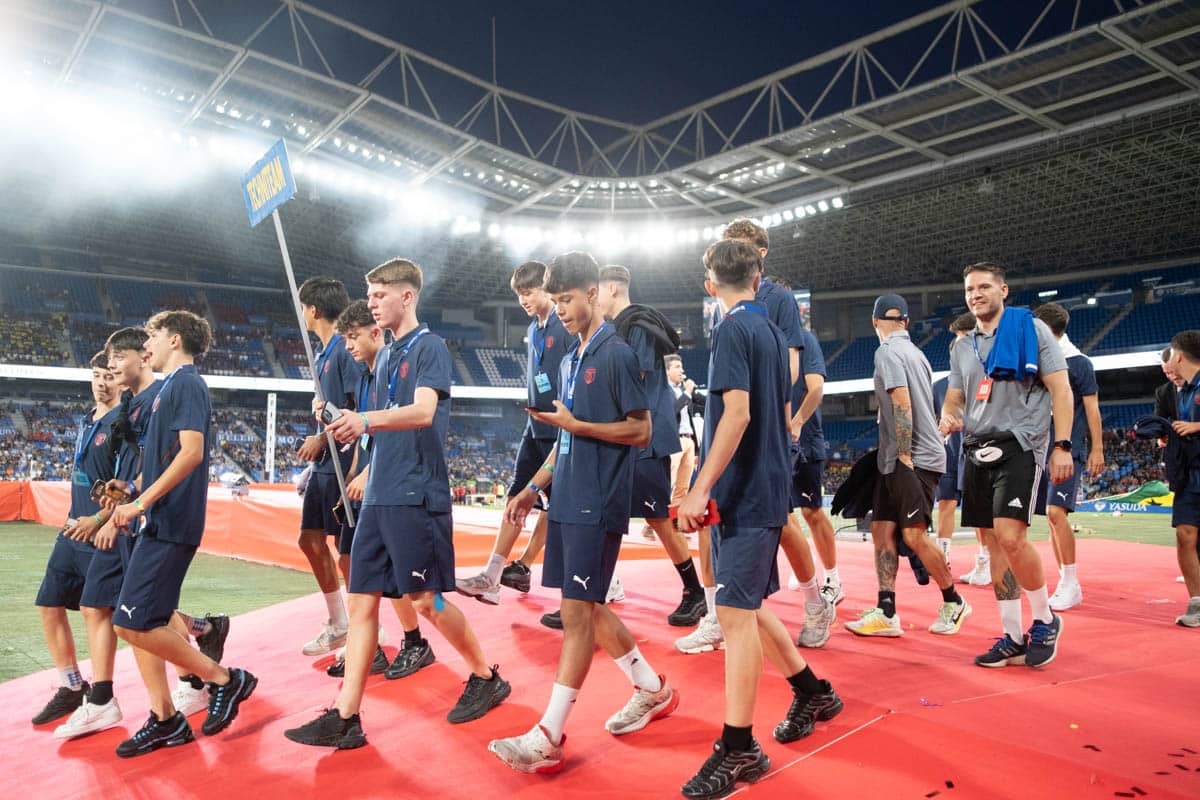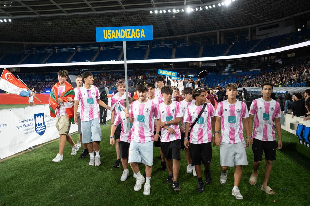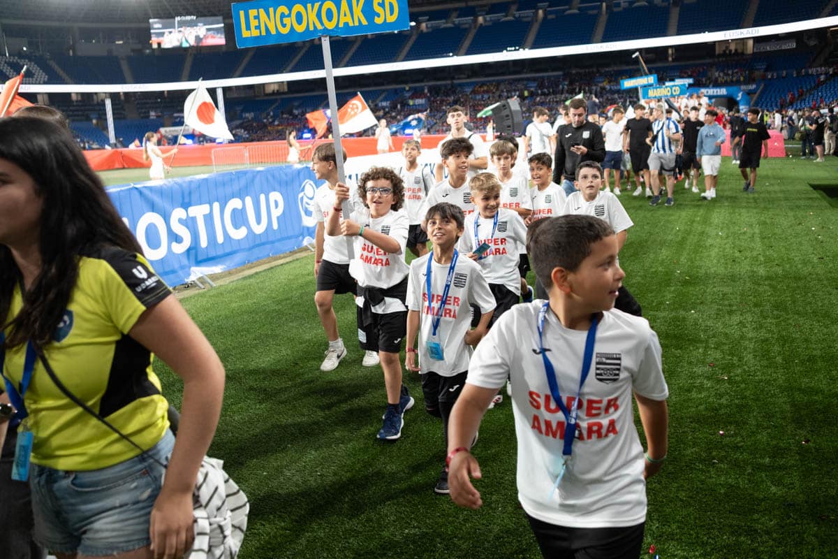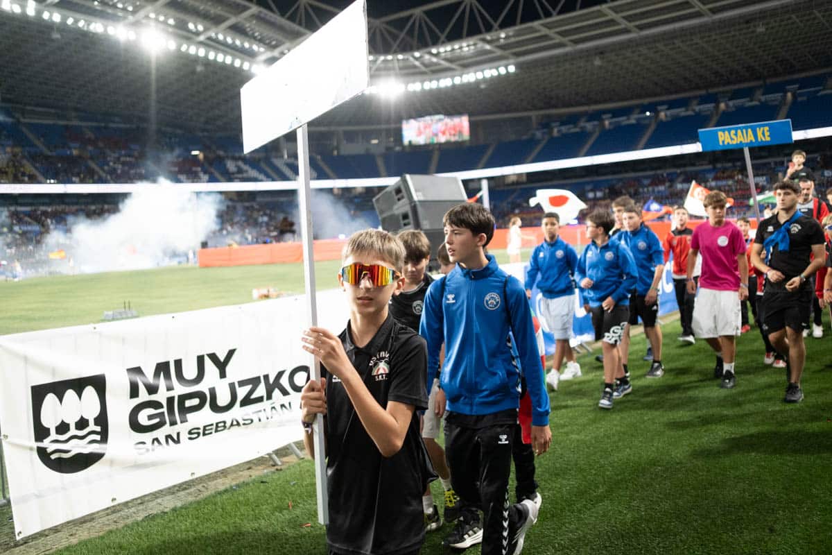 La Donosti Cup 2025 ha arrancado este martes por la noche con una espectacular ceremonia de inauguración en el Reale Arena. El tradicional desfile internacional de equipos, las actuaciones musicales -con Leire Martínez como invitada especial- y los efectos de luz y pirotecnia marcaron el inicio de la edición más internacional del torneo, que reunirá a 900 equipos de 30 países hasta el domingo 13 de julio.