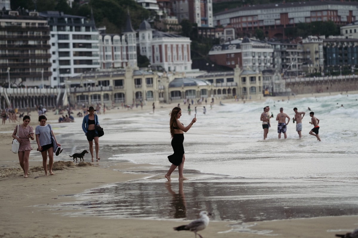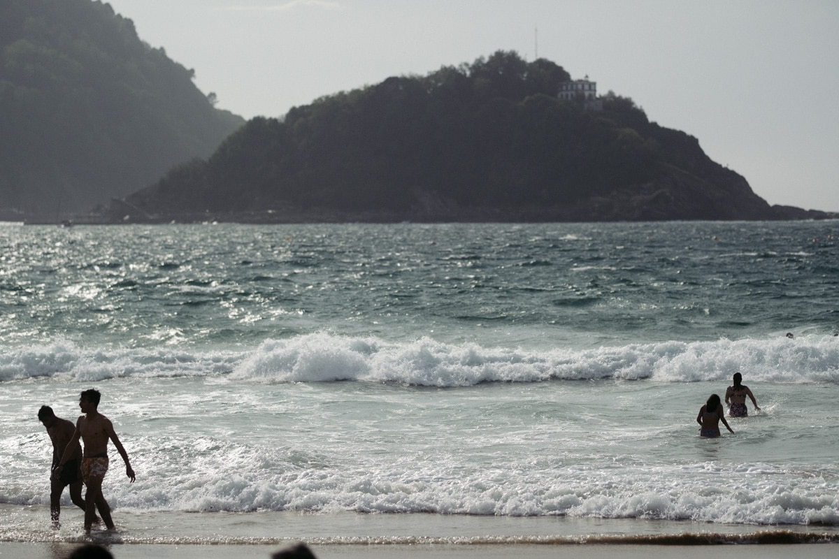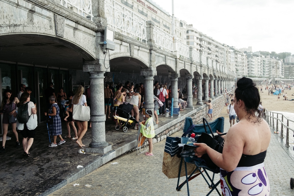 En la Zurriola fue más patente la galerna anunciada para Donostia, que se quedó en galernilla, y que apenas afectó a los presentes en Ondarreta y la Concha. Lo cierto es que los tres arenales estaban llenos pese al Aviso Amarillo anunciado. En una tarde muy inestable sí hizo aparición la tormenta, aunque breve, y también cayó granizo por unos segundos.