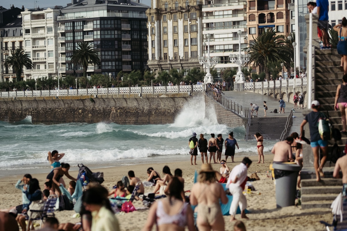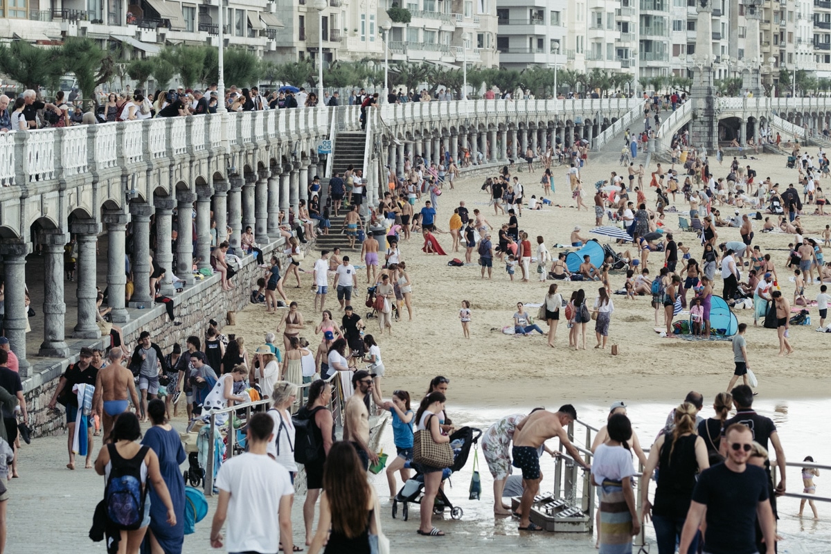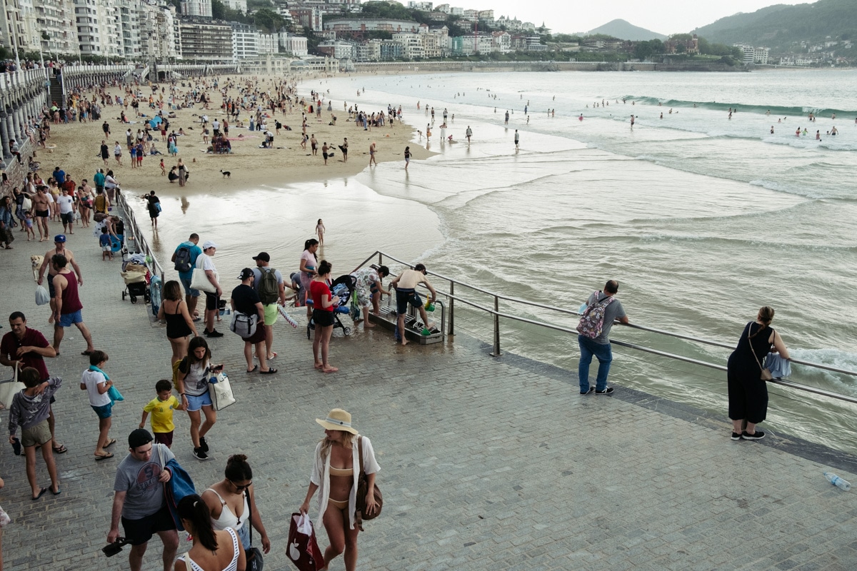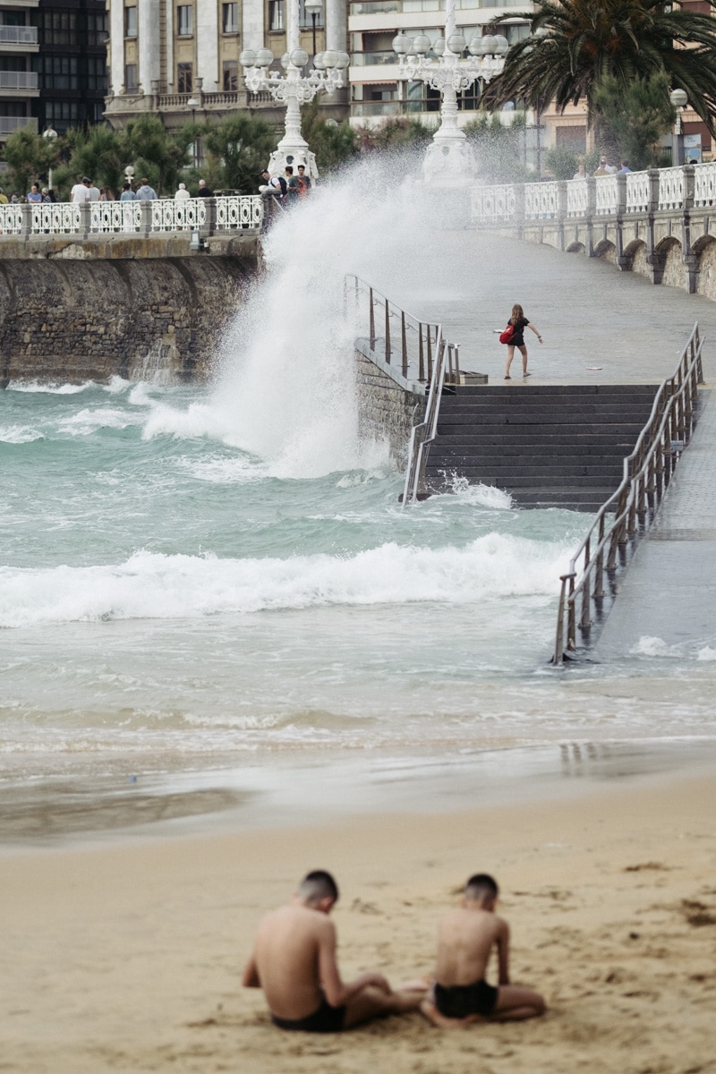 En la Zurriola fue más patente la galerna anunciada para Donostia, que se quedó en galernilla, y que apenas afectó a los presentes en Ondarreta y la Concha. Lo cierto es que los tres arenales estaban llenos pese al Aviso Amarillo anunciado. En una tarde muy inestable sí hizo aparición la tormenta, aunque breve, y también cayó granizo por unos segundos.