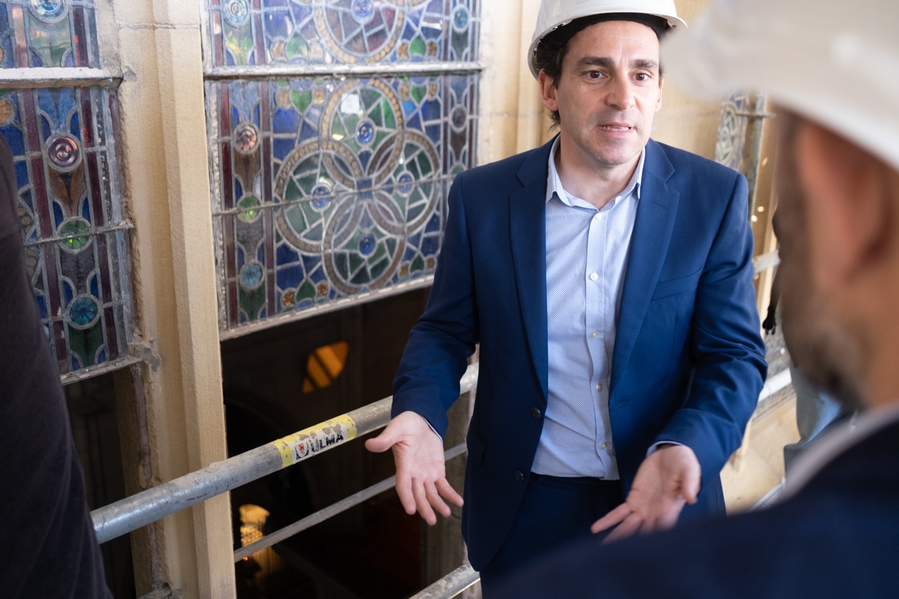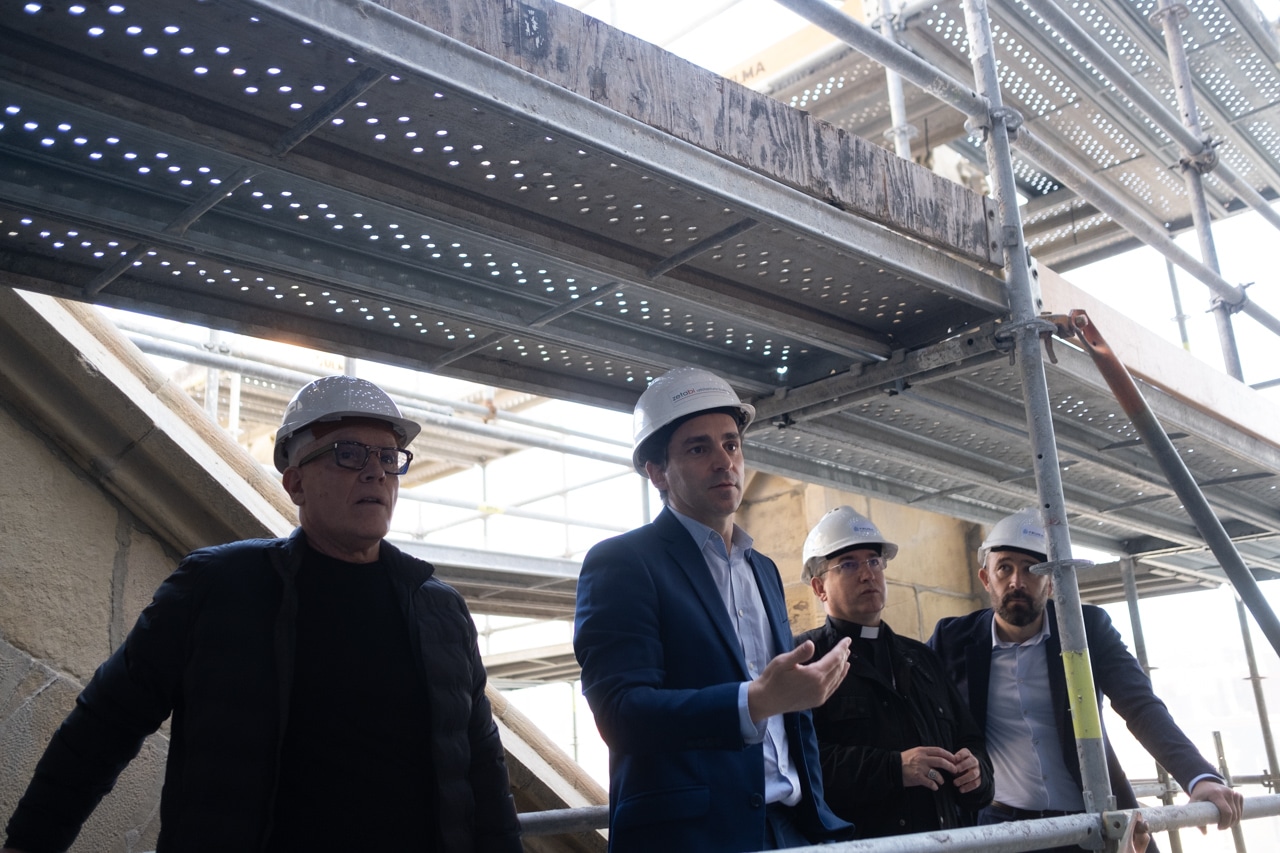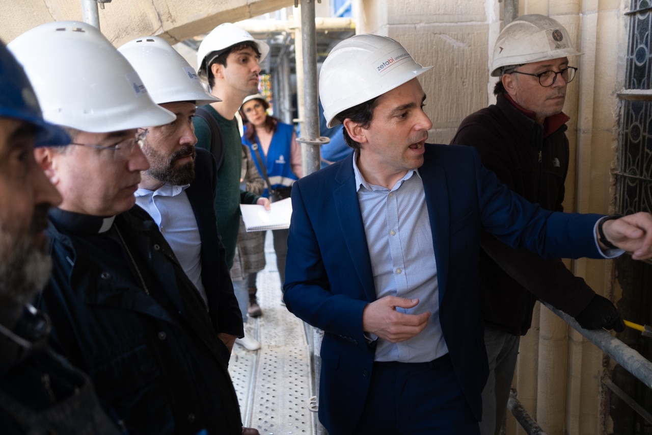 El delegado del Gobierno, Denis Itxaso, ha visitado hoy las obras de la segunda fase de la recuperación de la Catedral del Buen Pastor junto al obispo de San Sebastián, Fernando Prado. “La previsión”, ha anunciado Itxaso, “es que esta segunda fase de la restauración de la fachada Este concluya a finales de verano. El Gobierno central ha destinado ya más de 2,44 millones de euros a la restauración de esta catedral. Una financiación procedente del Programa 1,5% Cultural del Ministerio de Transportes, Movilidad y Agenda Urbana.