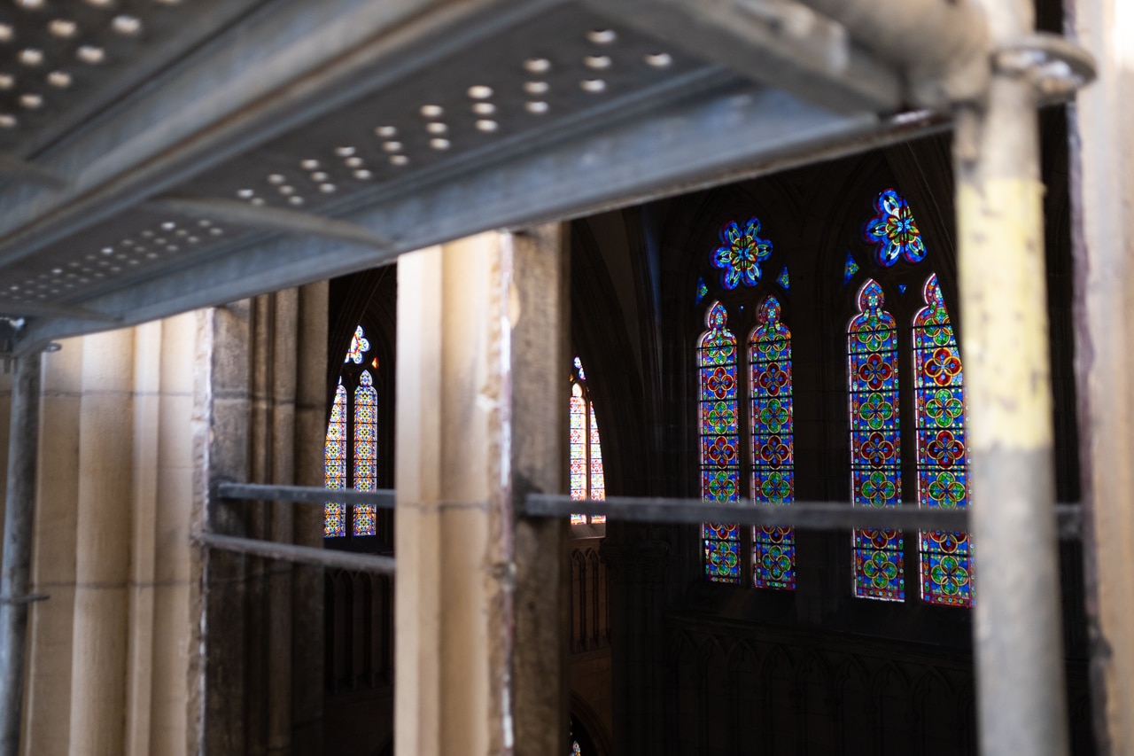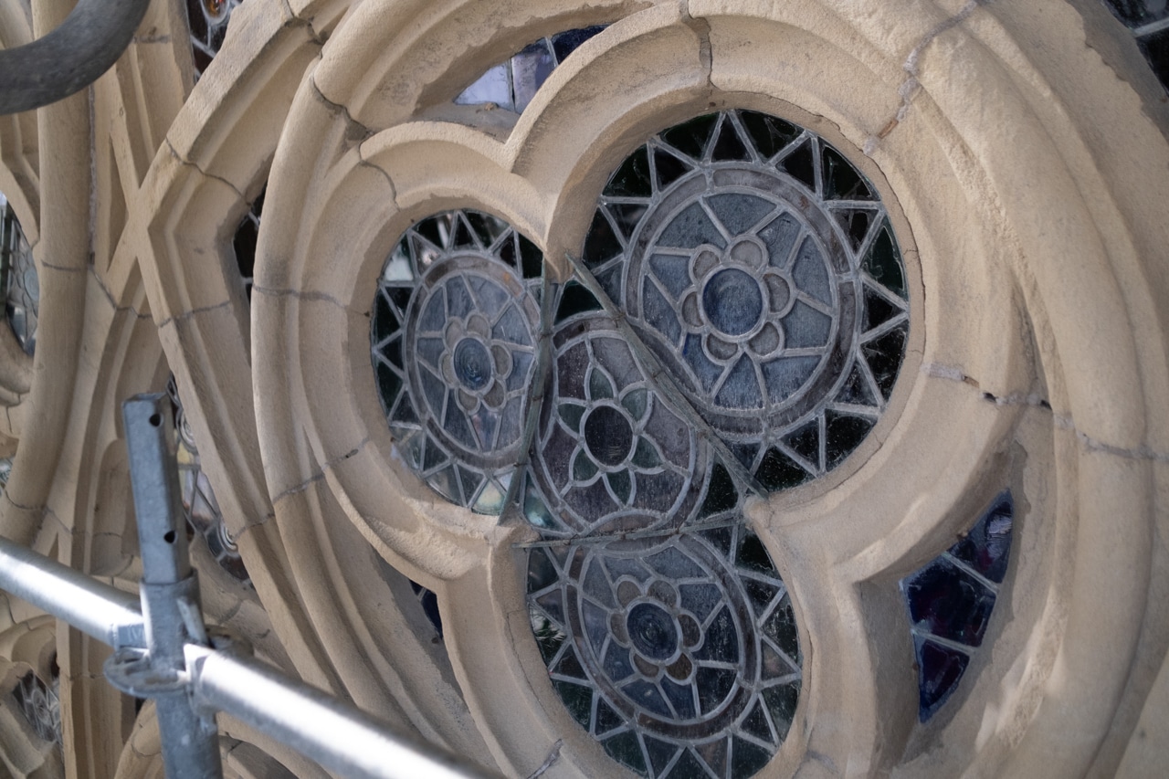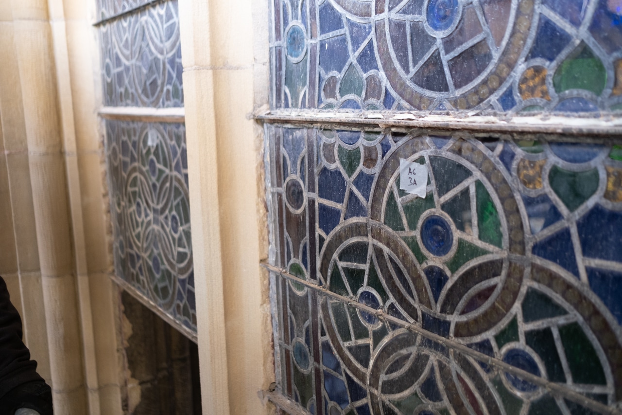 Se han desmontado para trasladarlas al taller, donde se recuperará su planimetría, se limpiarán y se restaurarán todas las soldaduras de estaño en mal estado. Finalmente se recolocarán en su posición original, protegiéndolas con vidrios isotérmicos.