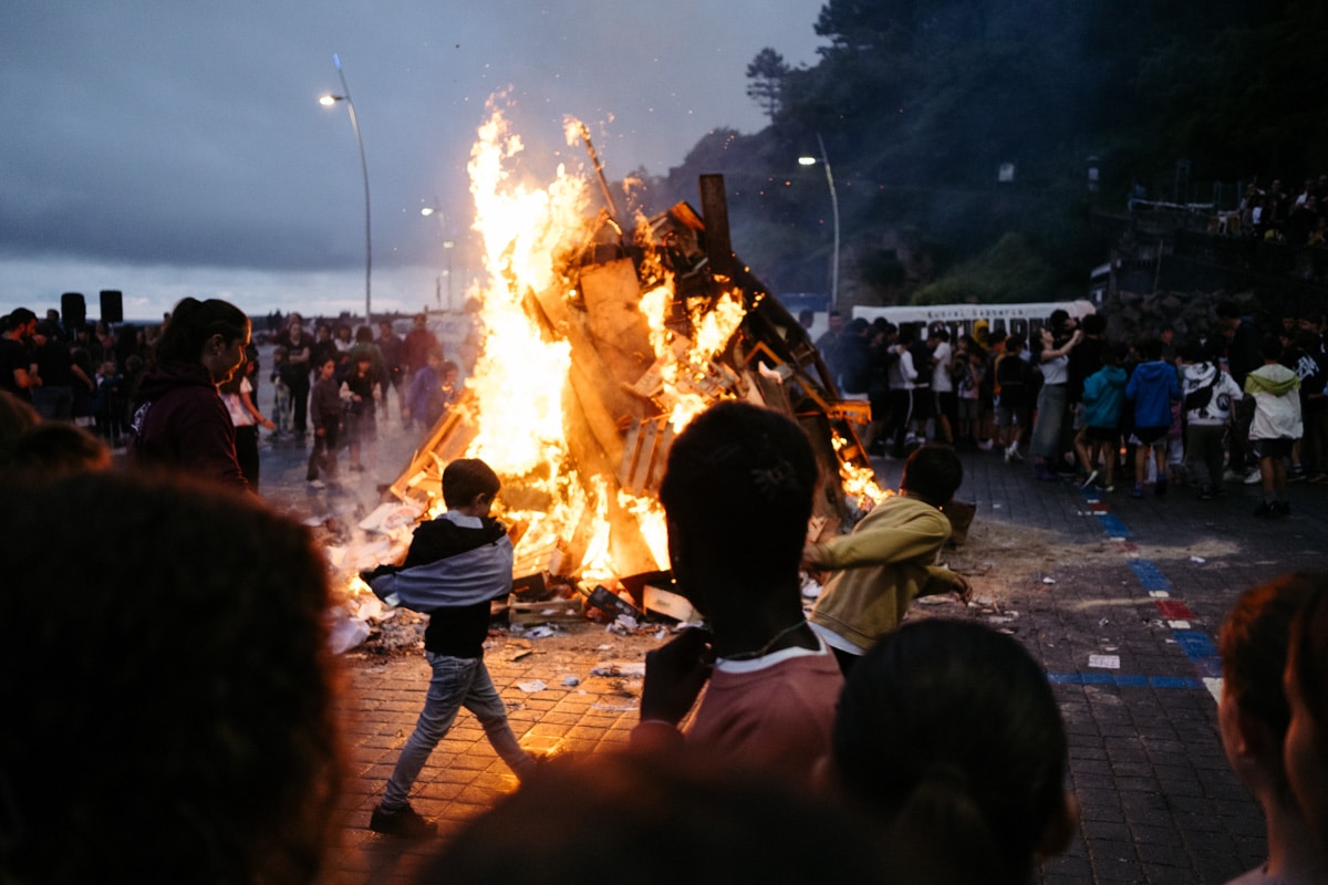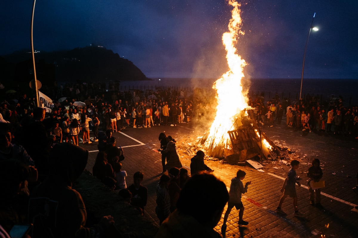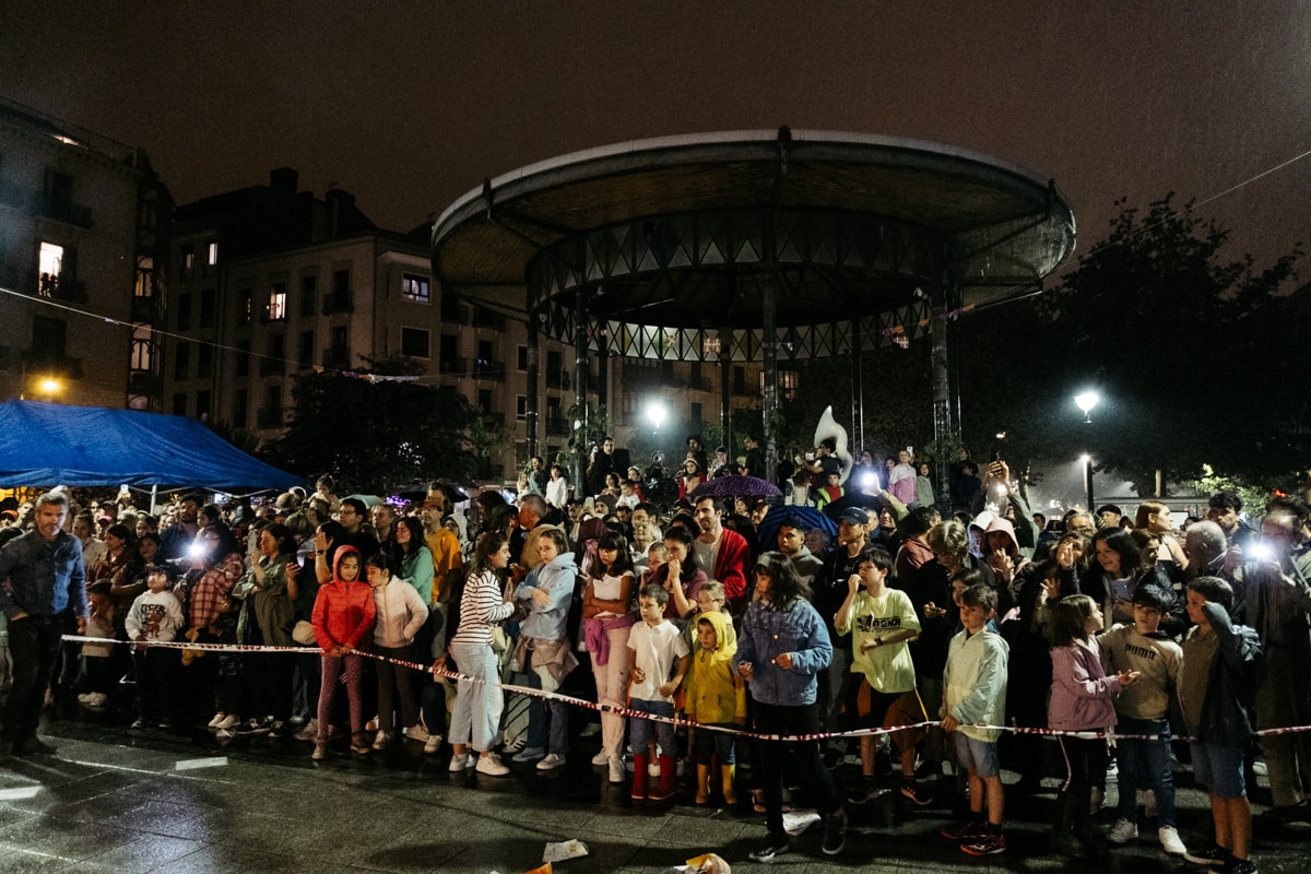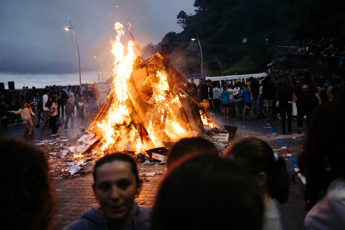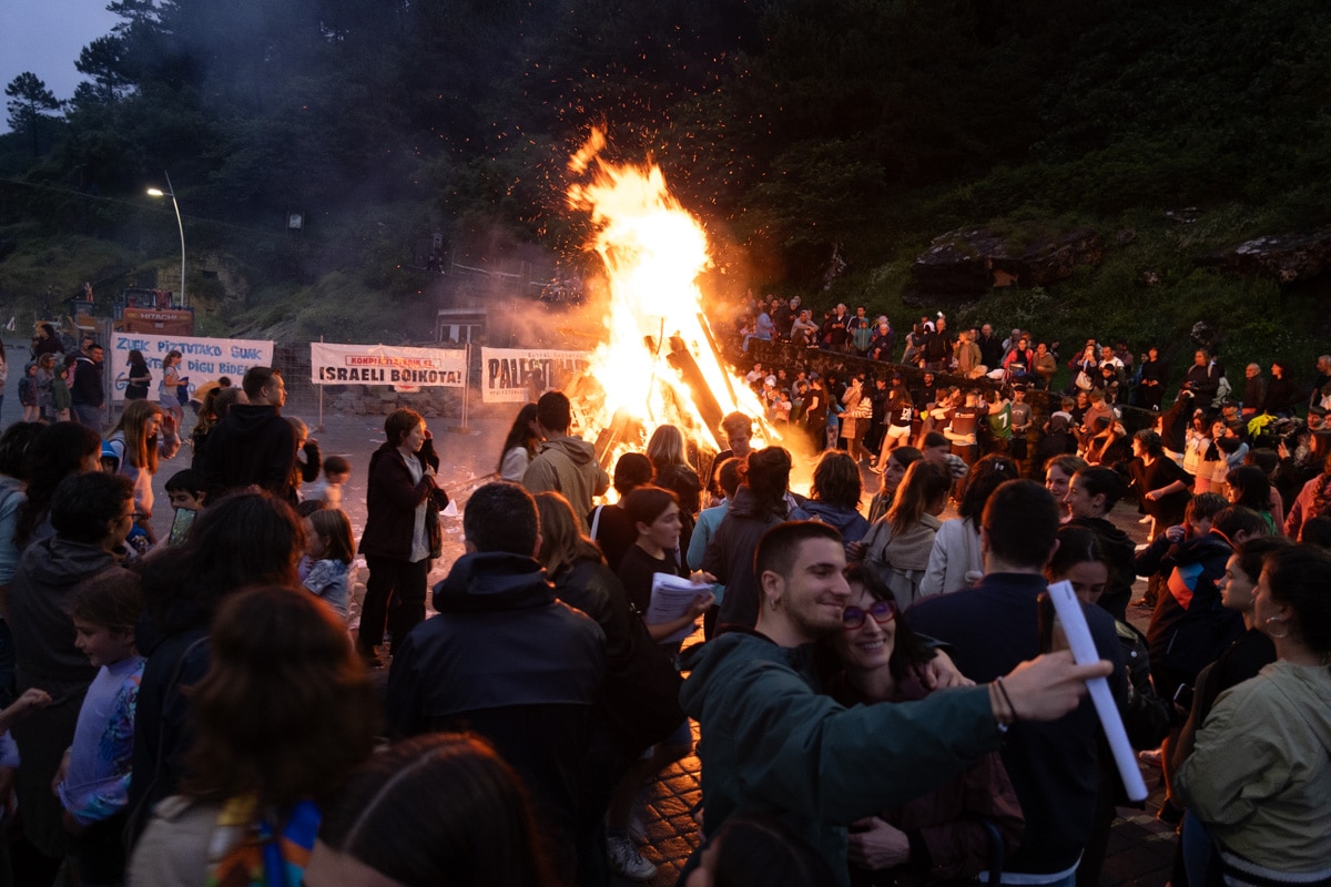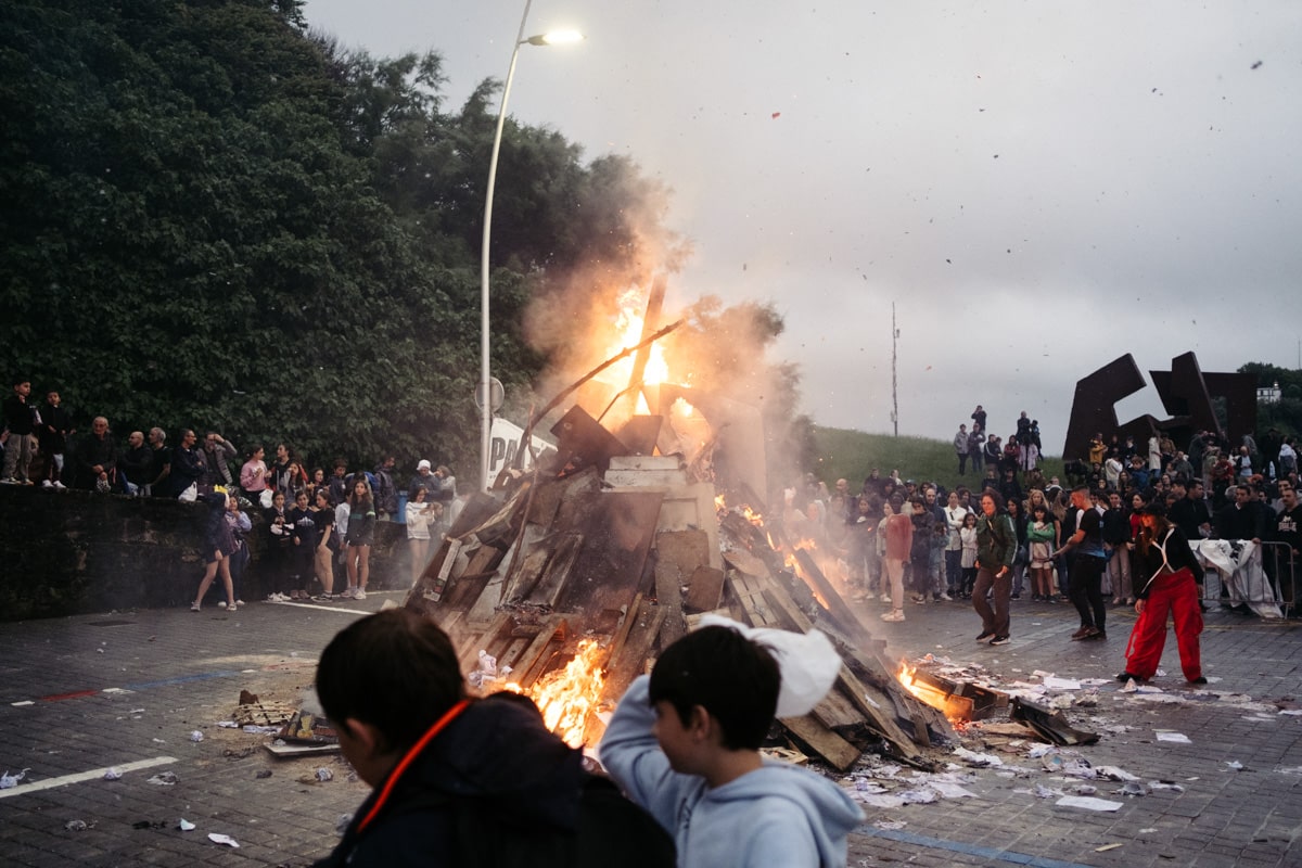 Los barrios fueron fieles a sus hogueras en Donostia, si bien la noche no prometía a causa de la lluvia.