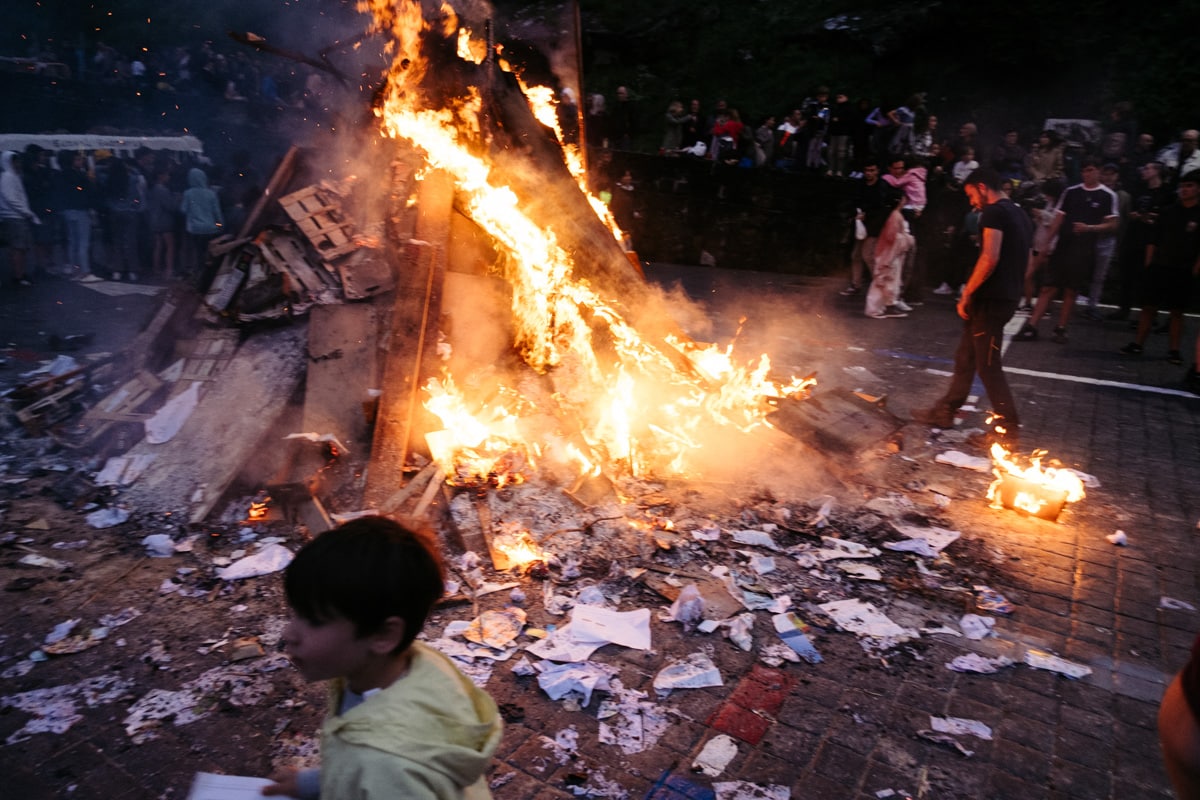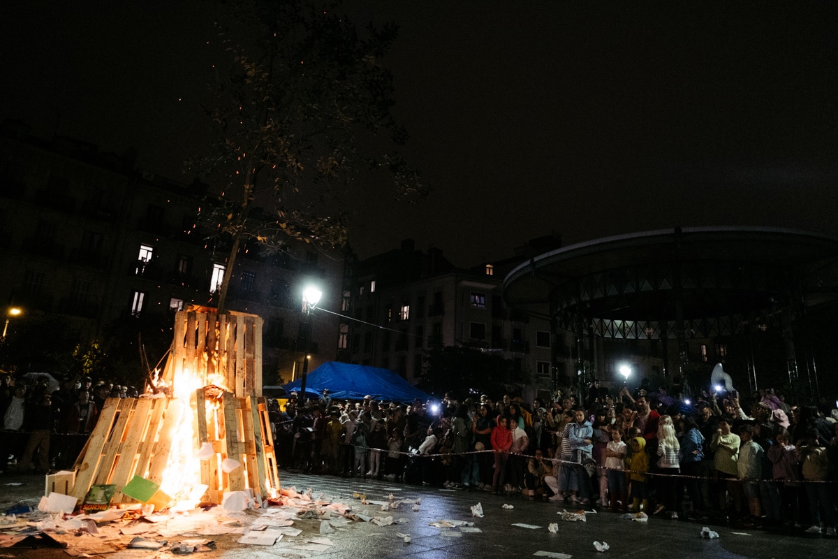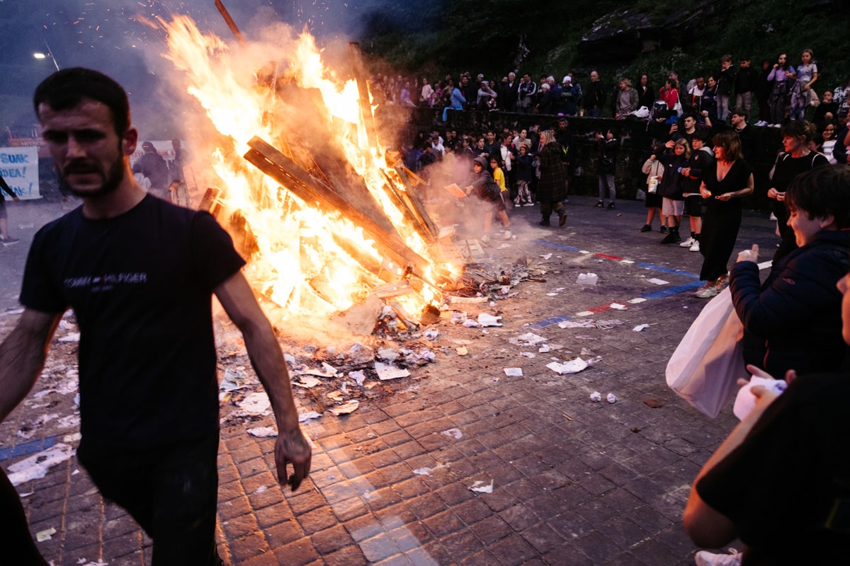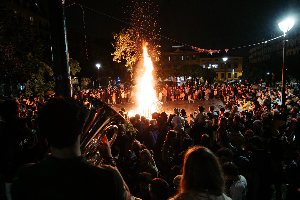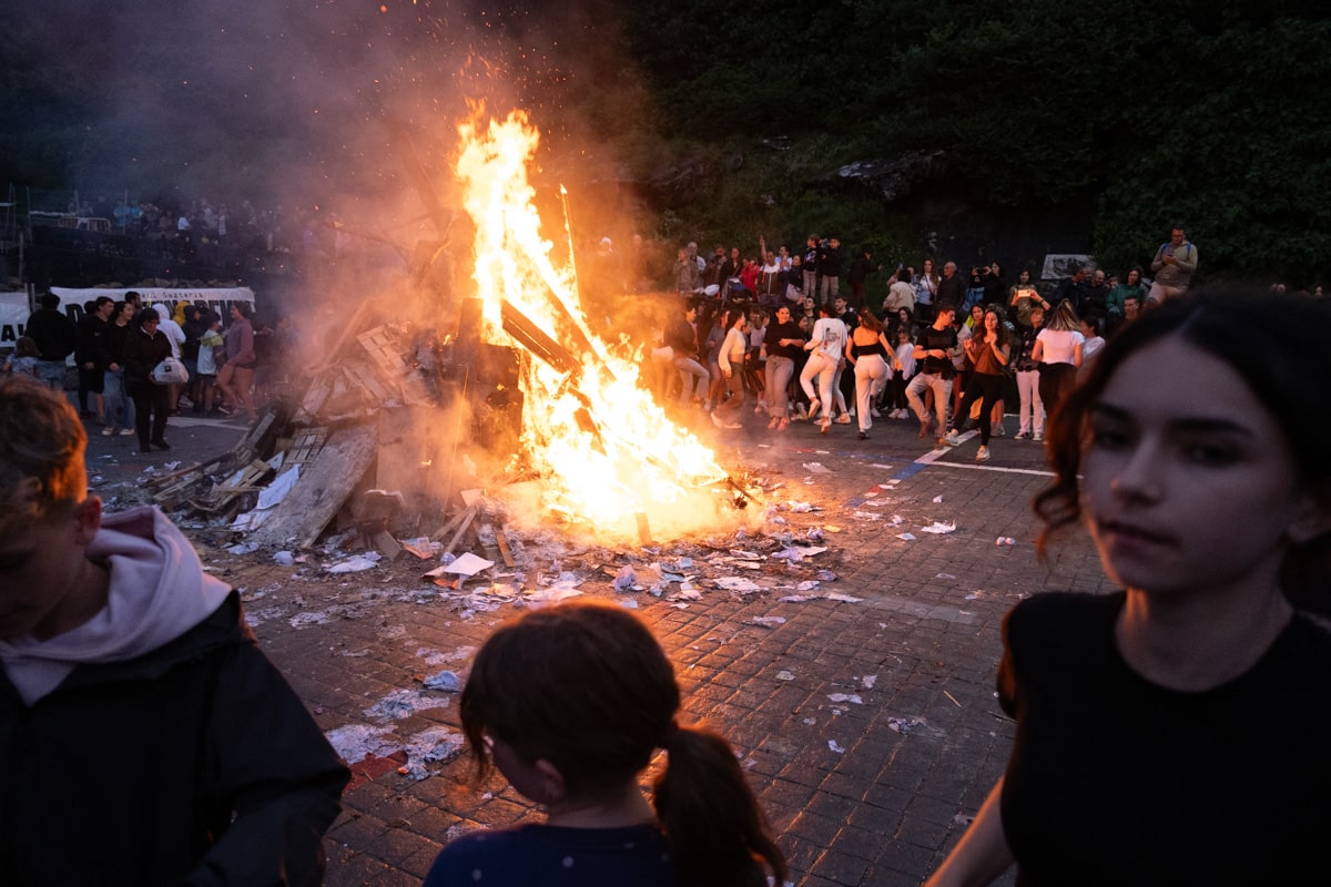 Los barrios fueron fieles a sus hogueras en Donostia, si bien la noche no prometía a causa de la lluvia.