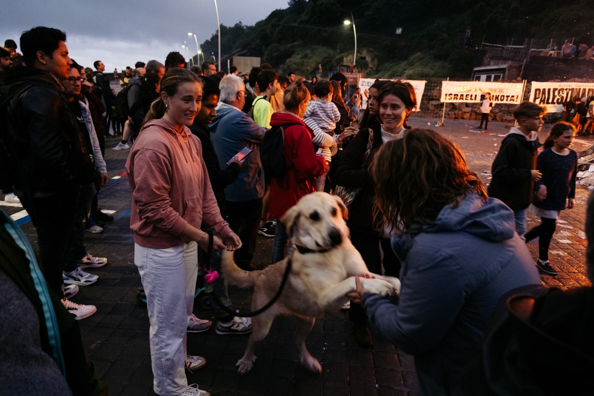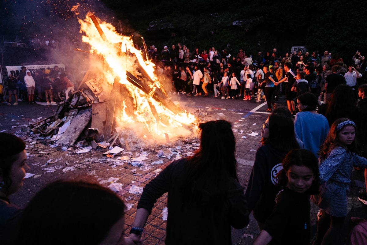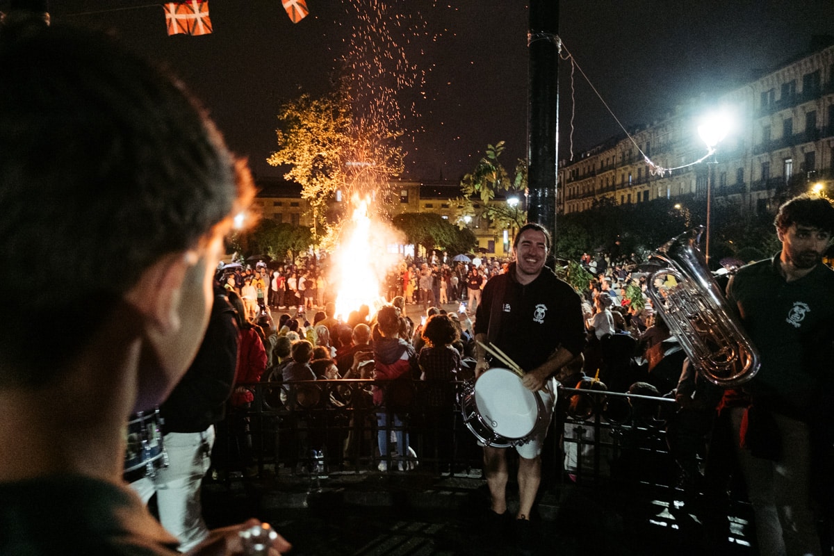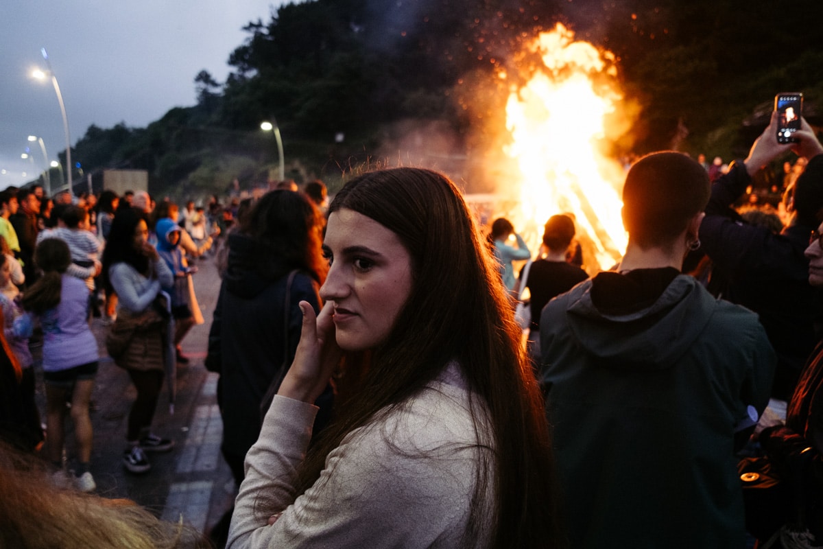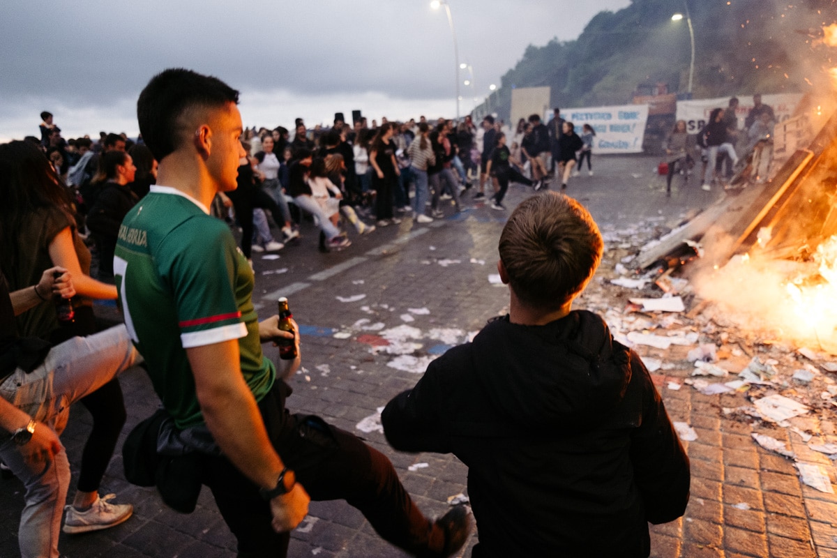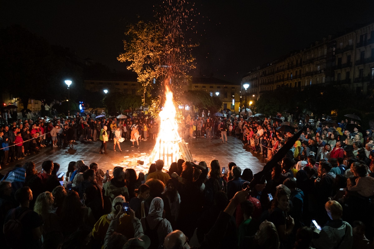 Los barrios fueron fieles a sus hogueras en Donostia, si bien la noche no prometía a causa de la lluvia.