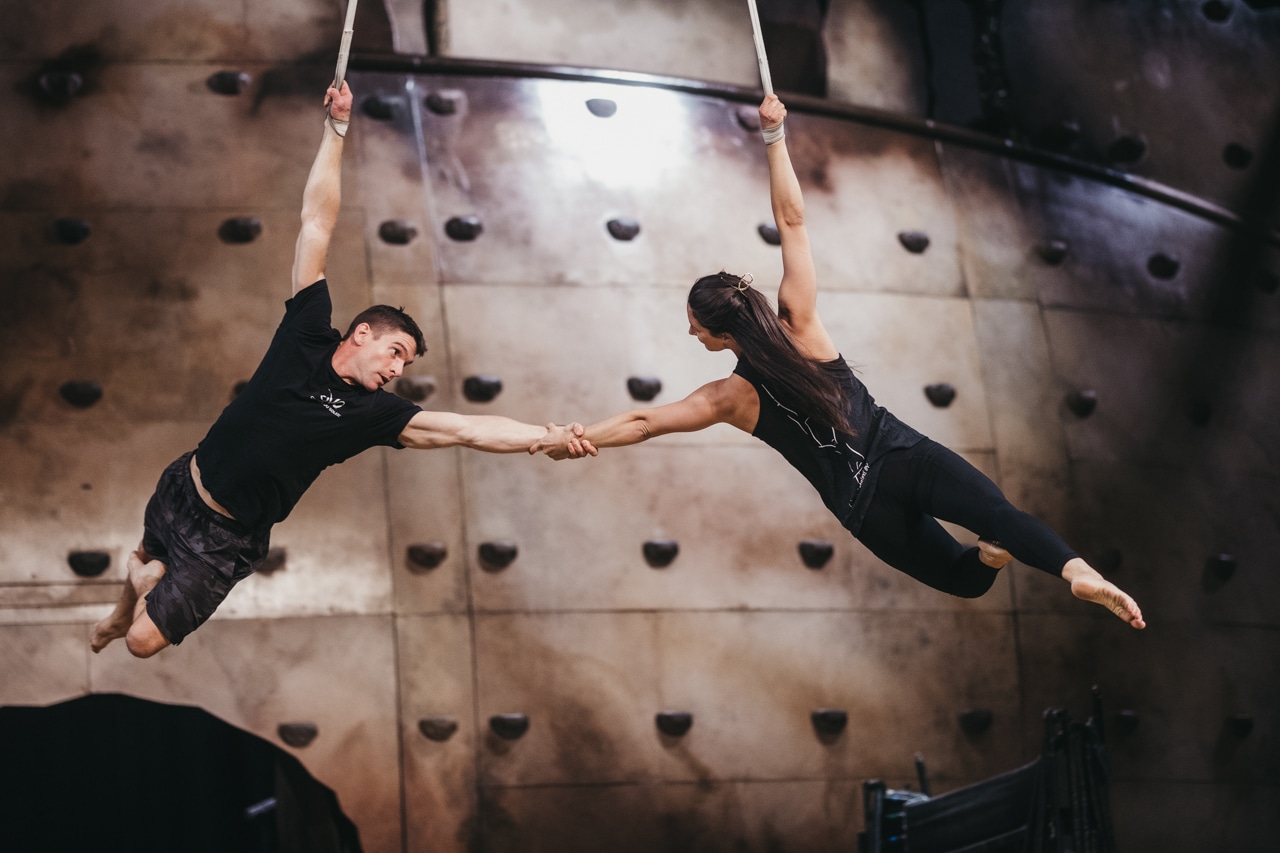 Catherine Audy y Alexis Trudel, también canadienses, han explicado que la confianza en los compañeros es esencial a la hora de las acrobacias aéreas. «No pasamos miedo», han asegurado, y han destacado que para llegar a este punto de tranquilidad son innumerables horas las que pasan entrenando. Por cierto que trabajan sin arneses…