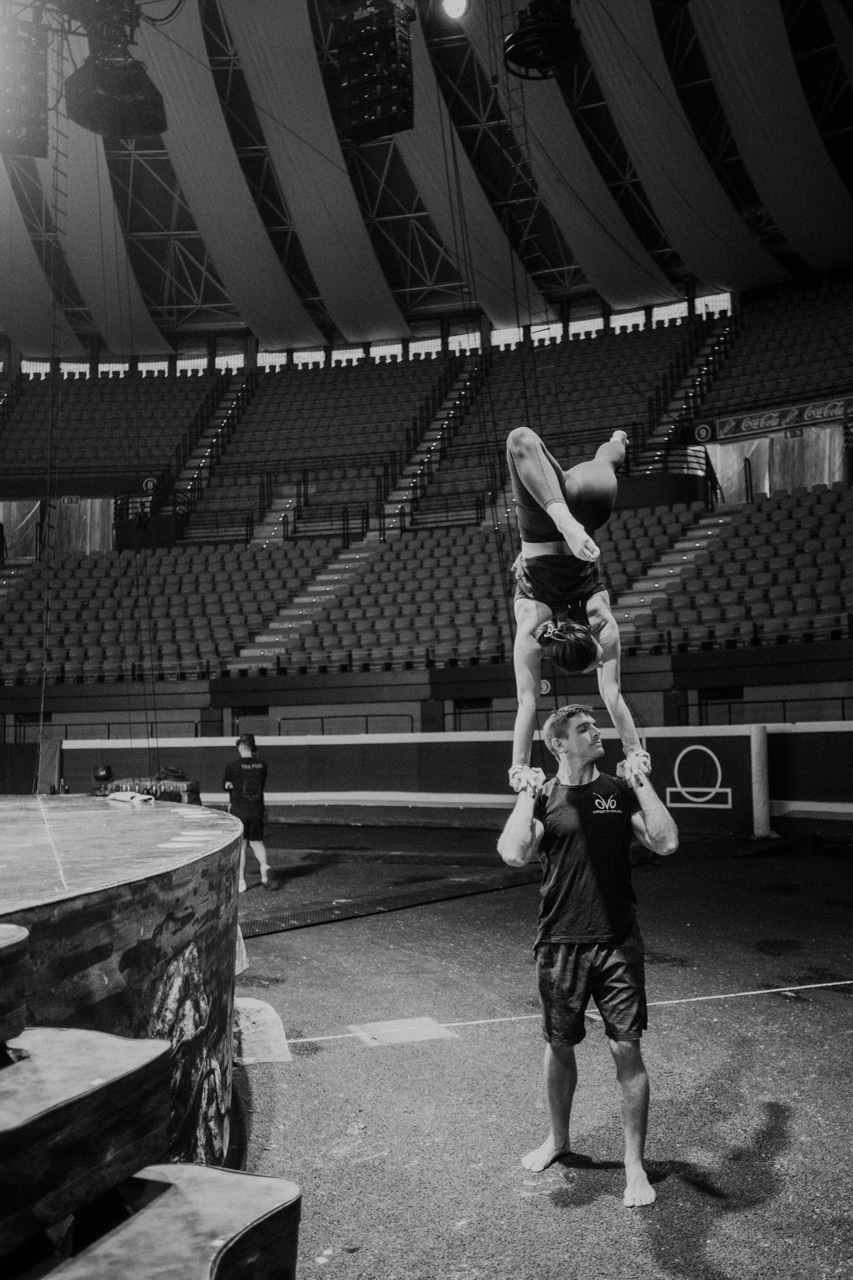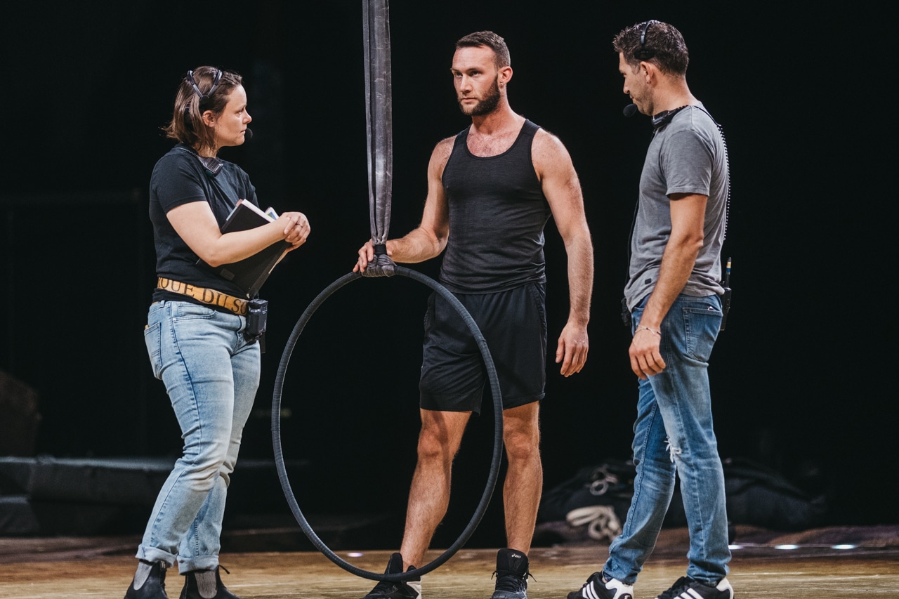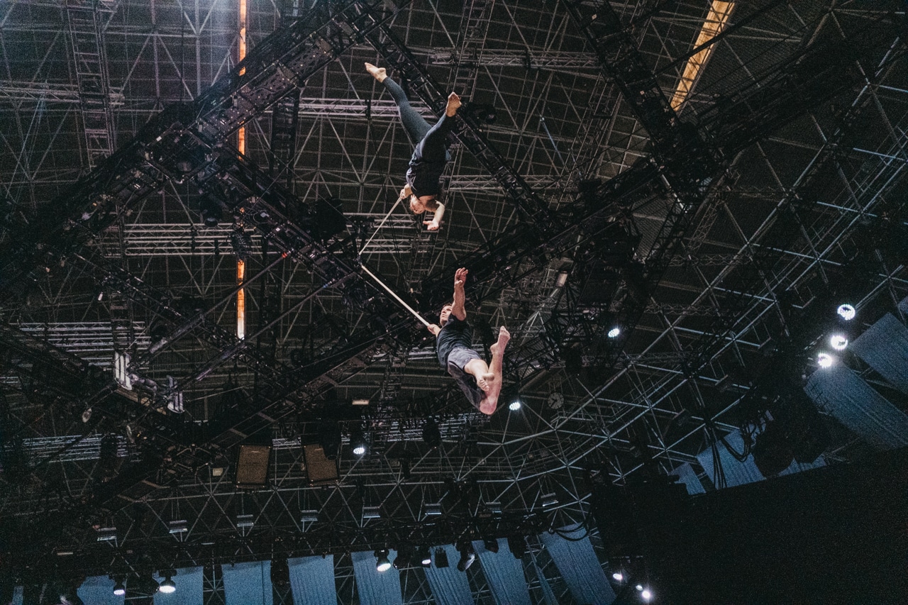 Para hacer realidad este espectáculo en el Donostia Arena ha comenzado un movimiento increíble. «Todo lo traemos en los 23 camiones que se pondrán ahí fuera», explicó esta mañana la manager Ali Spinoza mientras los técnicos iniciaban el despliegue. Un gran despliegue que incluye hasta un gimnasio completo. Y es que todos los actores son gimnastas y de hecho dos han participado en juegos olímpicos.