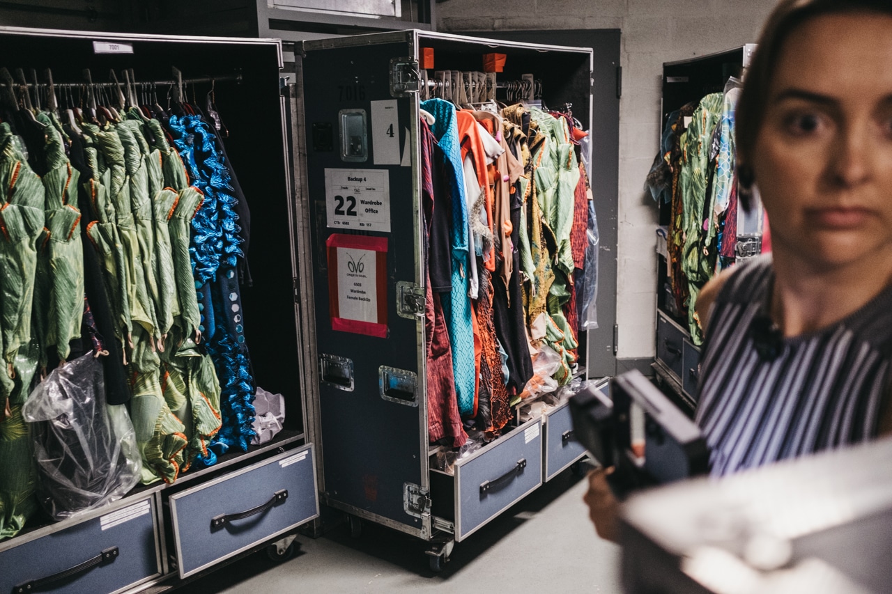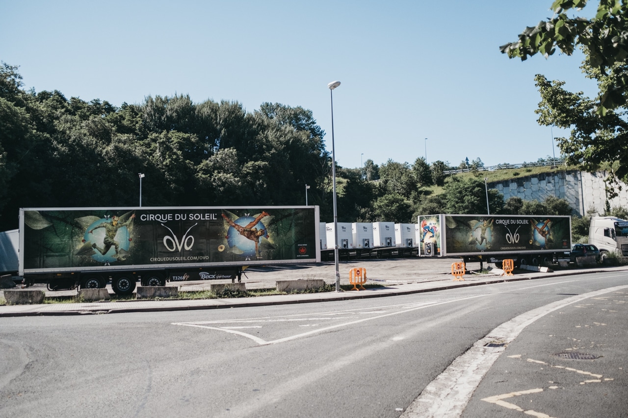 Son más de 800 prendas (todas creadas en Montreal) las que utilizan en OVO, así que en los camiones se traslada también una auténtica lavandería que hoy estaba a pleno rendimiento en Illunbe.