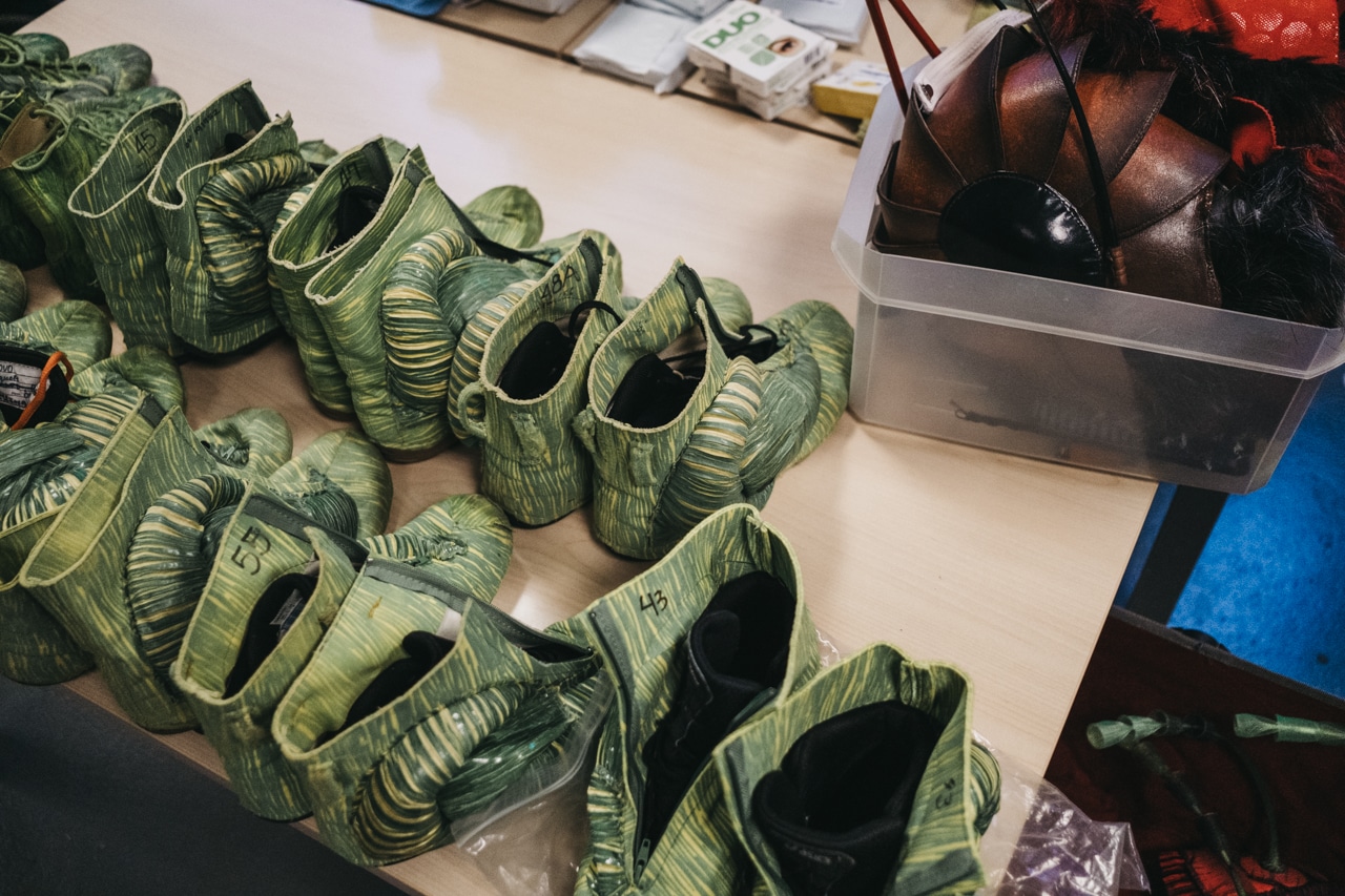 Y otra cosa: cada personaje se maquilla así mismo… y no es fácil. Los grillos, que son los que menos trabajo tienen en este sentido, utilizan seis productos distintos para salir a escena hechos un pincel.