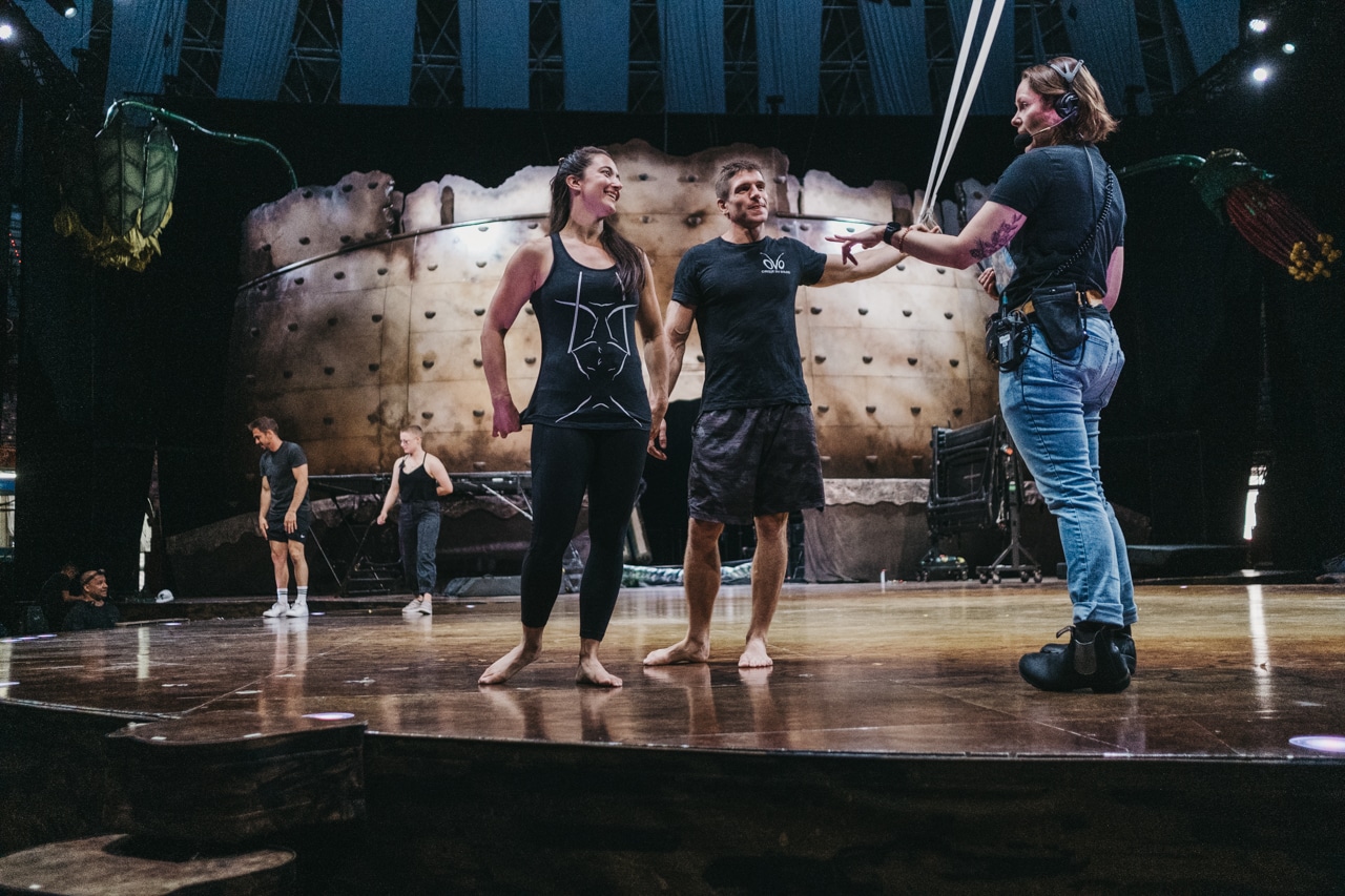 Entre grillos saltarines, mariposas y escarabajos destaca una araña roja. Le da vida la canadiense Svetlana Delous, una artista de 35 años, feliz de participar en este espectáculo. «Soy acróbata en el aire, me subo a la pared, hago telas», ha contado, añadiendo que entrena desde los cinco años en escuelas de circo y ballet clásico. «Ahora que estoy aquí en Cirque du Soleil también entreno todos los días dos horas».
