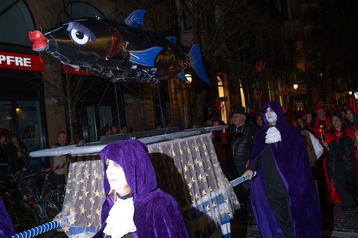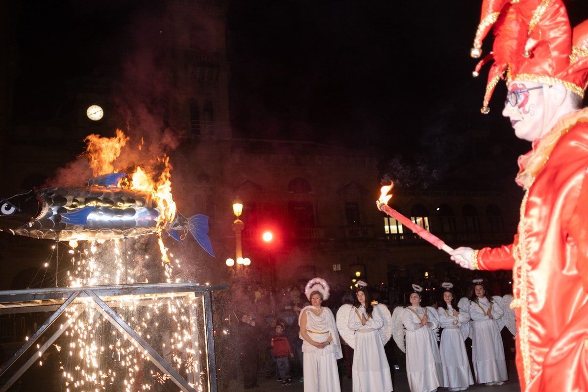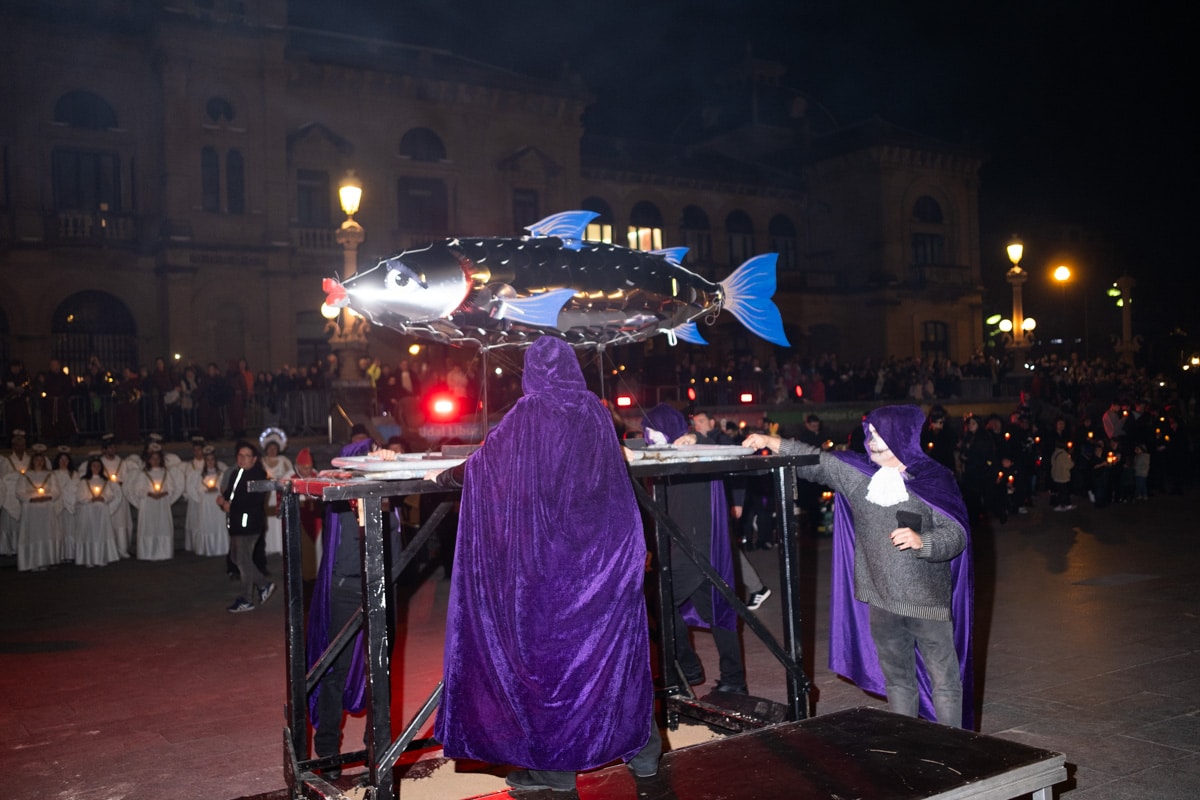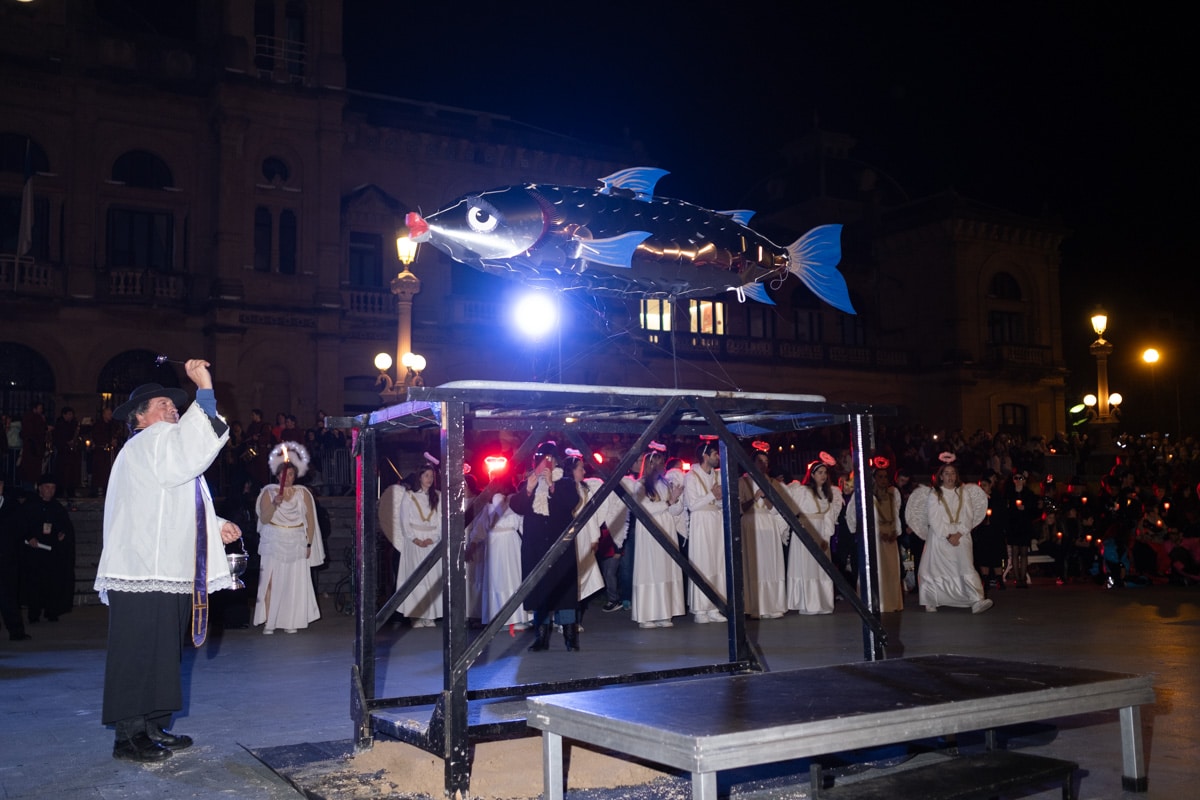 Un nutrido cortejo fúnebre ha partido de la Plaza Bilbao esta tarde en Donostia en dirección a Alderdi Eder, donde oficialmente se despide el Carnaval con la tradicional quema de la sardina.
